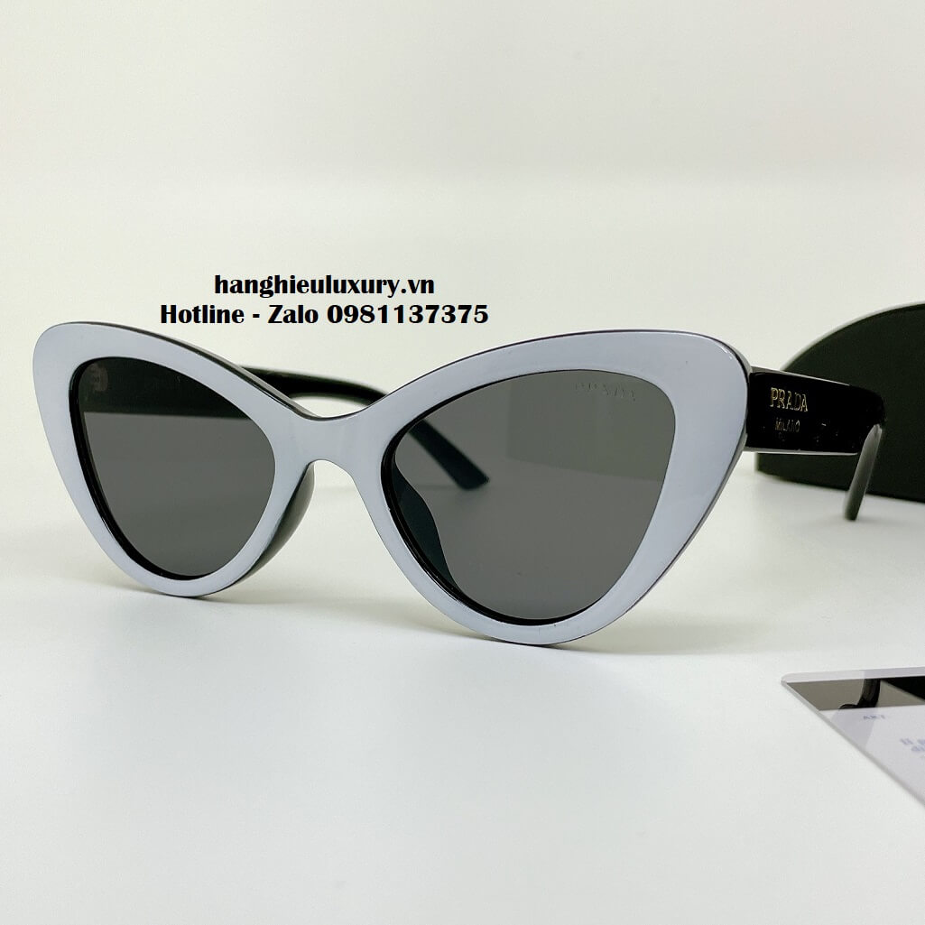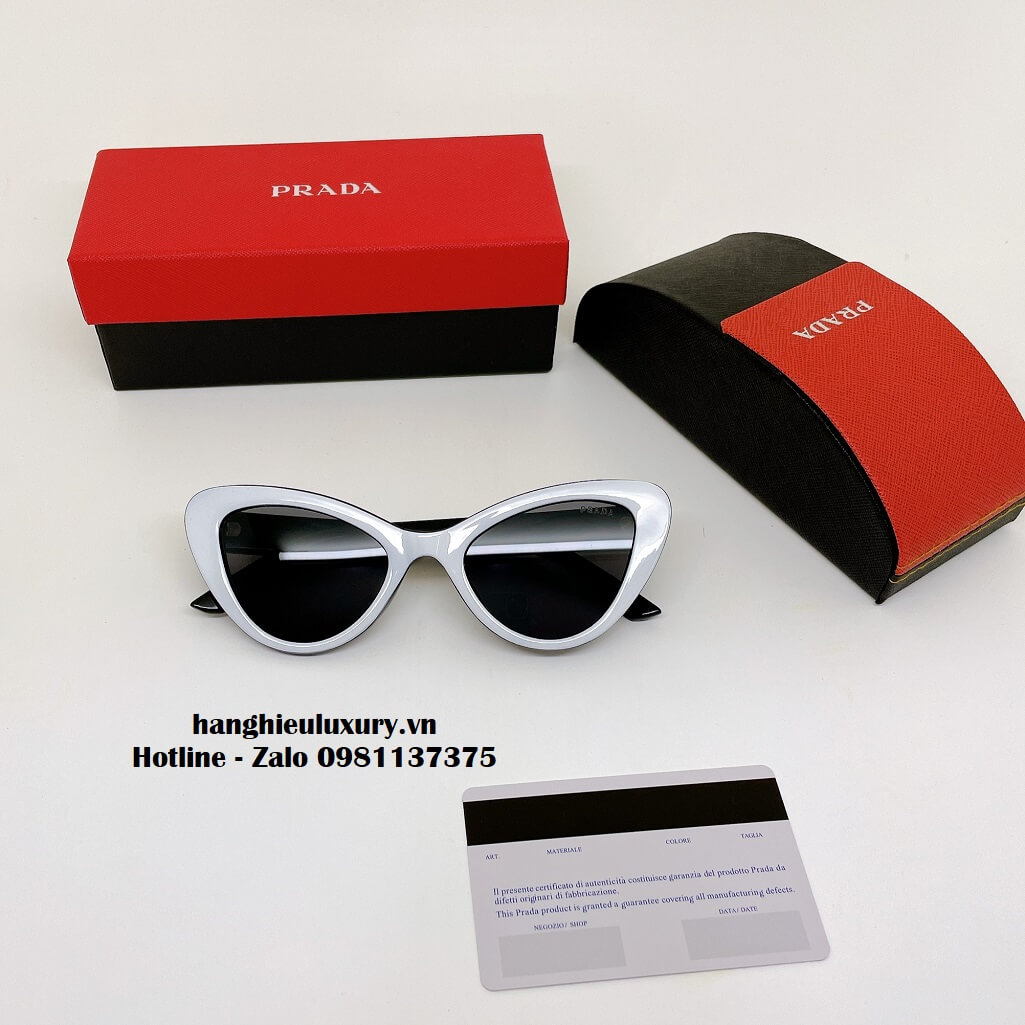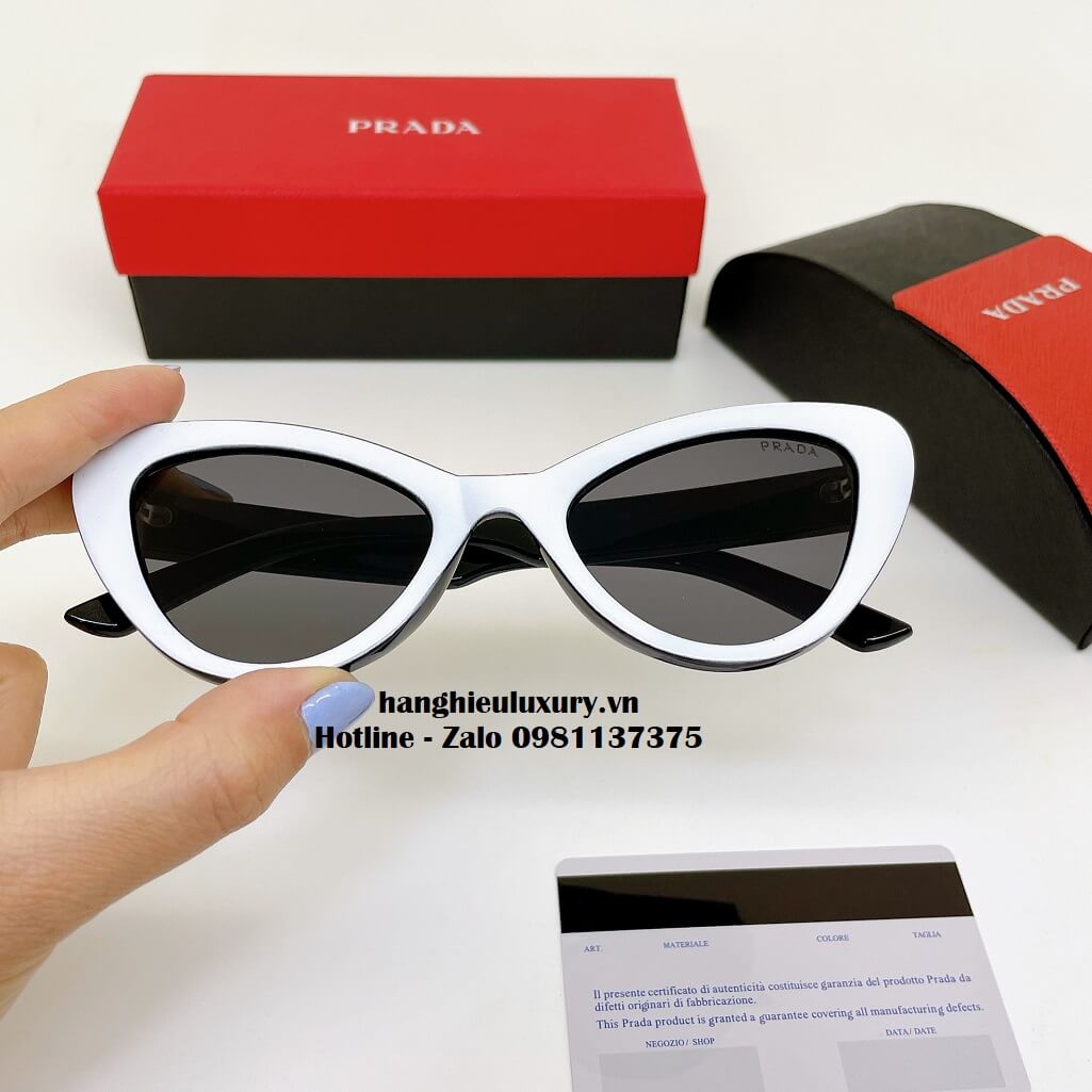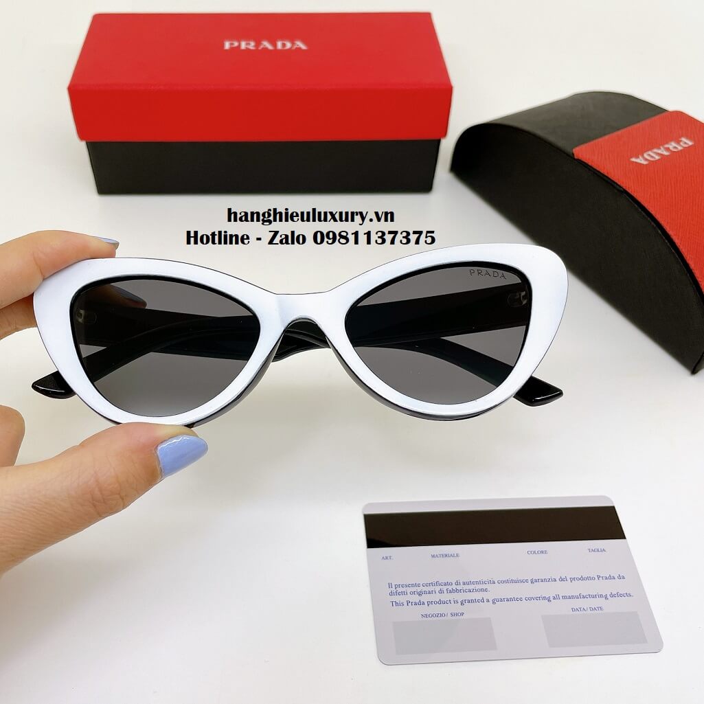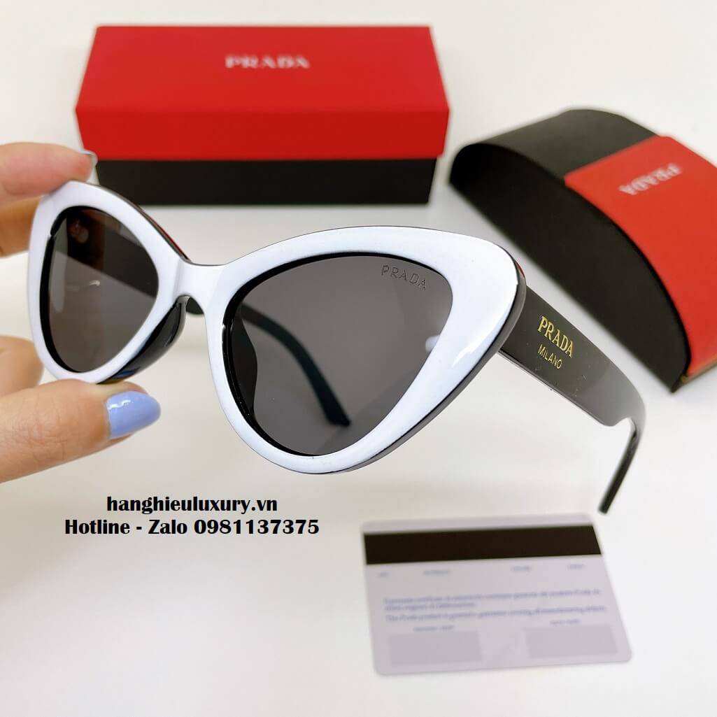 Mô tả Kính Mát Prada Nữ Màu Đen Gọng Trắng Dáng Mắt Mèo Cao Cấp Full Box 20265
