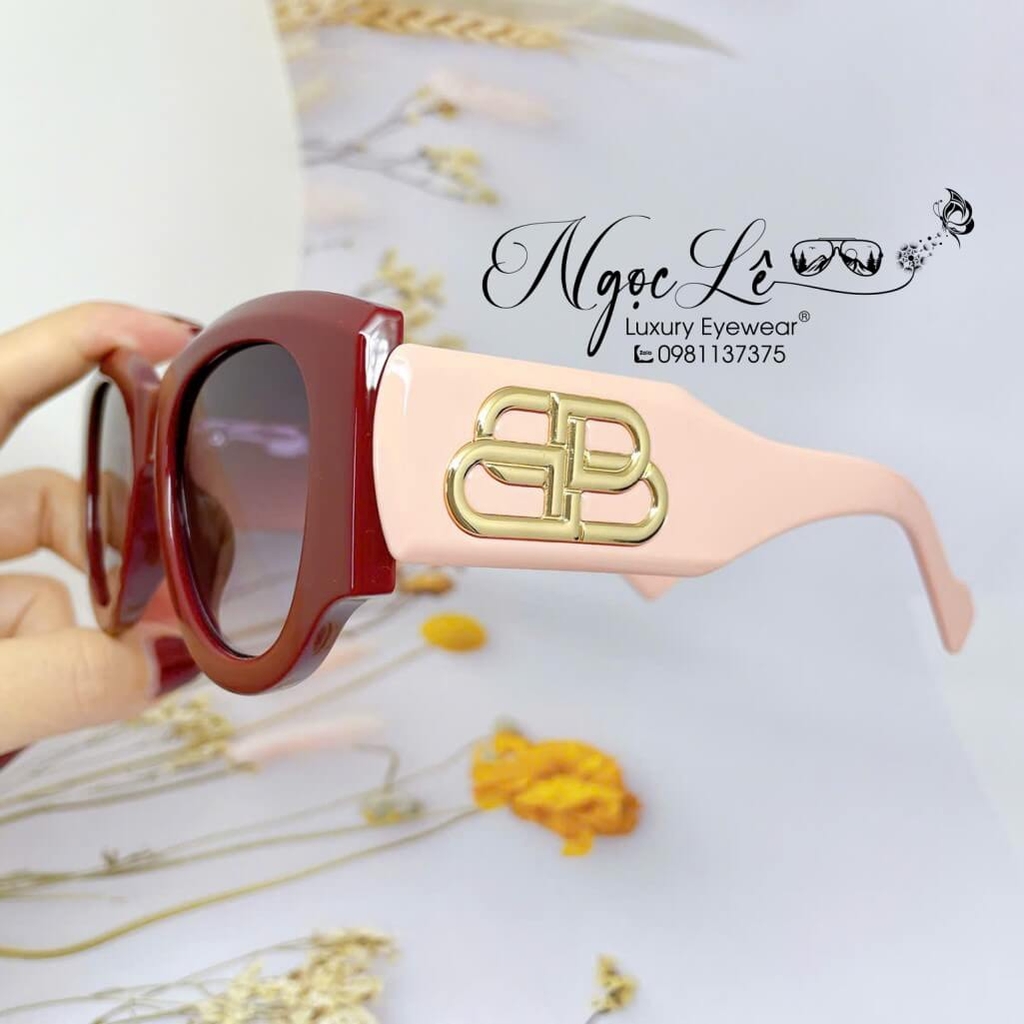 Hình ảnh thực tế Mắt Kính Balenciaga Nữ Màu Hồng Mận Tròng To Bầu Xám Đen Cao Cấp 6078