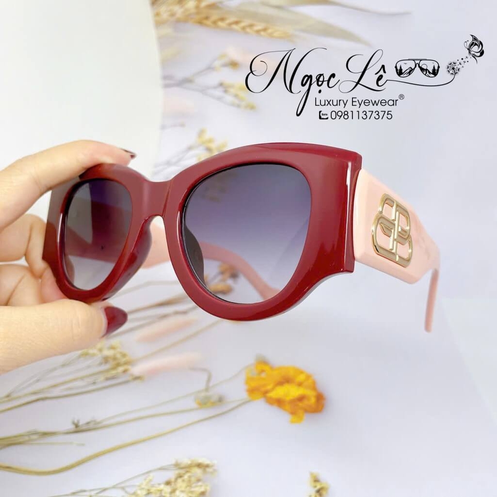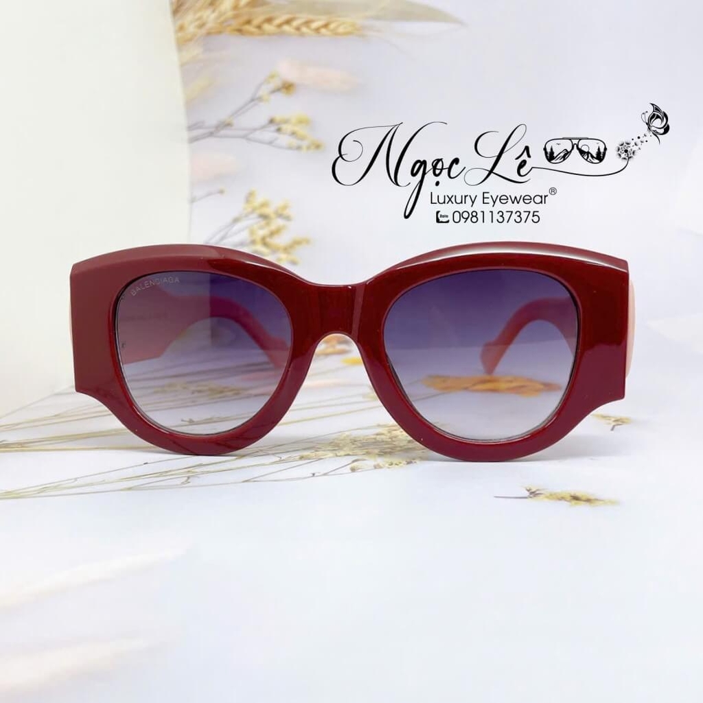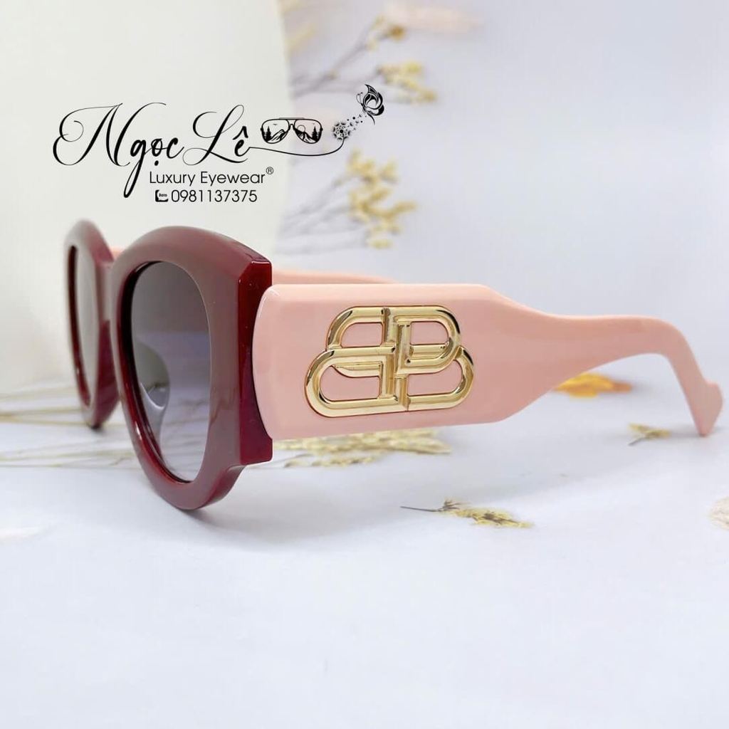 - Mắt Kính Balenciaga Nữ Màu Hồng Mận Tròng To Bầu Xám Đen Cao Cấp 6078