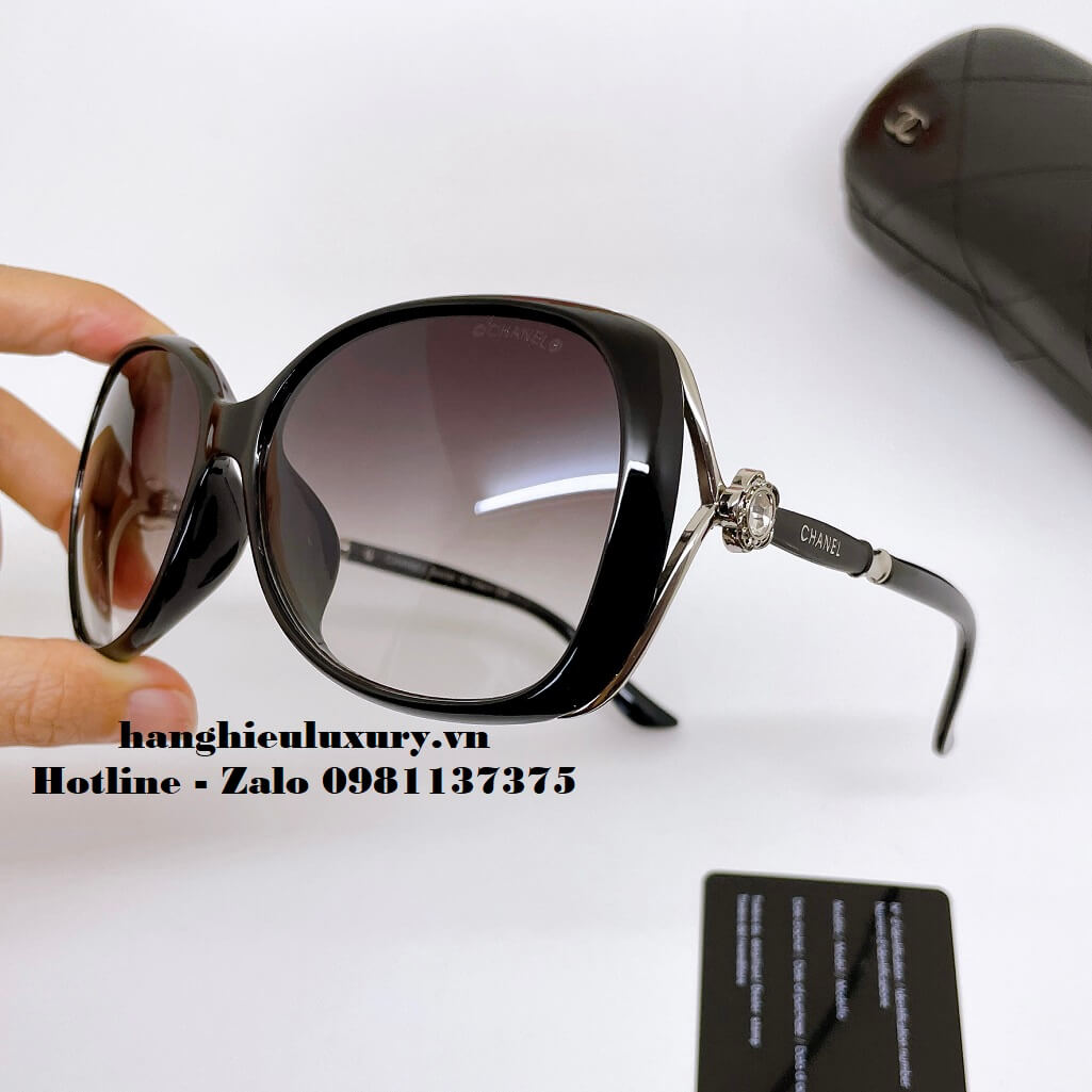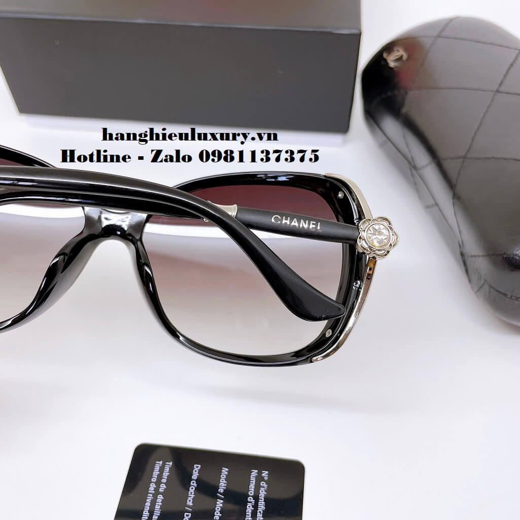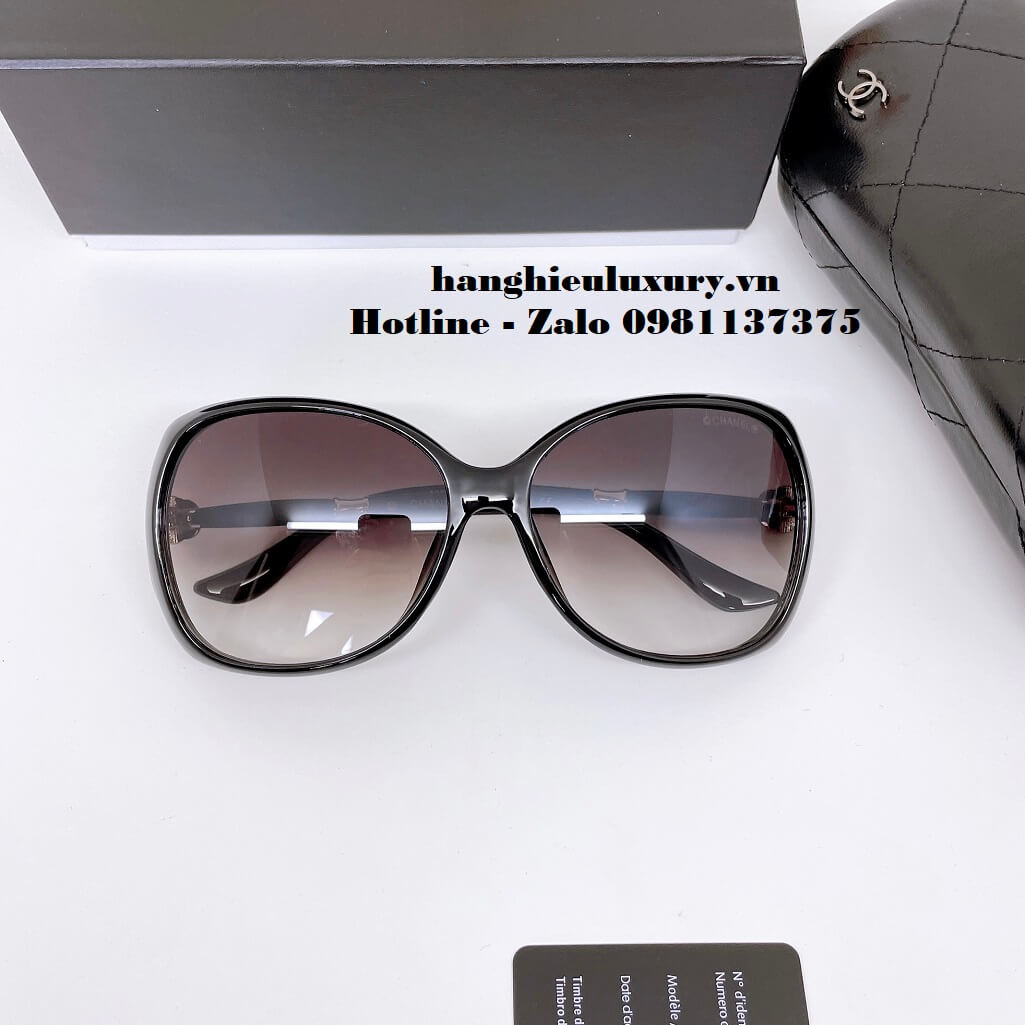 Hình ảnh Mắt Kính Chanel Nữ Đen Bầu Gọng Hoa Tròng Polarized Cao Cấp 1852