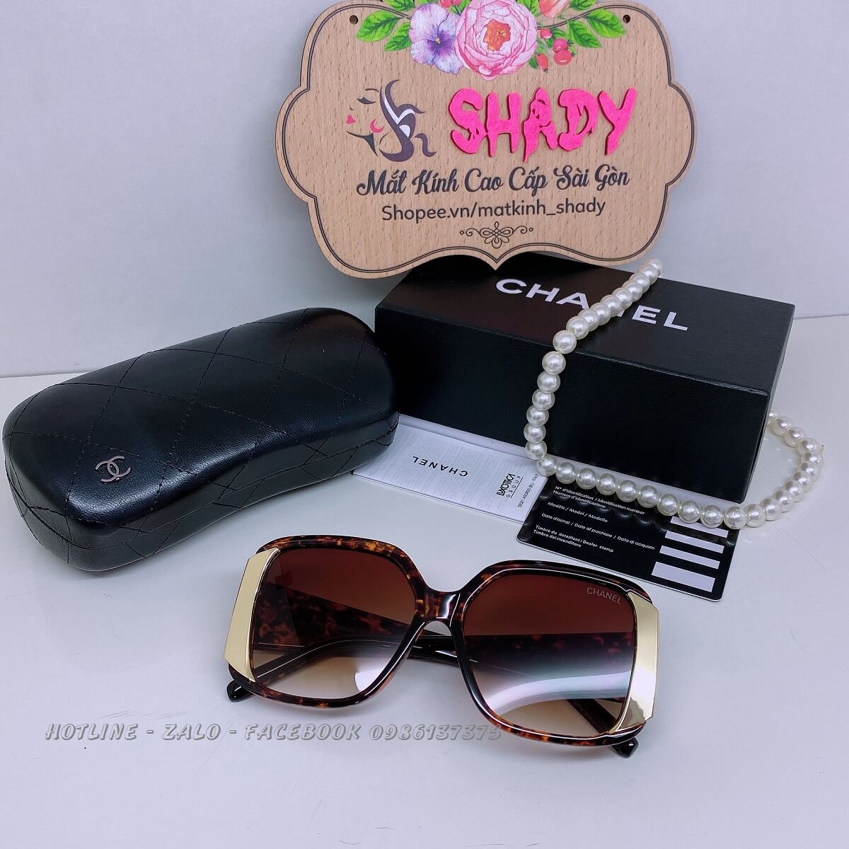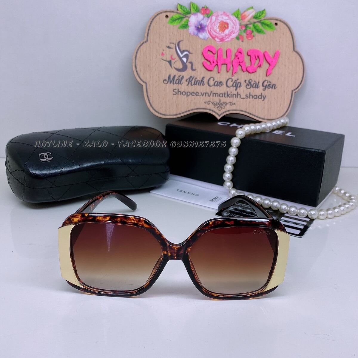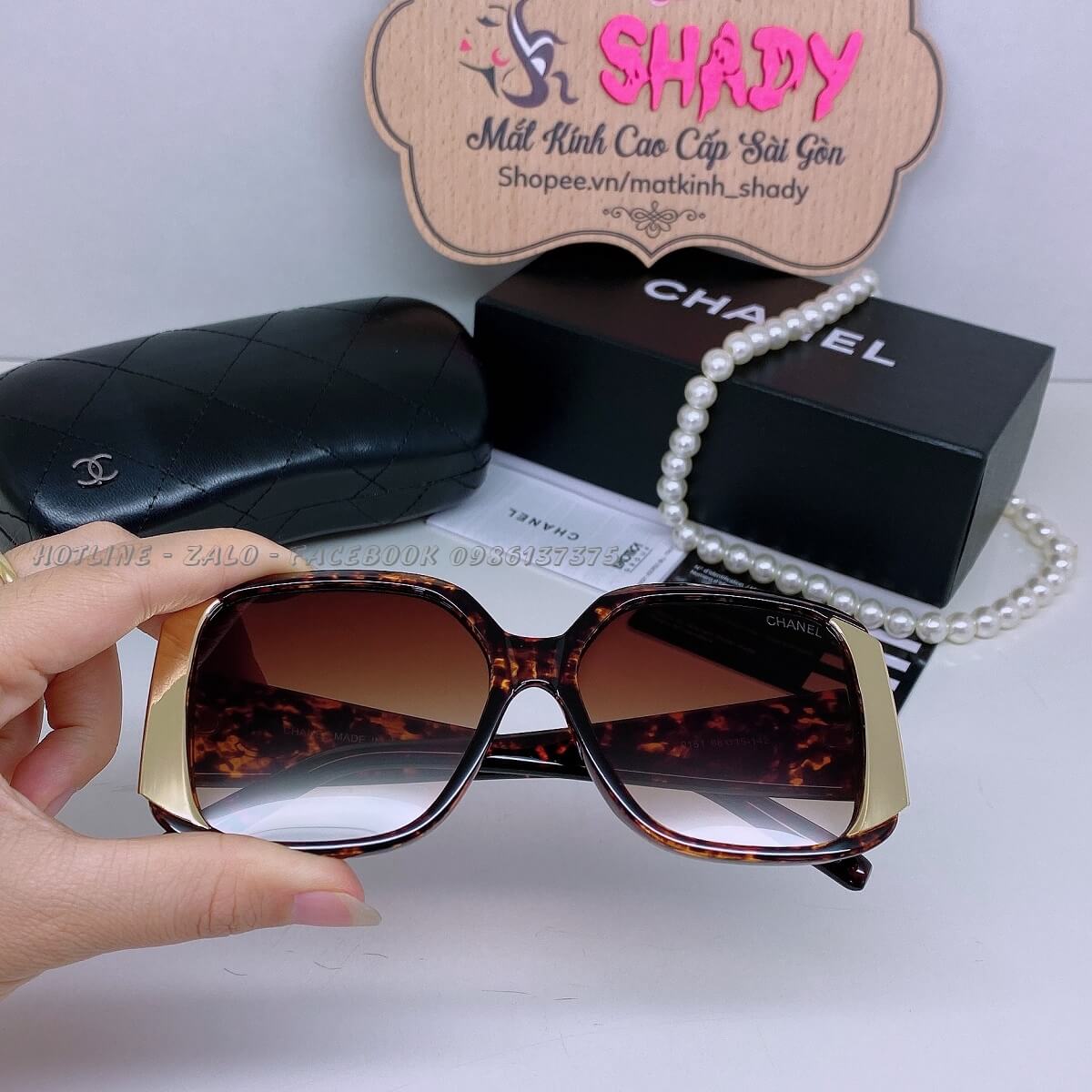 MẮT KÍNH THỜI TRANG NỮ - KÍNH CHANEL NỮ NÂU HỔ PHÁCH DÁNG VUÔNG VIỀN KIM LOẠI POLARIZED CAO CẤP