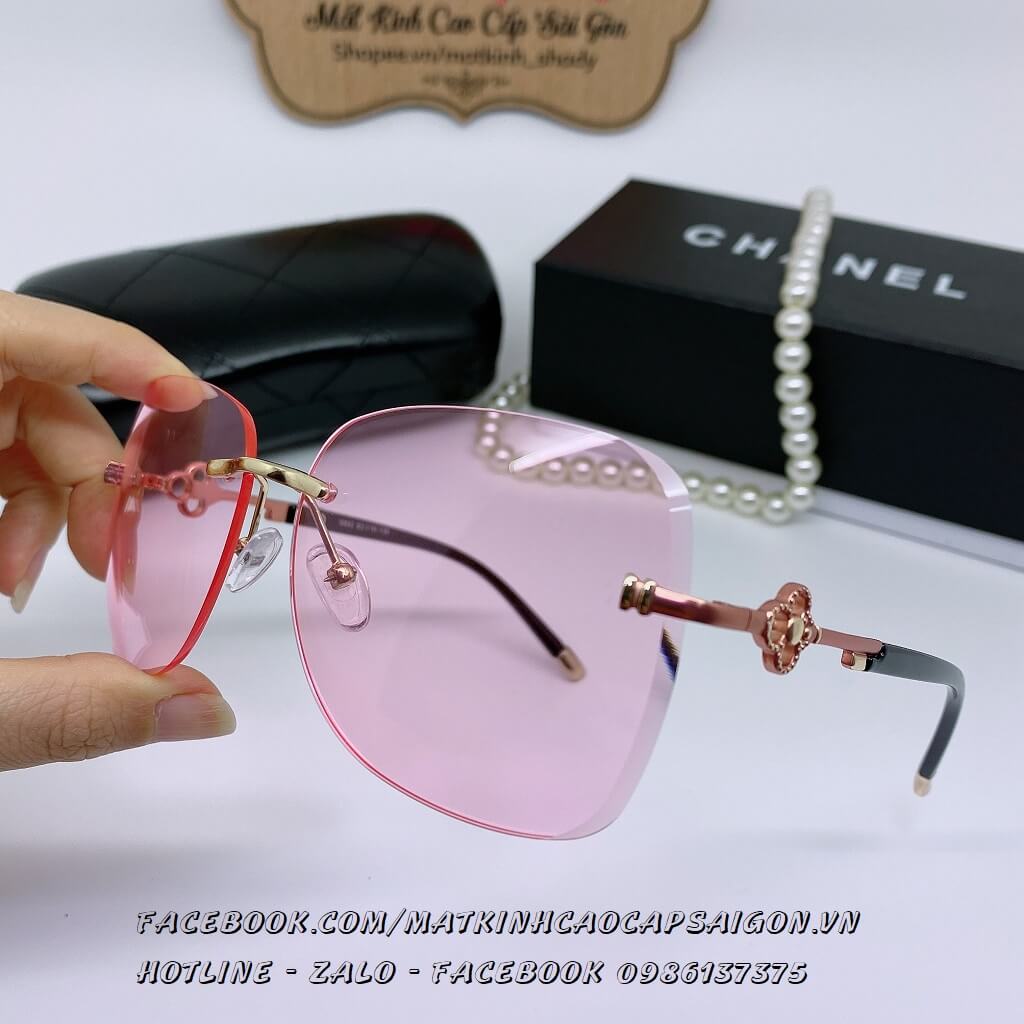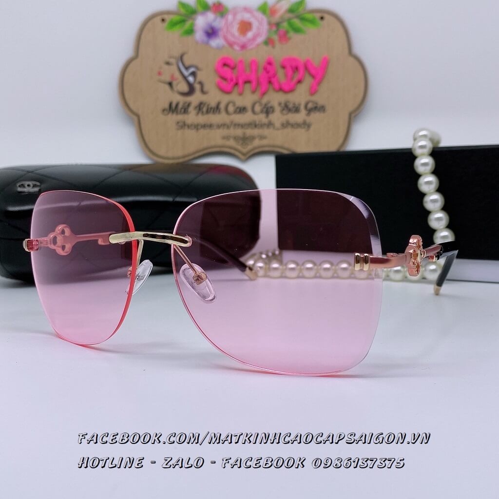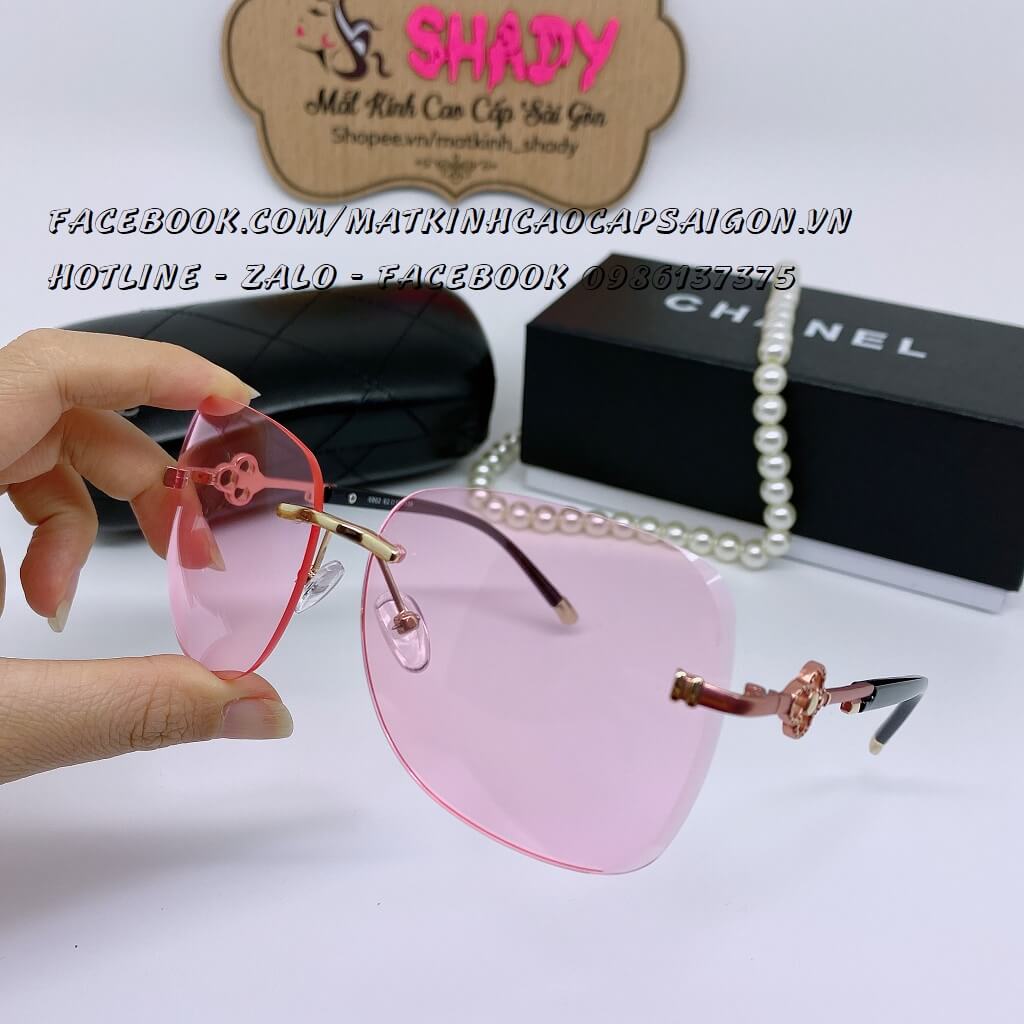 Mẫu kính Chanel màu hồng nhẹ xinh yêu, với thiết kế hoa trà duyên dáng trên phần gọng kim loại thanh mảnh – mang lại vẻ ngoài nữ tính, tinh tế và không kém phần sang trọng. Một "must-have item" cho mùa hè này!