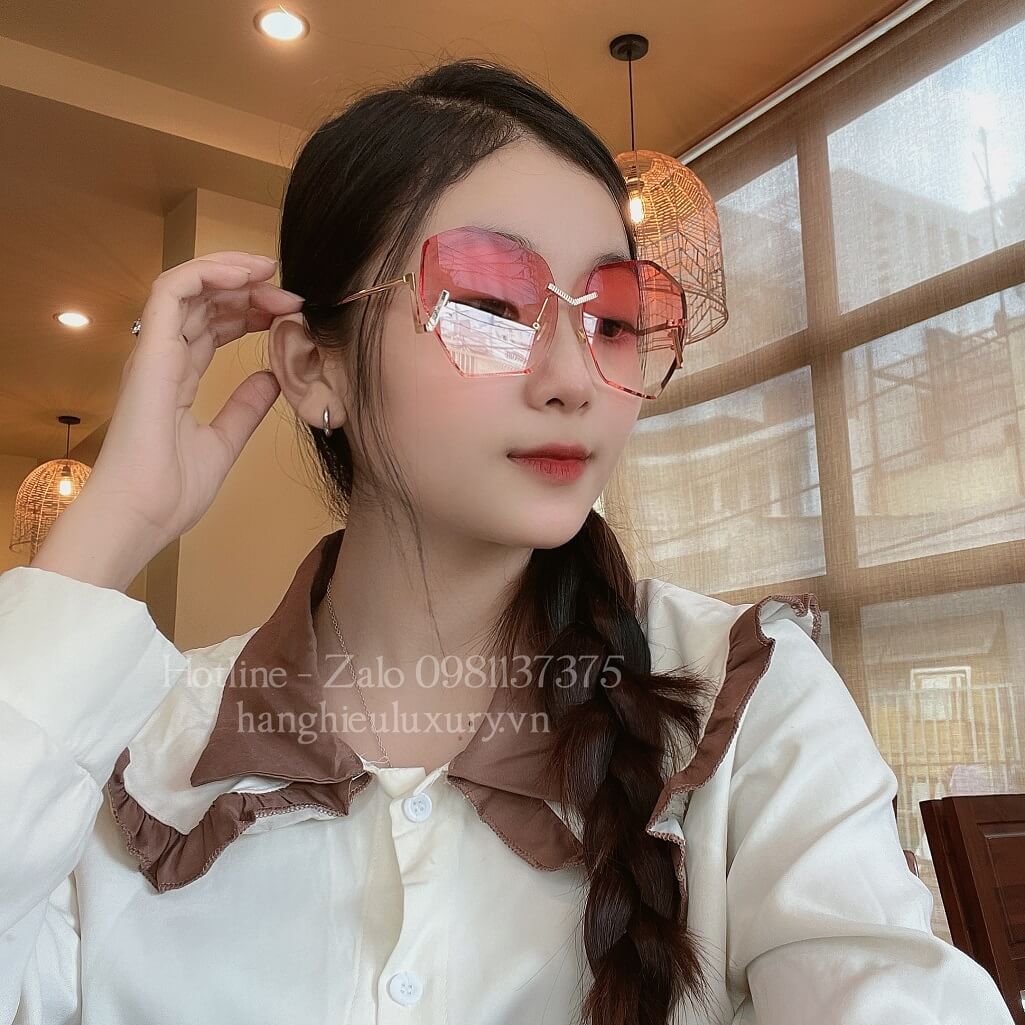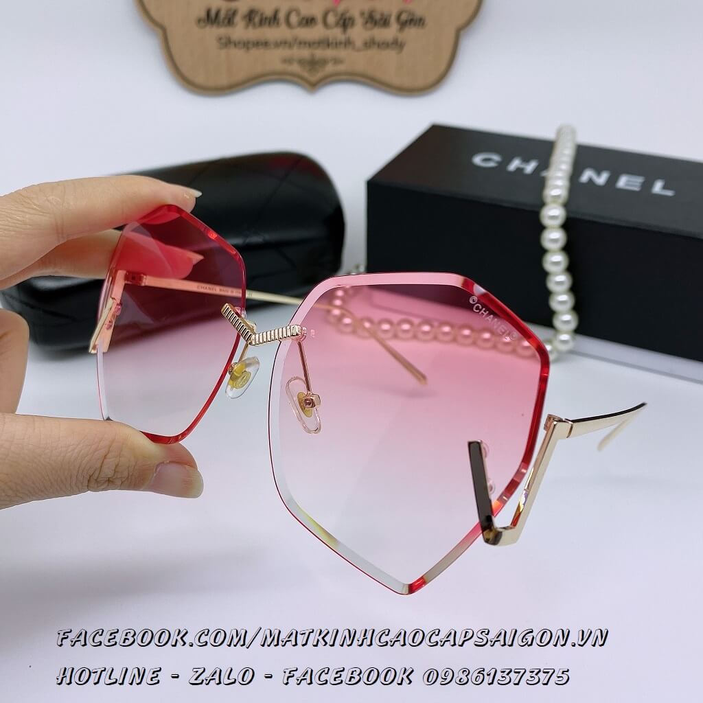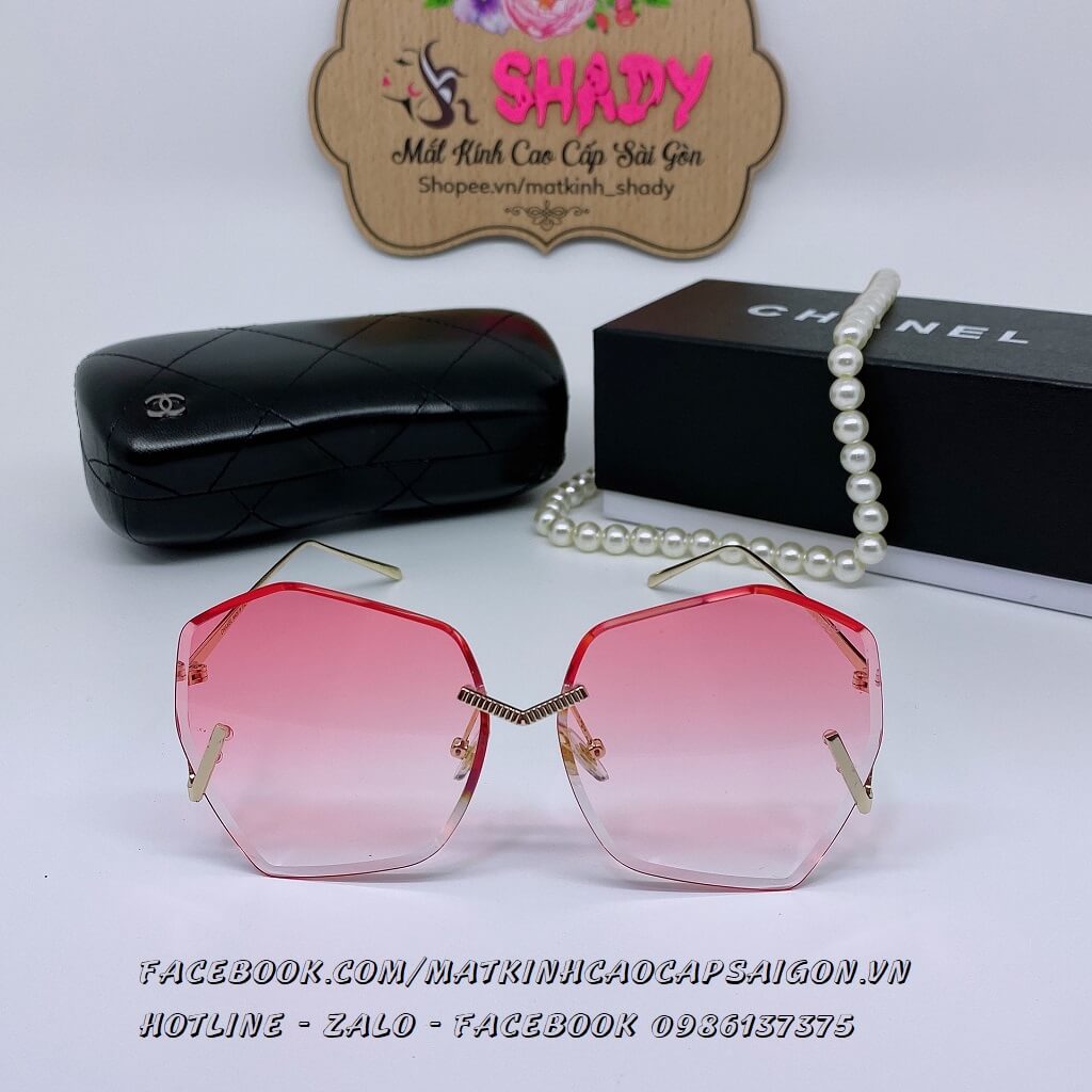 Hình ảnh Mắt Kính Thời Trang Nữ - Kính Chanel Nữ Hồng Tròng Polarized Lục Giác Cao Cấp