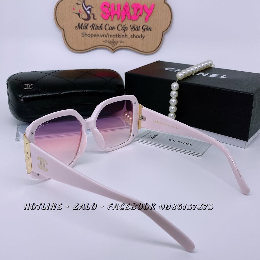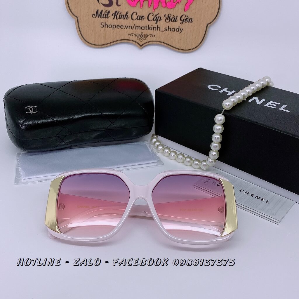 MẮT KÍNH THỜI TRANG NỮ - KÍNH CHANEL NỮ MÀU OMBER HỒNG VIỀN KIM LOẠI DÁNG VUÔNG GỌNG TRẮNG POLARIZED CAO CẤP