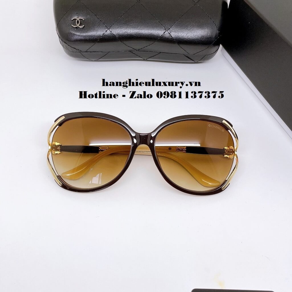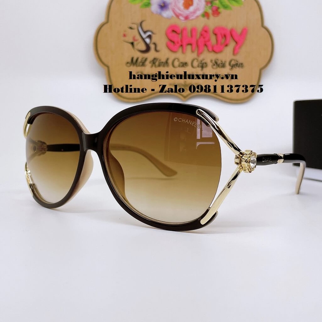 Hình ảnh Mắt Kính Thời Trang Nữ Bầu - Kính Chanel Nữ Nâu Sữa Bầu Gọng Hoa Tròng Polarized 1725