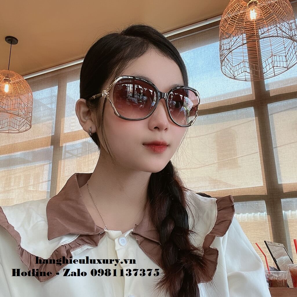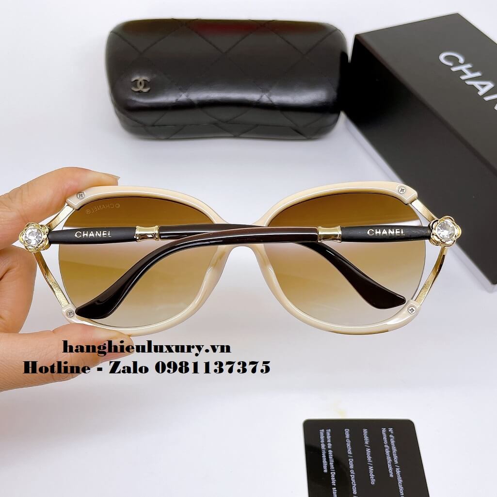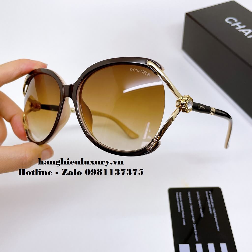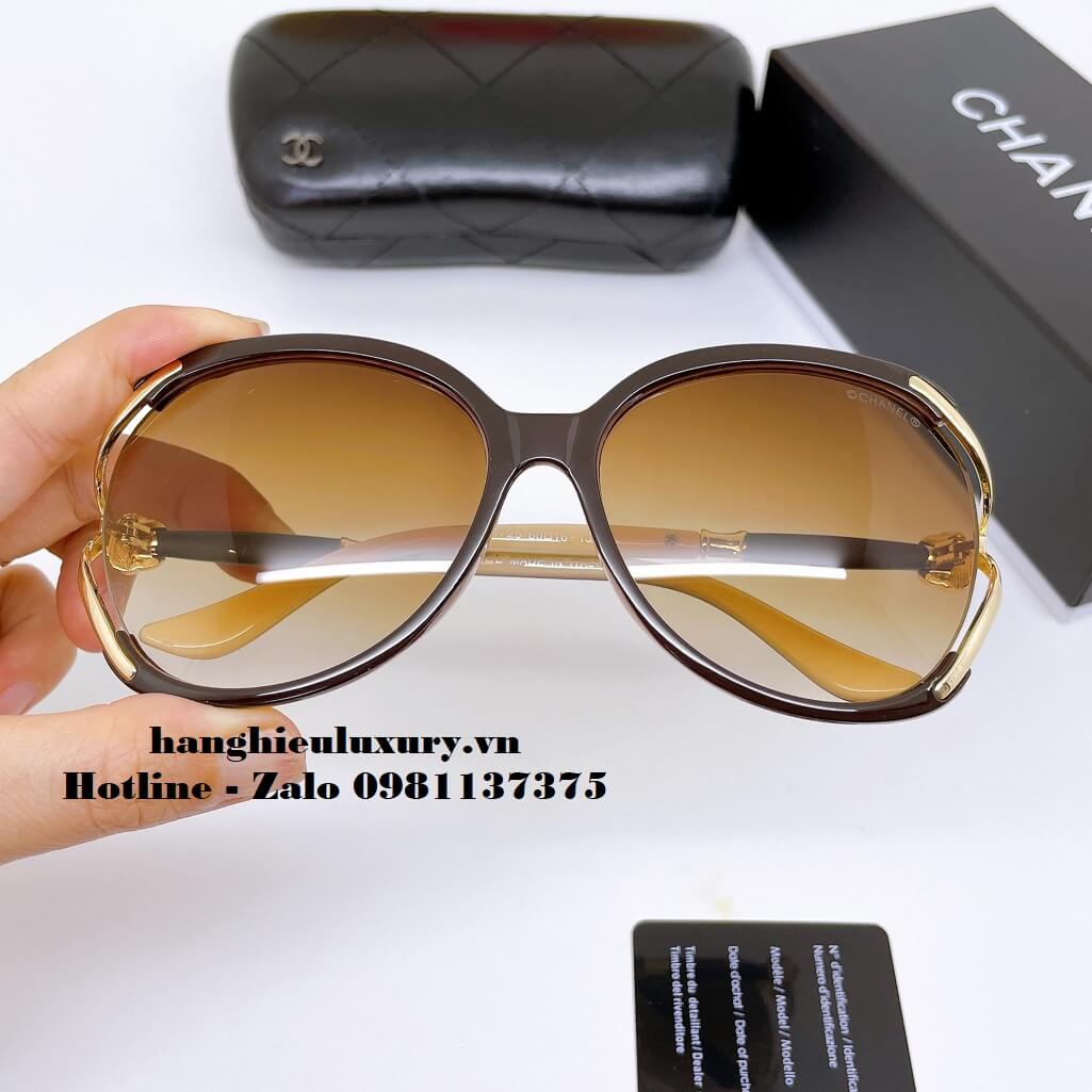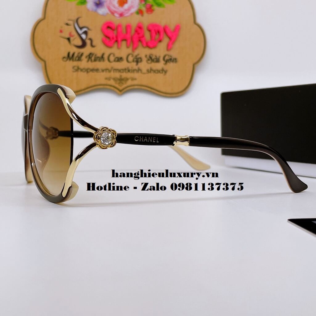 Hình ảnh Mắt Kính Thời Trang Nữ Bầu - Kính Chanel Nữ Nâu Sữa Bầu Gọng Hoa Tròng Polarized 1725