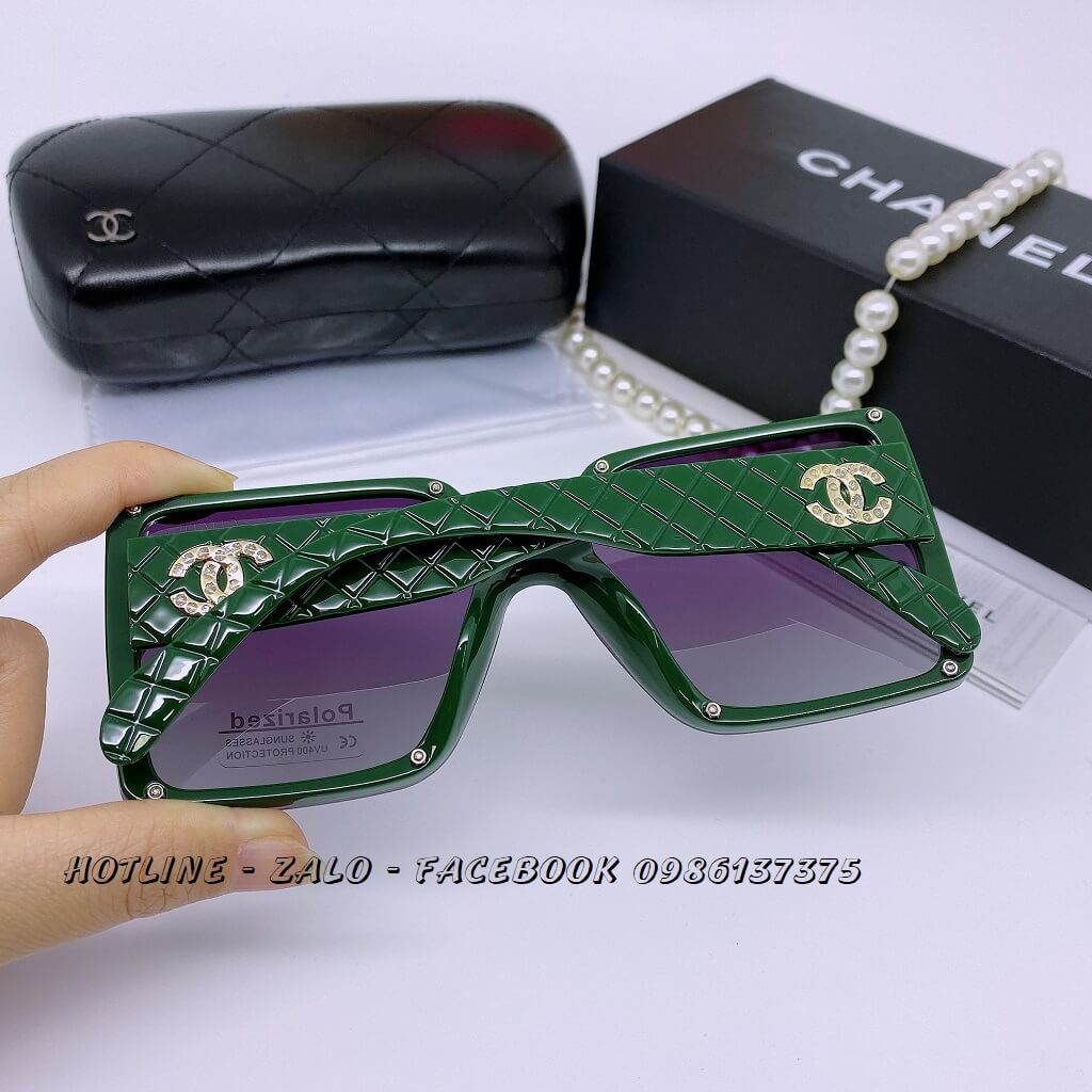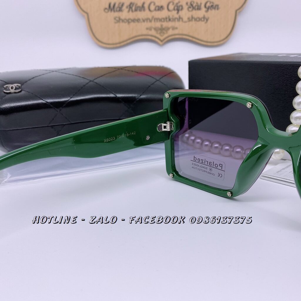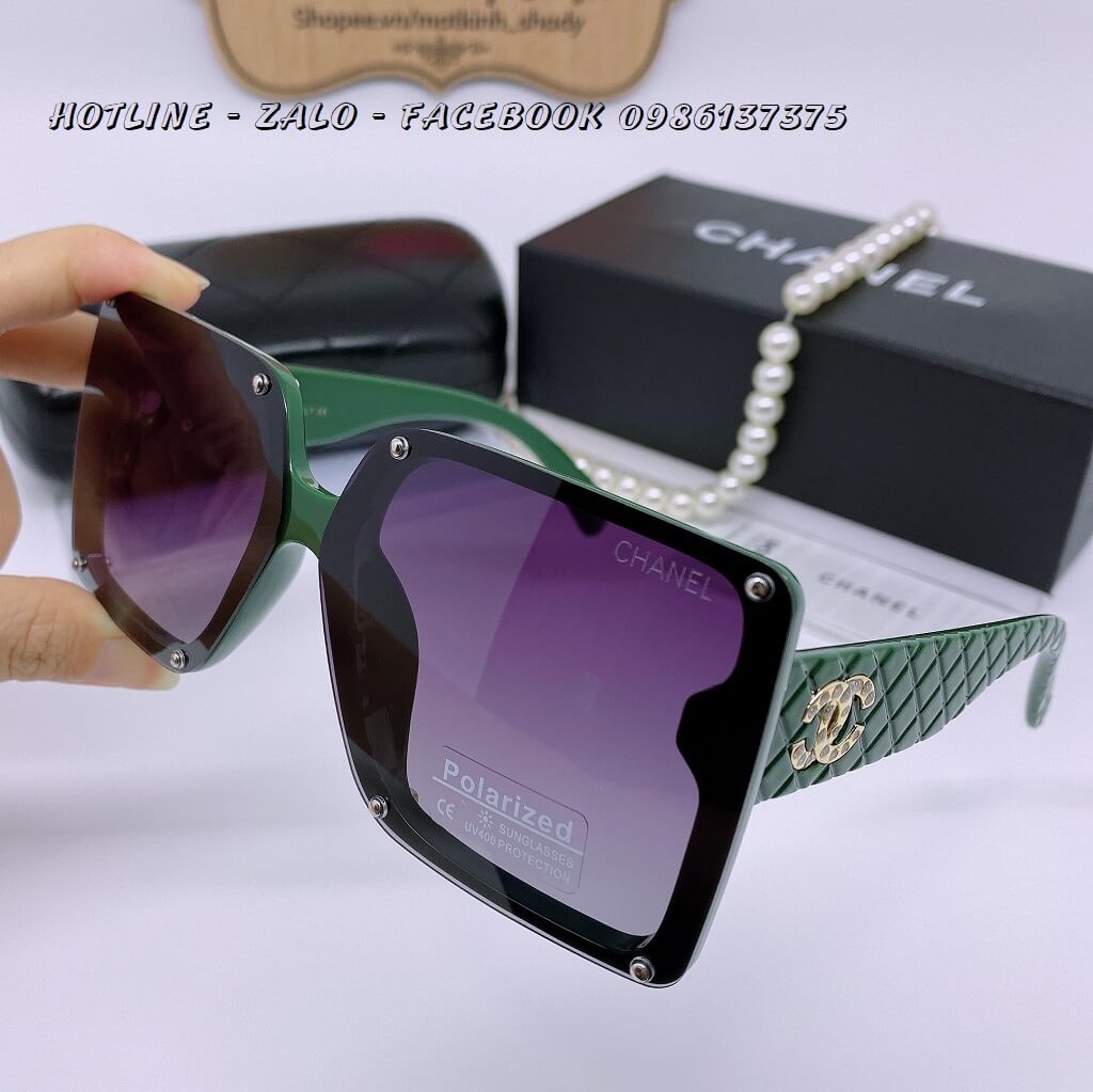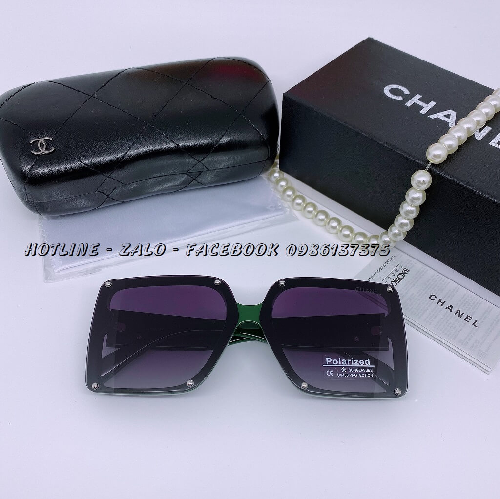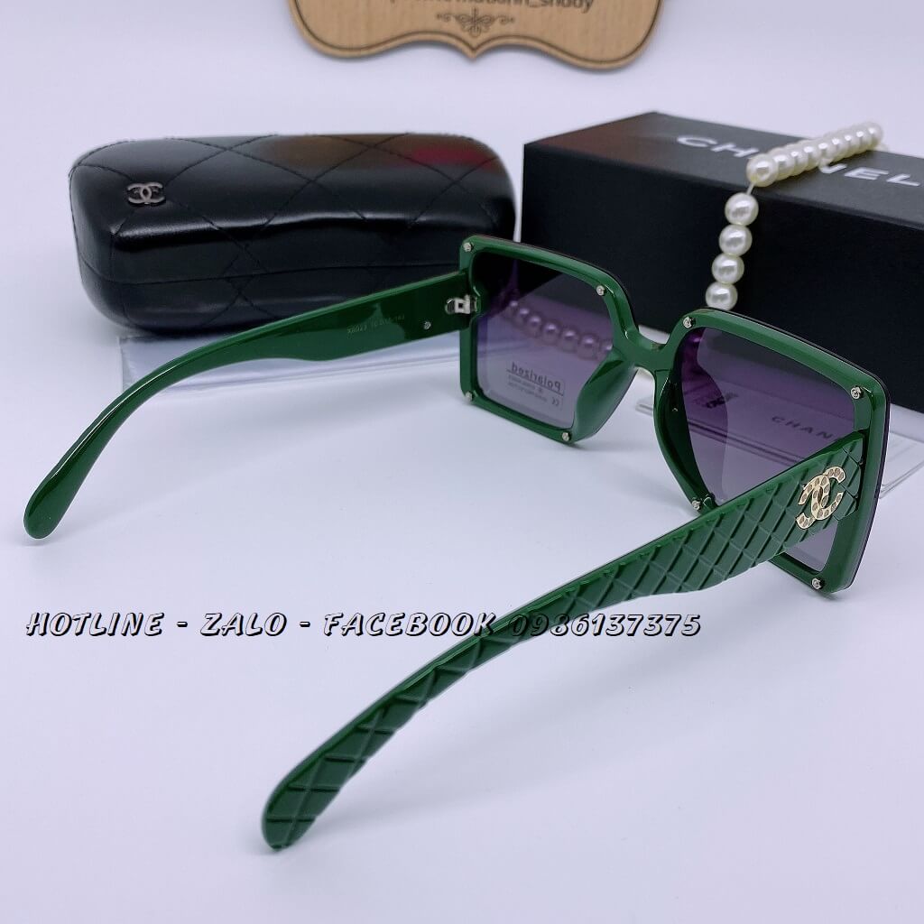 MẮT KÍNH THỜI TRANG NỮ CHANEL – TRÒNG VUÔNG MÀU ĐEN, GỌNG XANH OLIVE – TRÒNG POLARIZED CHỐNG CHÓI
