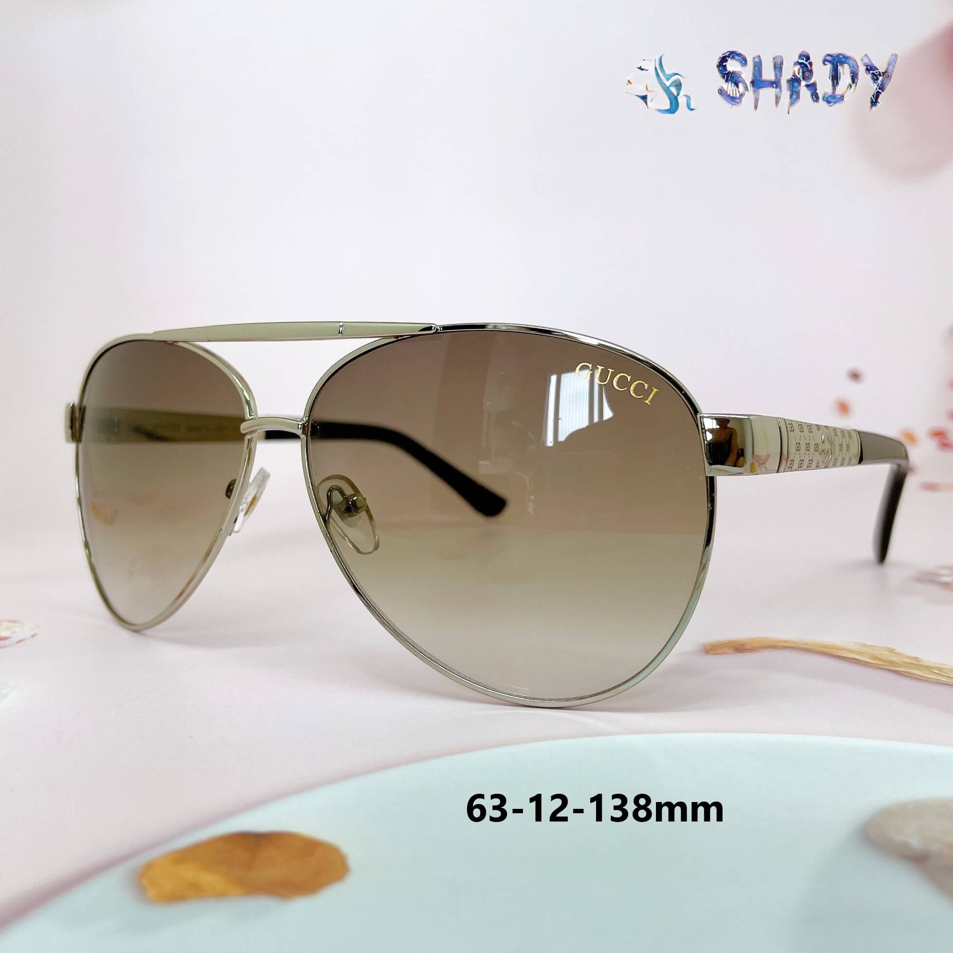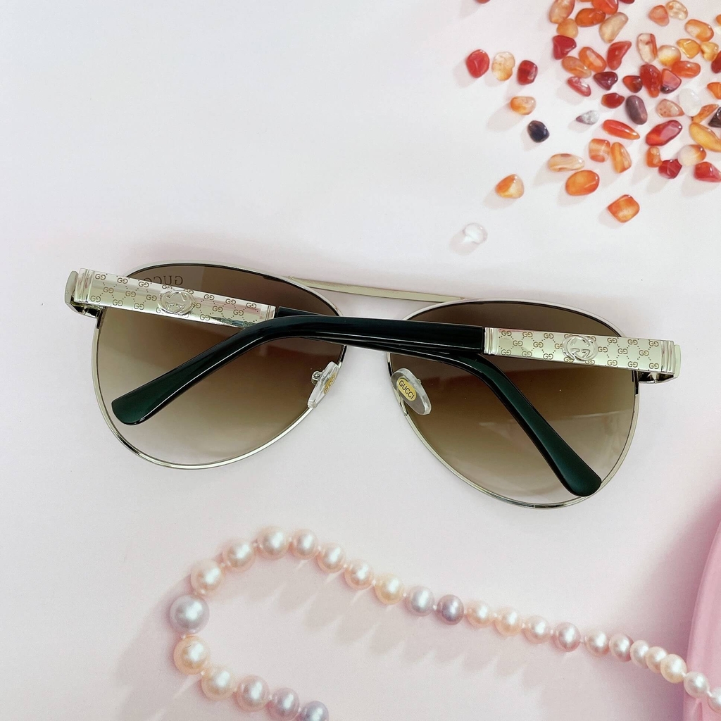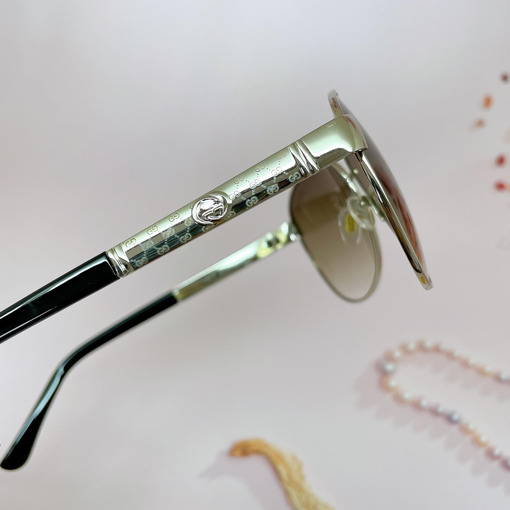 Gọng kim loại silver sáng bóng, khắc họa tiết logo Gucci tinh xảo.