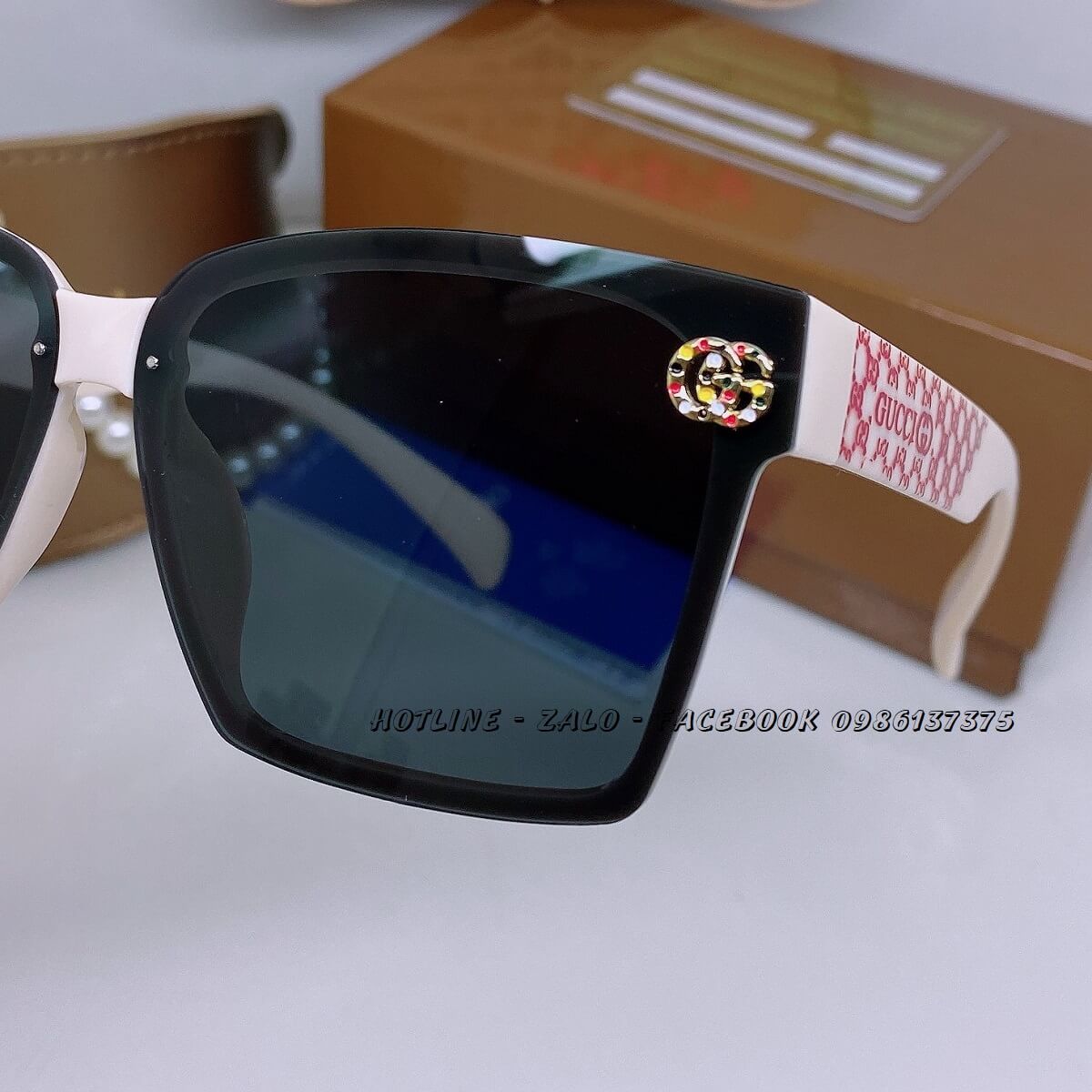 MẮT KÍNH THỜI TRANG NỮ - KÍNH GUCCI NỮ VUÔNG ĐEN GỌNG TRẮNG SỮA CAO CẤP - MÃ 1102