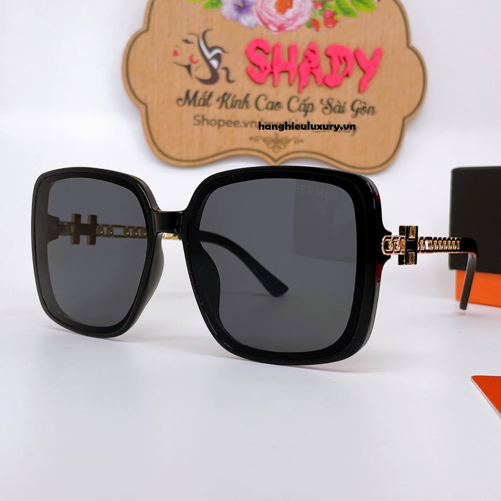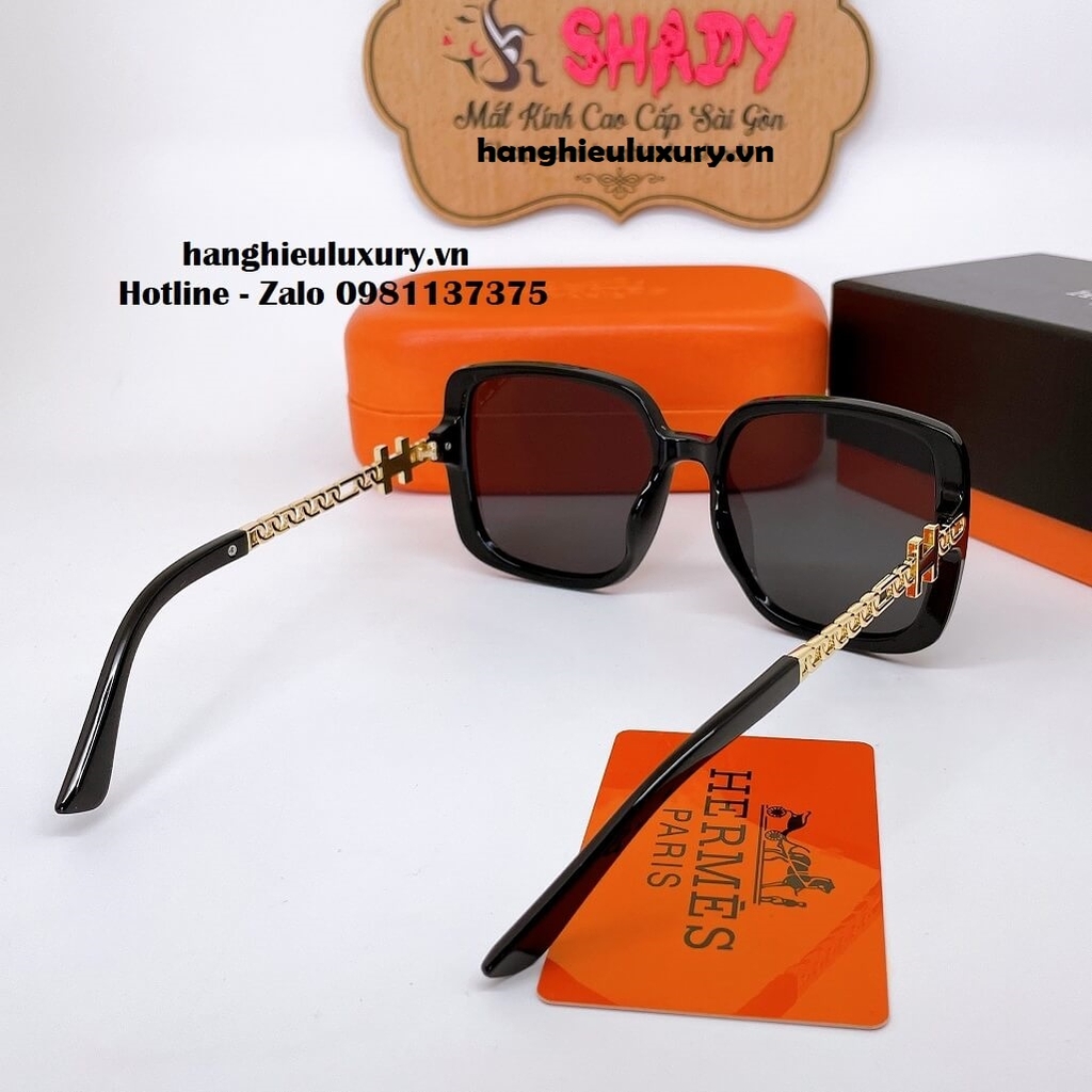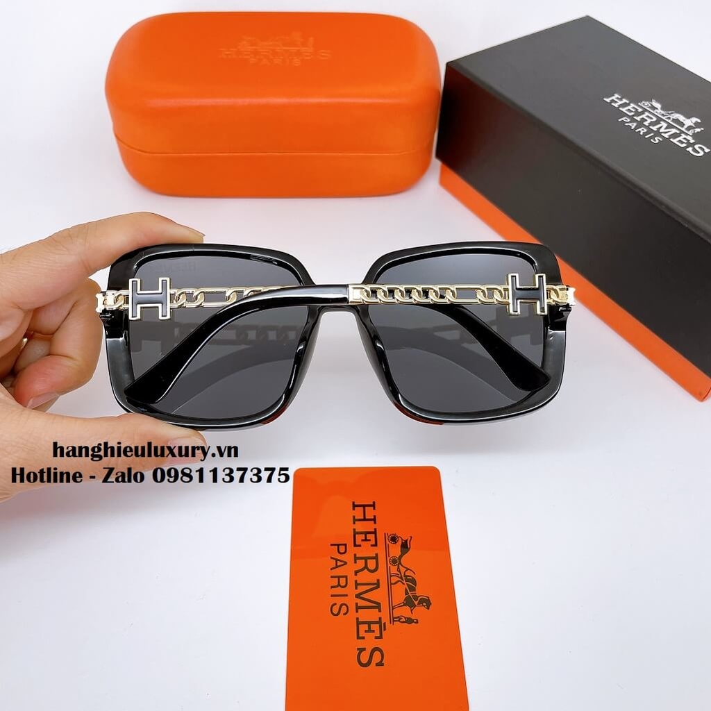 Mẫu kính Hermes nữ vuông đen là lựa chọn hoàn hảo cho nàng yêu thích phong cách thời thượng, sang trọng và cá tính. Với form kính vuông to hiện đại, kết hợp gọng chữ H đặc trưng cùng chi tiết mắc xích kim loại tinh tế, sản phẩm mang đậm dấu ấn xa hoa đặc trưng của Hermes.