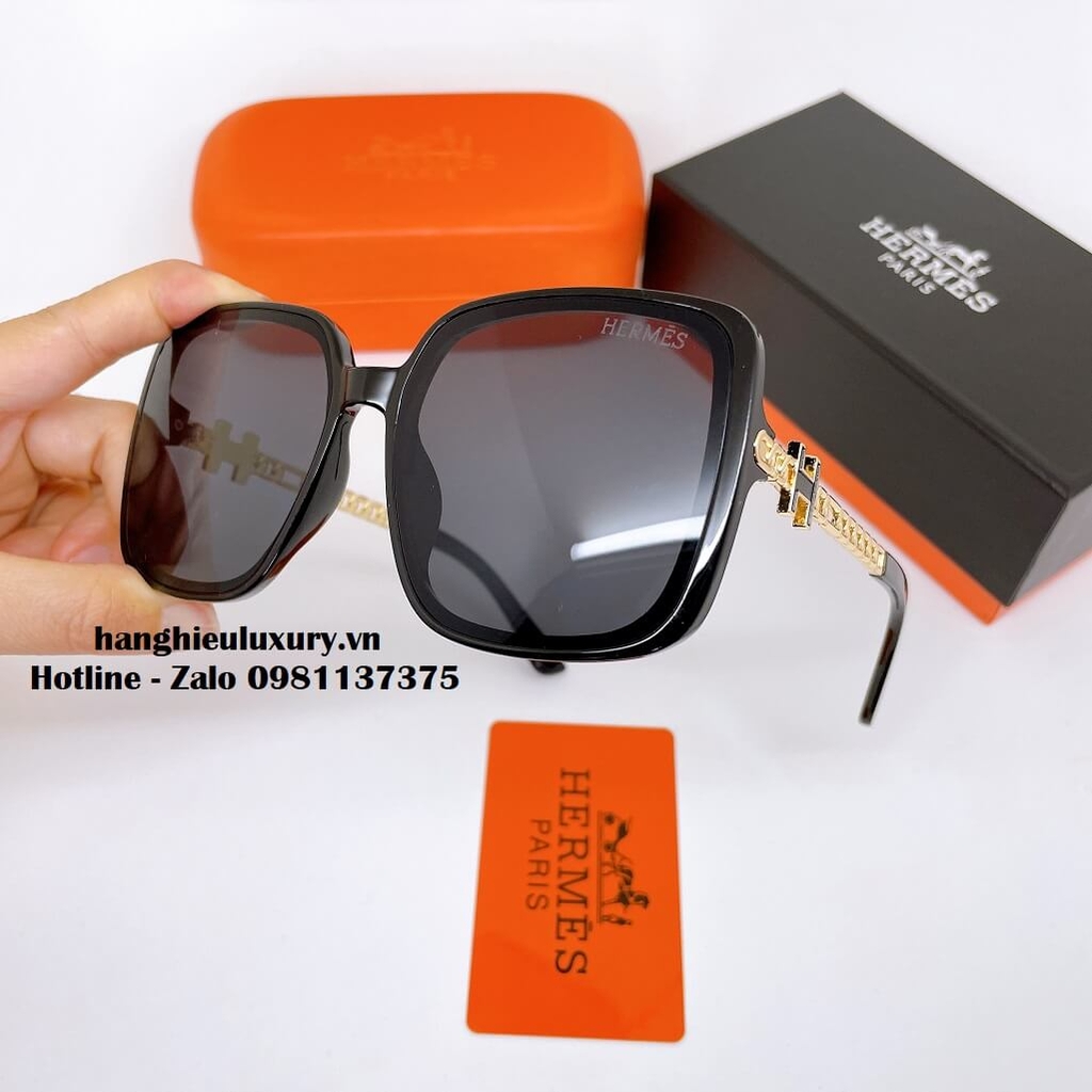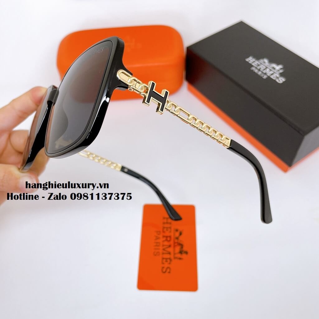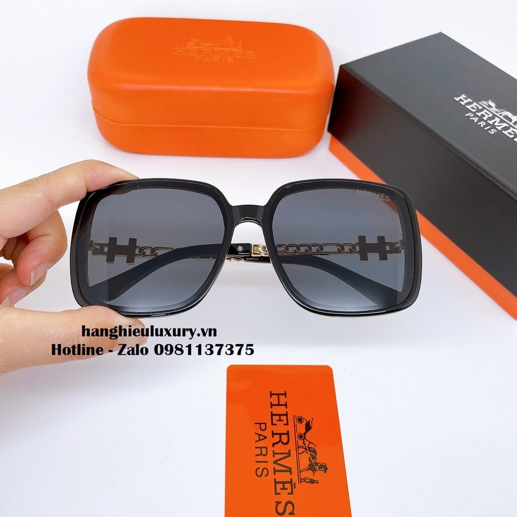 Mẫu kính Hermes nữ vuông đen là lựa chọn hoàn hảo cho nàng yêu thích phong cách thời thượng, sang trọng và cá tính. Với form kính vuông to hiện đại, kết hợp gọng chữ H đặc trưng cùng chi tiết mắc xích kim loại tinh tế, sản phẩm mang đậm dấu ấn xa hoa đặc trưng của Hermes.