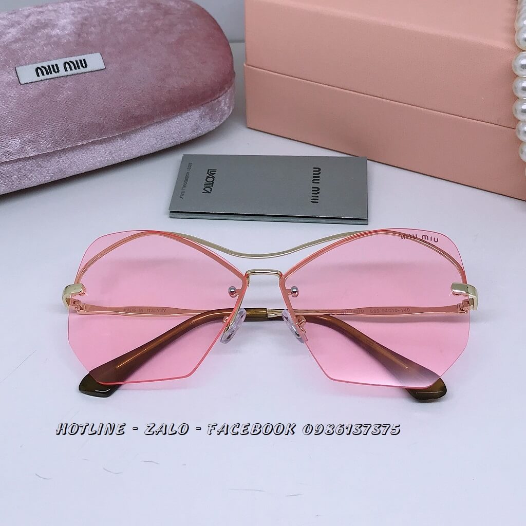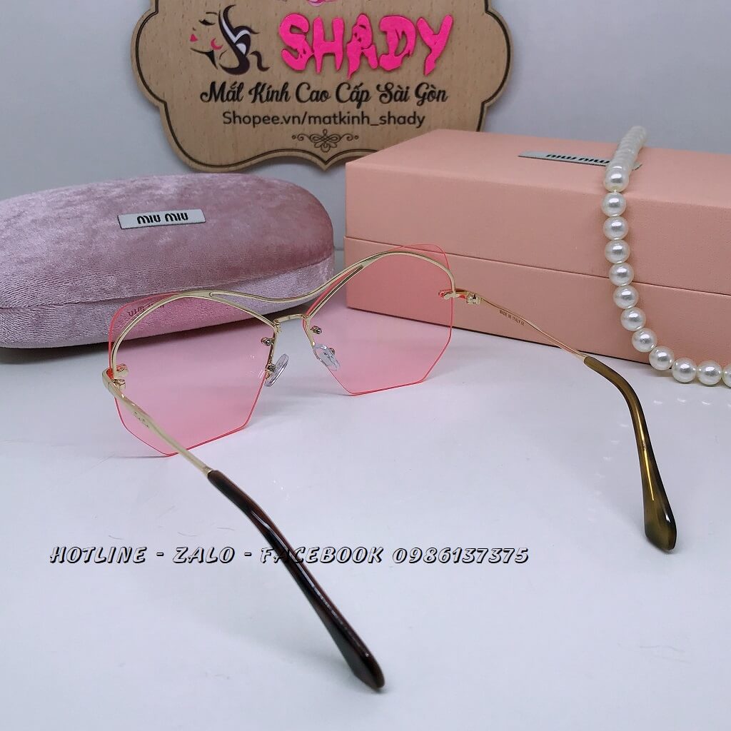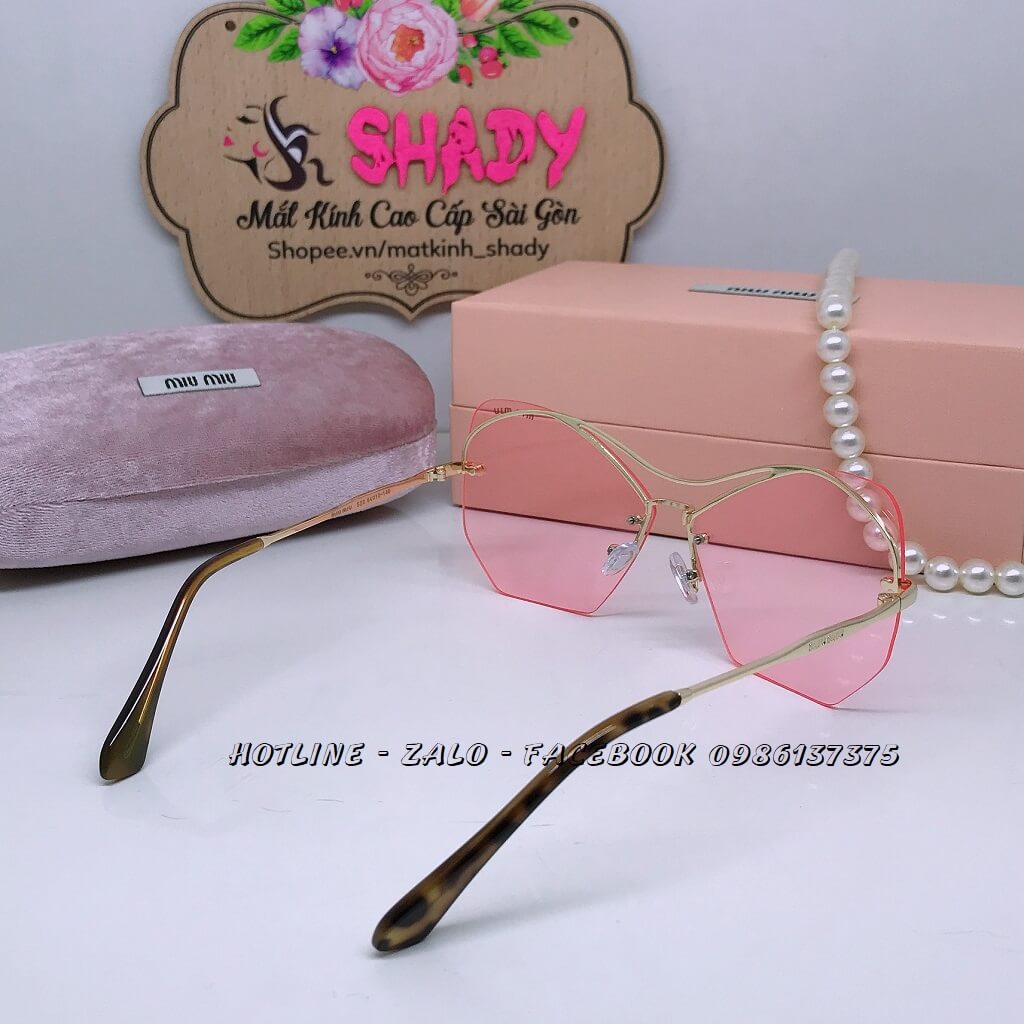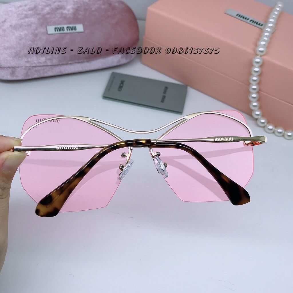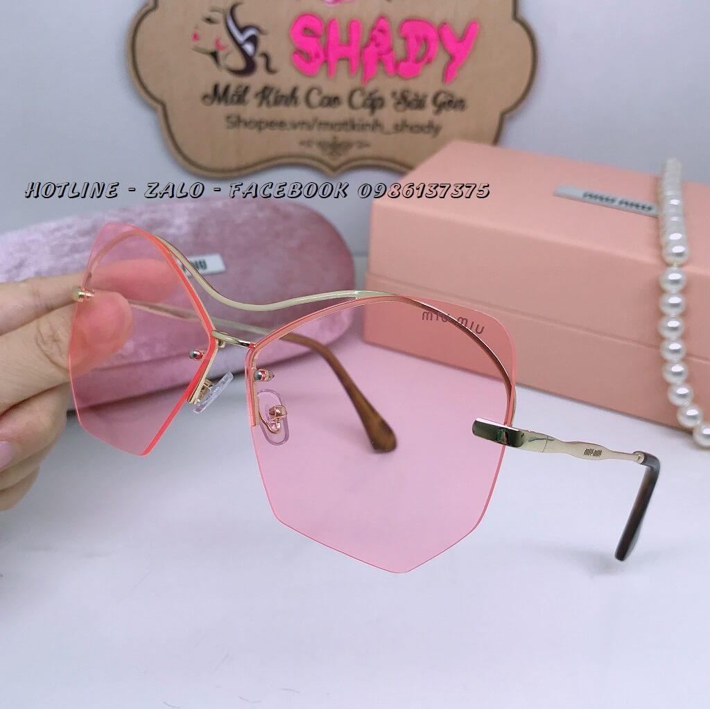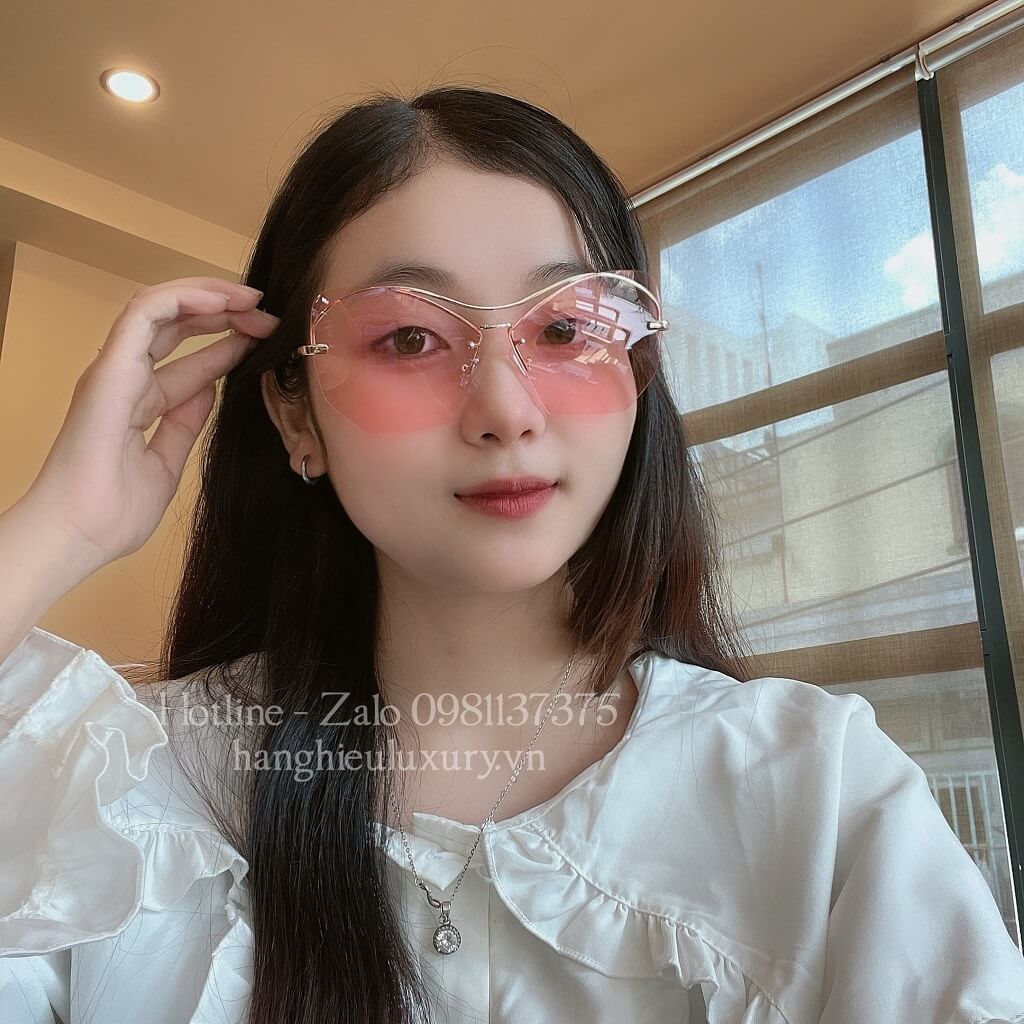 - Mắt Kính Miu Miu Nữ Hồng Mắt Mèo Gọng Vàng Cao Cấp