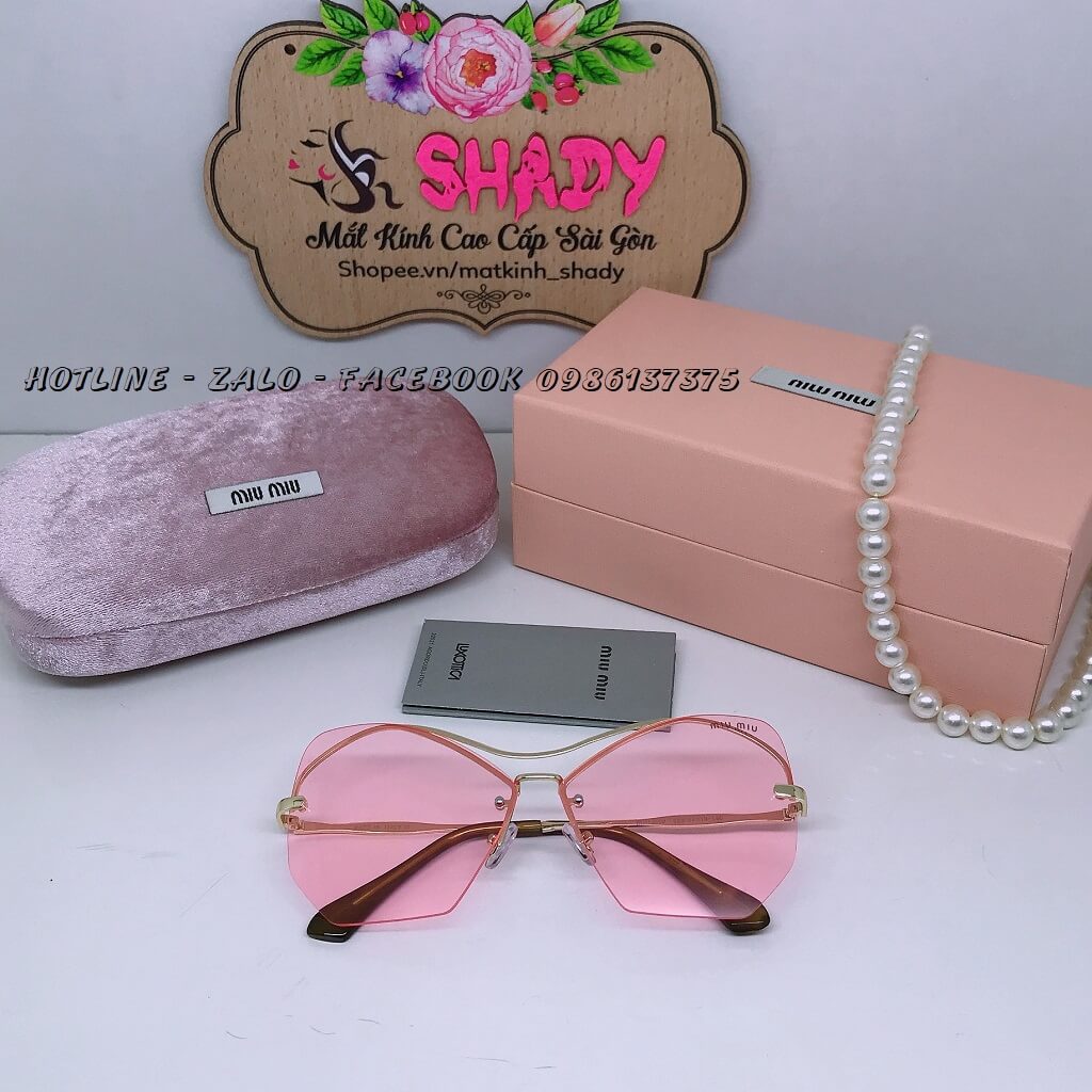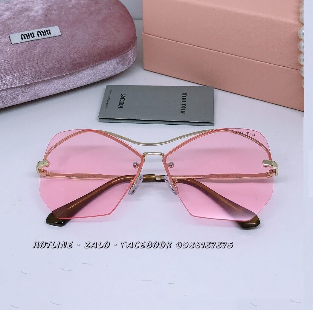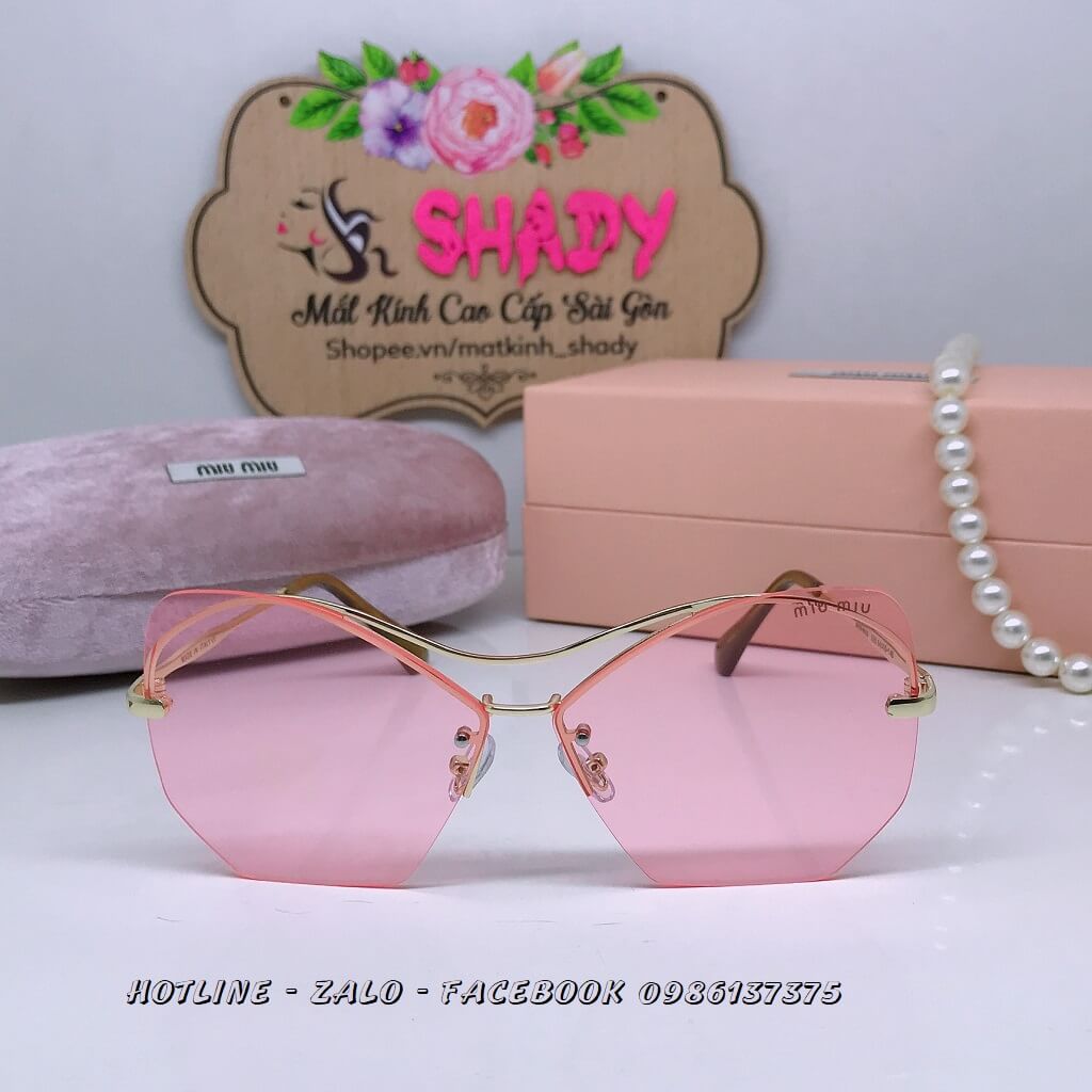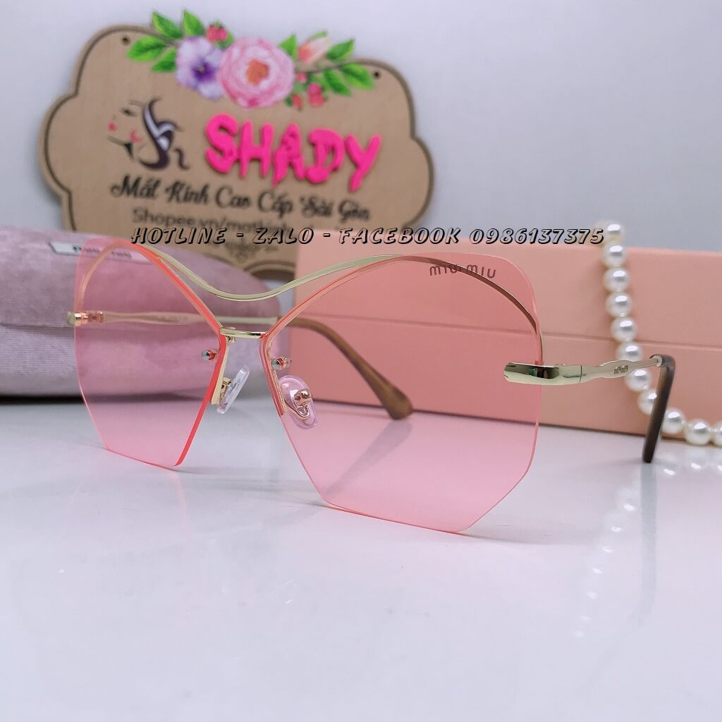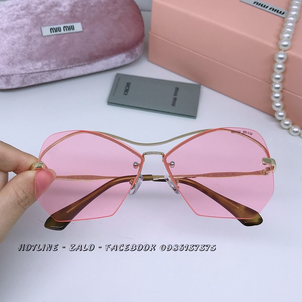 - Mắt Kính Miu Miu Nữ Hồng Mắt Mèo Gọng Vàng Cao Cấp
