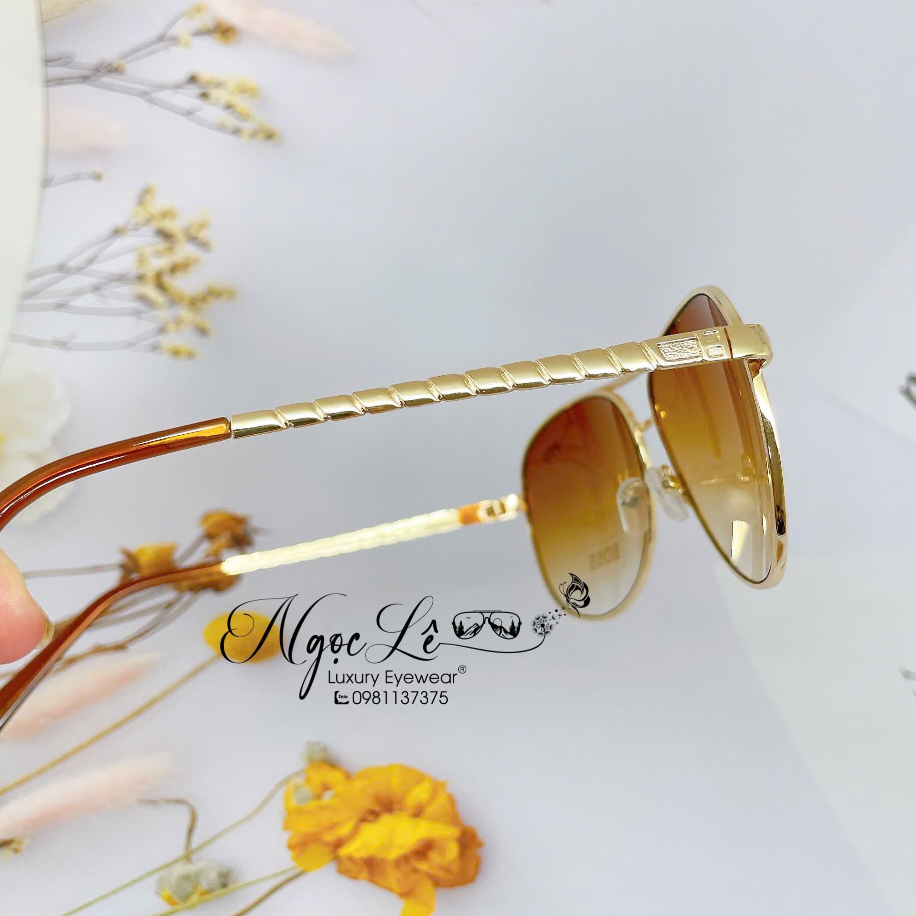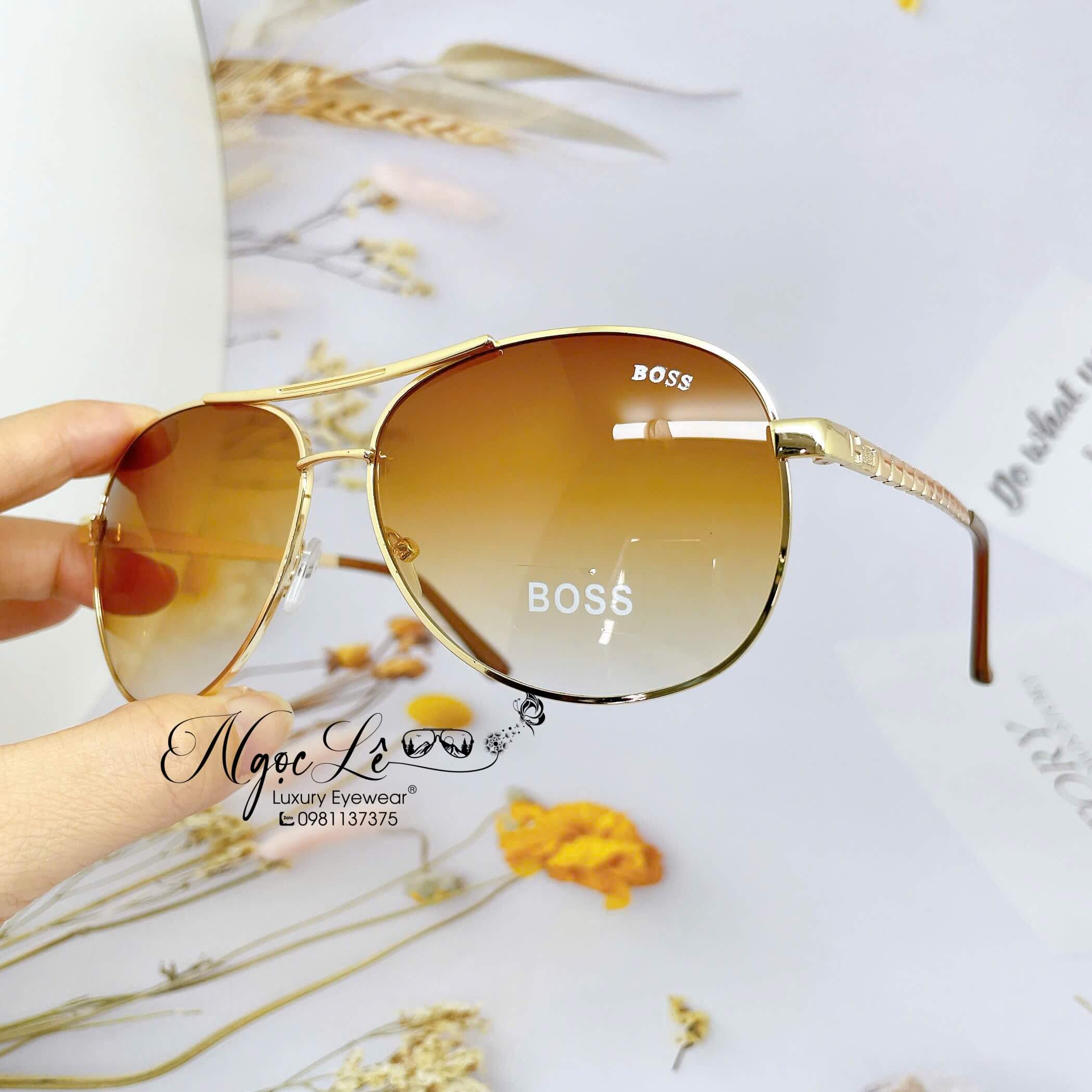Phiên bản kính mát Boss mang đến sự kết hợp hoàn hảo giữa tròng nâu cổ điển và gọng kim loại vàng champagne tinh tế.
