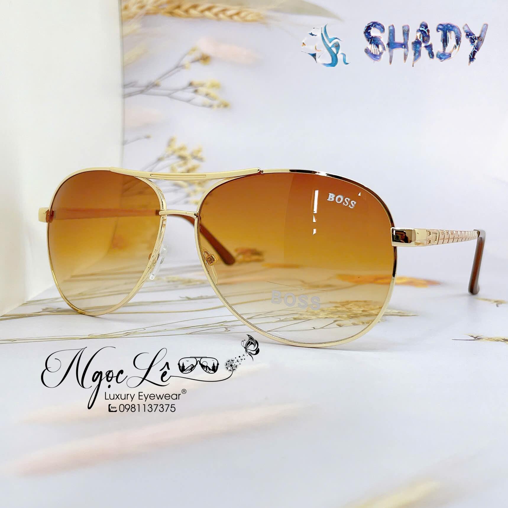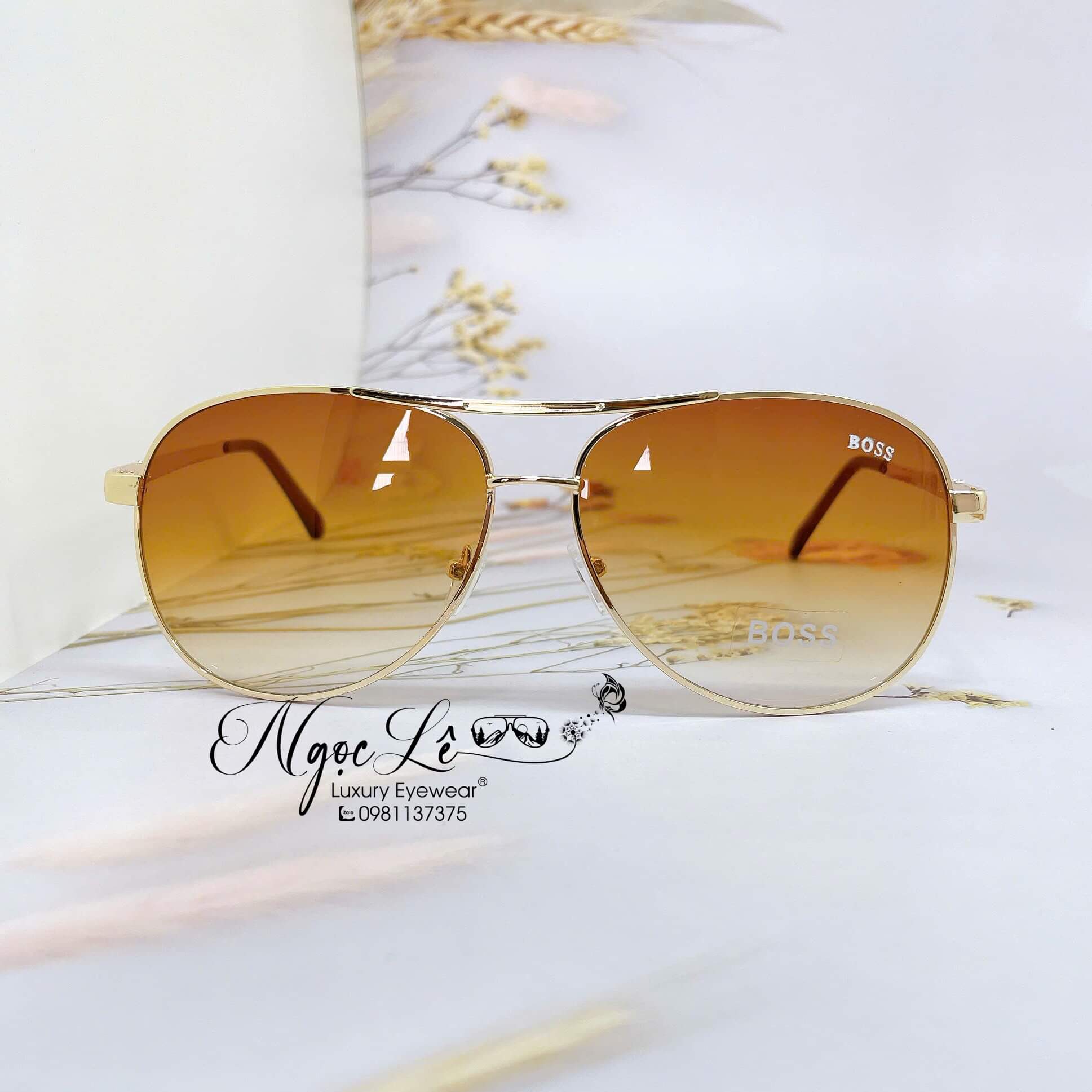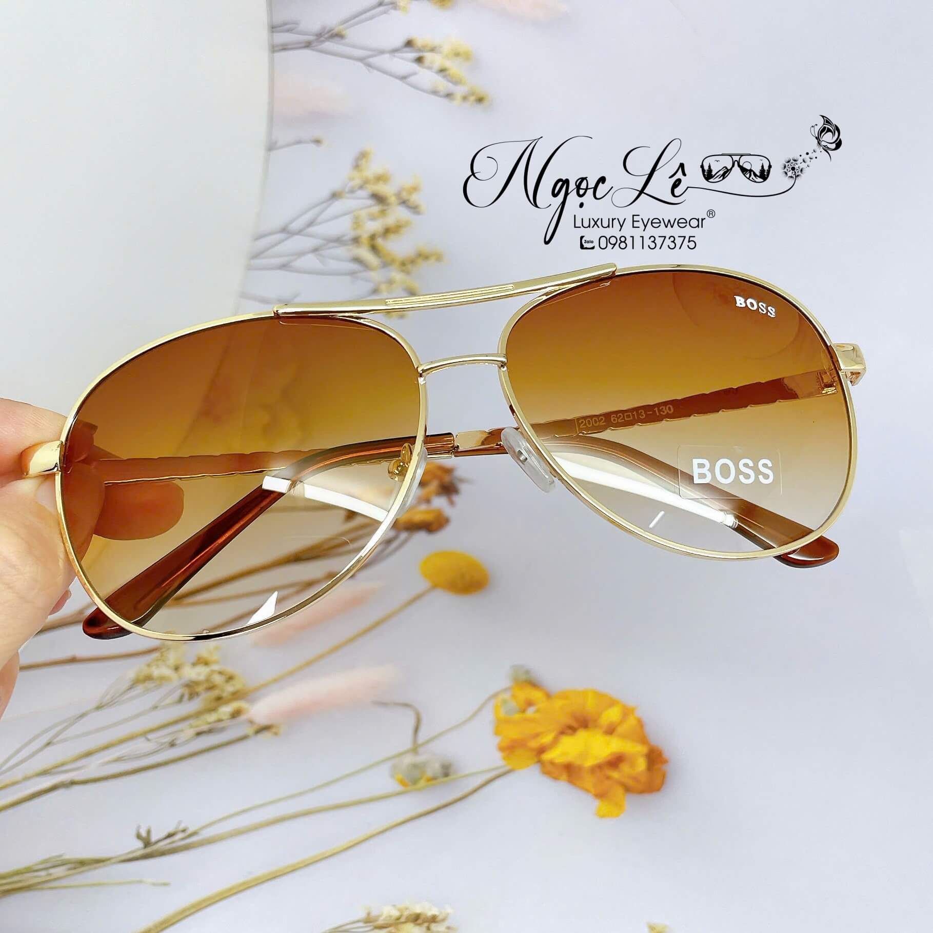 MẮT KÍNH NAM BOSS CAO CẤP – MÀU NÂU GỌNG VÀNG – SIZE 62-13-130mm