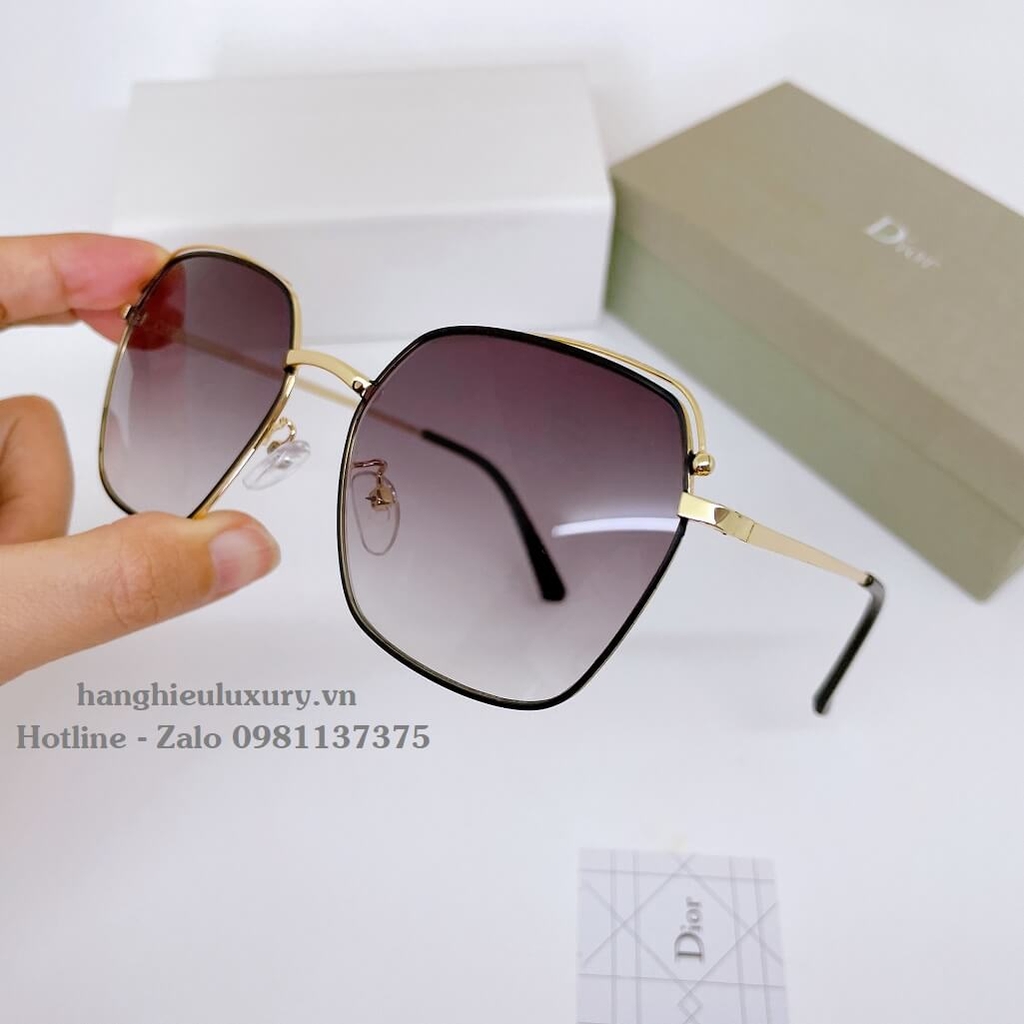 Hình ảnh Mắt Kính Thời Trang Nữ - Kính Dior Nữ Vuông Viền Kim Loại Đen Khói Tròng Polarized B80-148