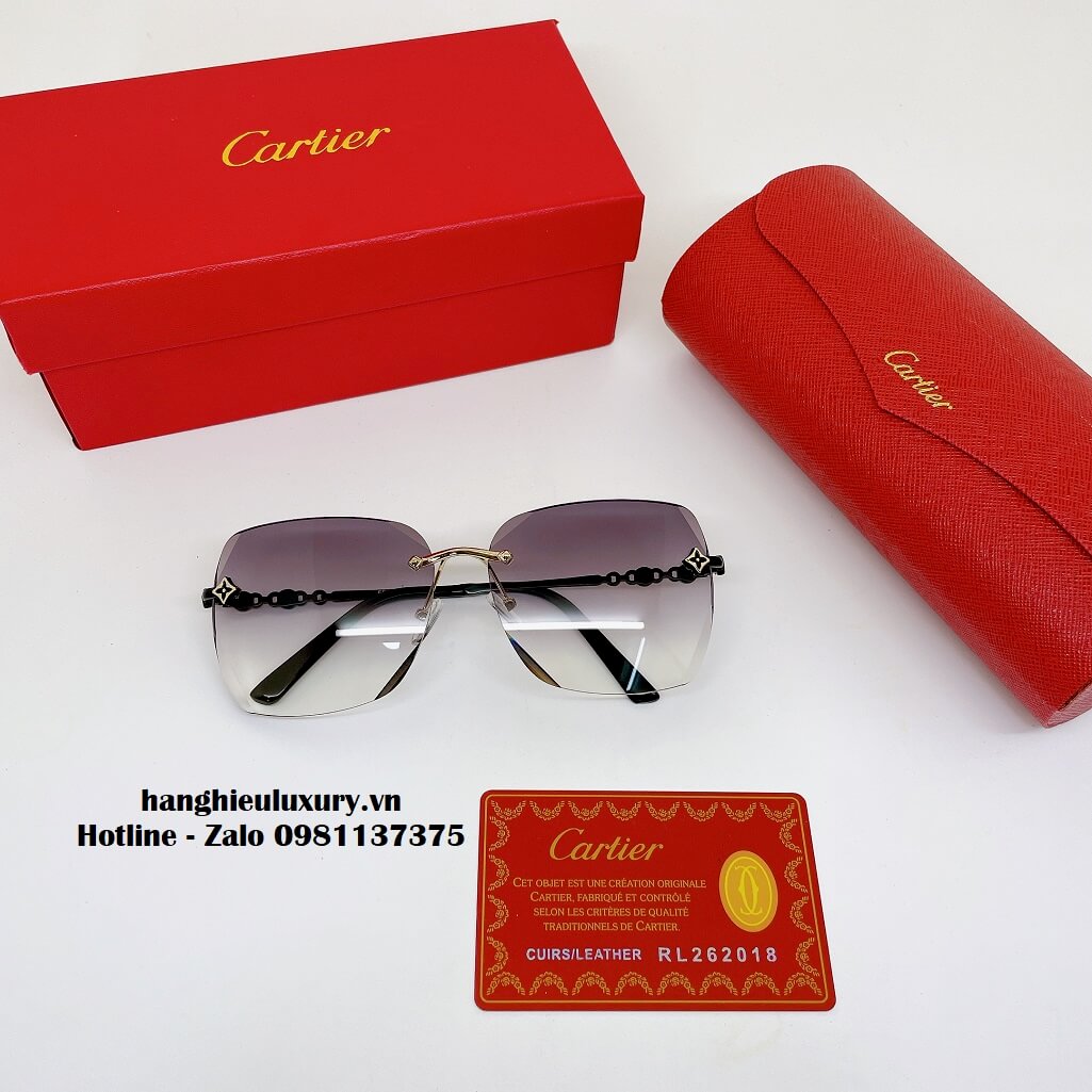 Hình ảnh thực tế Kính Mát Cartier nữ màu xám gọng kim loại cao cấp