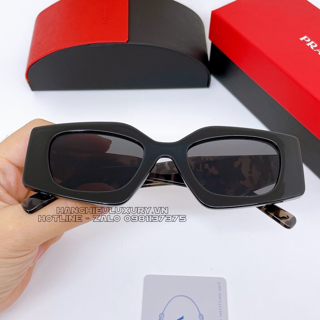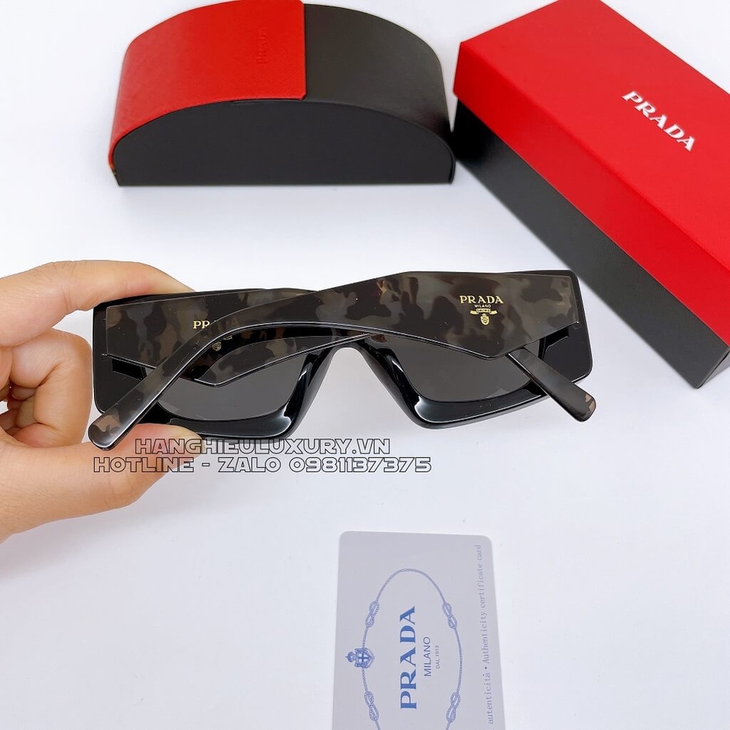 - Kính Mát Prada Symbole màu đen có khả năng hỗ trợ loại bỏ ánh sáng chói, tăng cường độ tương phản, đồng thời chiếc mắt kính này còn giảm độ căng thẳng cho mắt, đặc biệt khi đi ngoài trời nắng nóng.