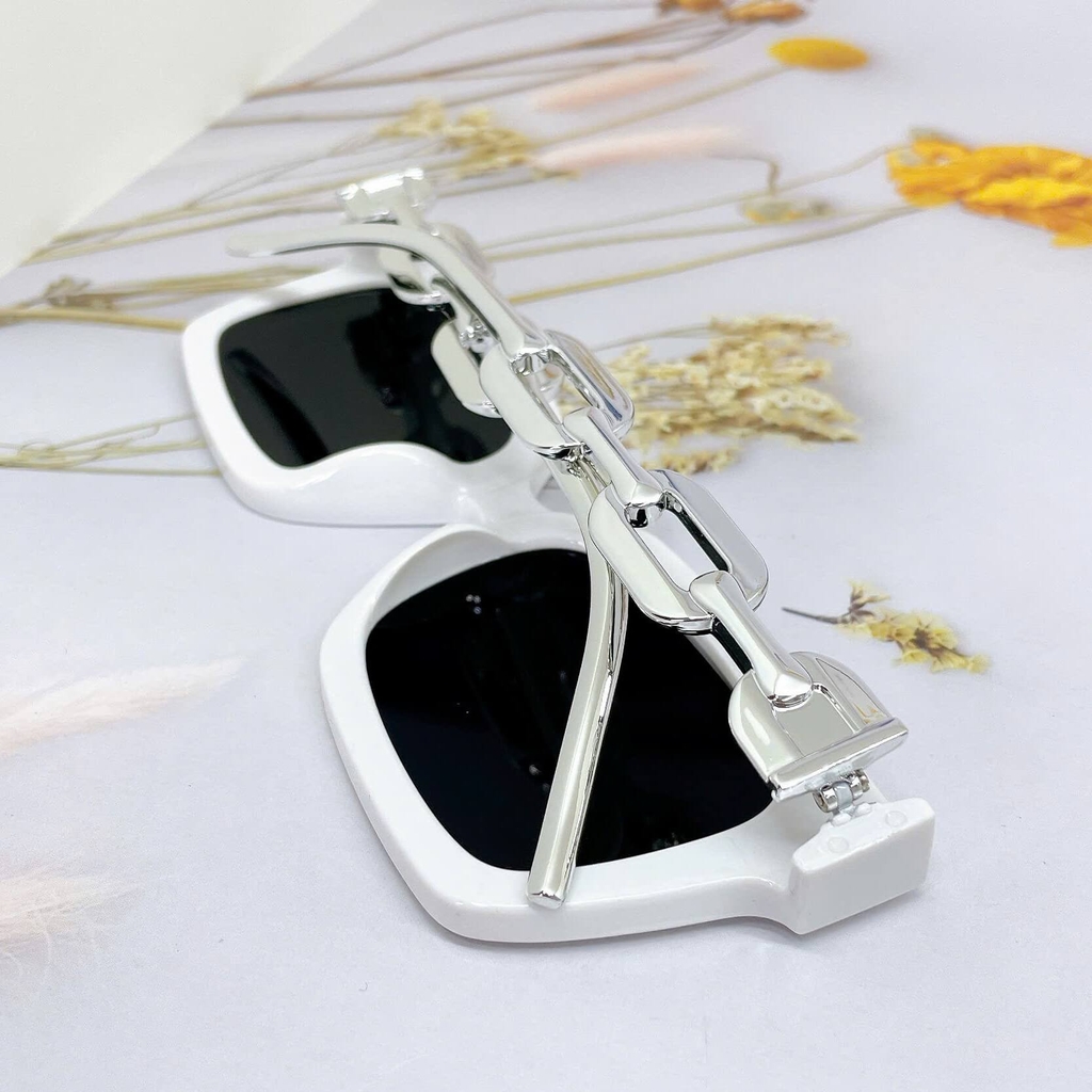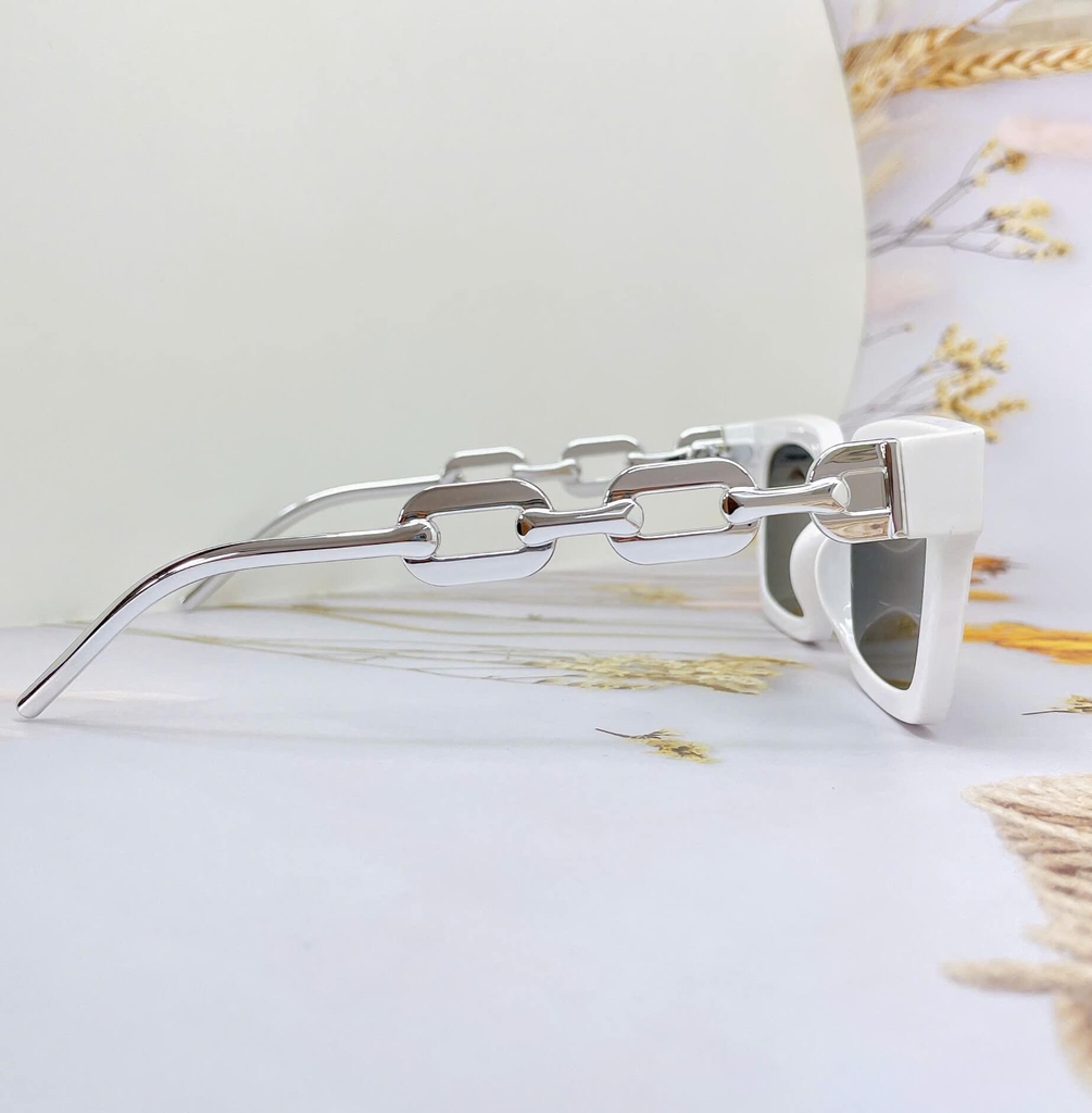 Nổi bật – cá tính – sang trọng, Kính Louis Vuitton Nữ Trắng Tráng Gương Bạc Gọng Mắc Xích là mẫu kính dành cho những cô nàng yêu thích phong cách thời trang high-fashion và khác biệt.