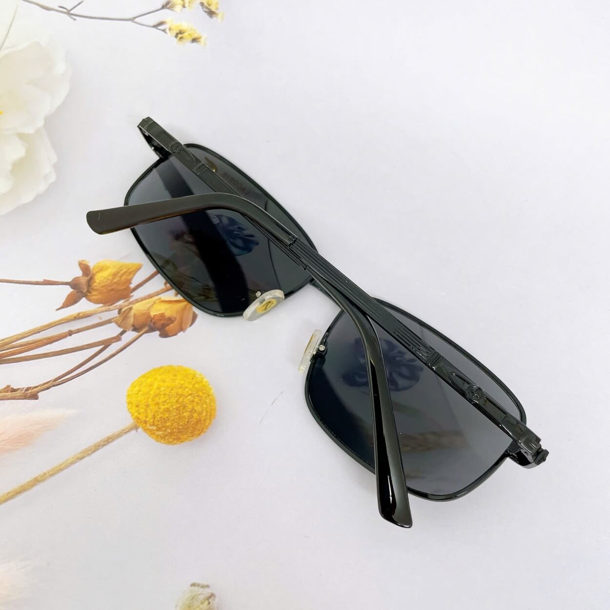 Gọng kim loại đen mạnh mẽ, mang đến cảm giác chắc chắn, đẳng cấp.