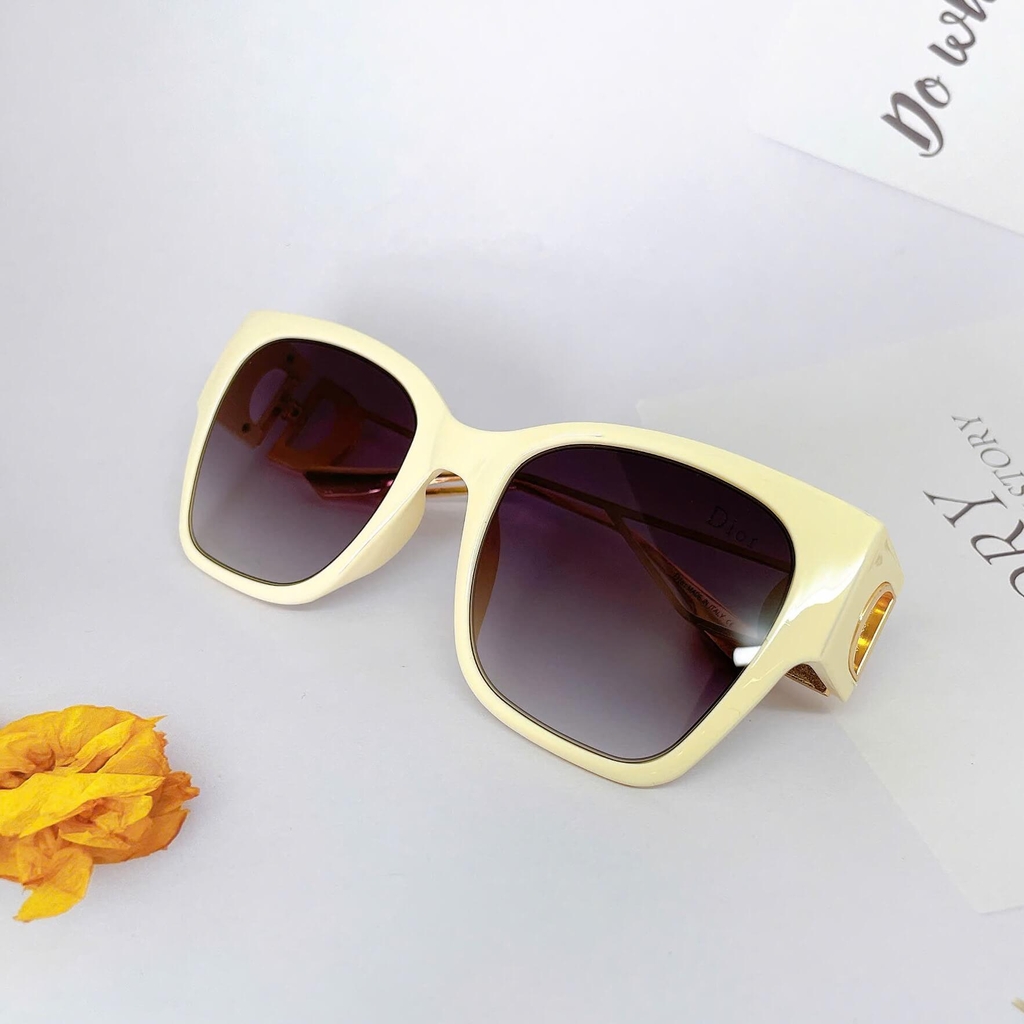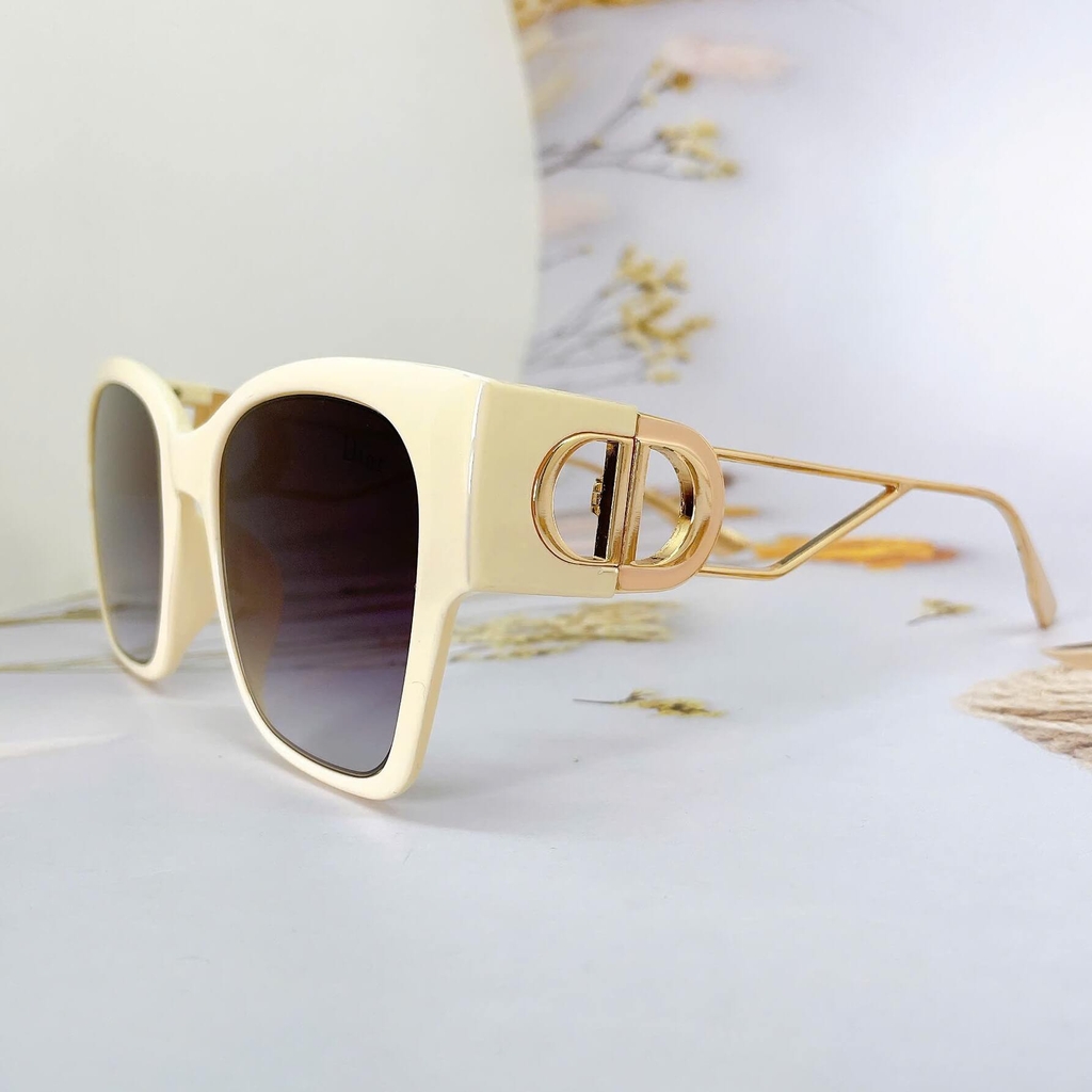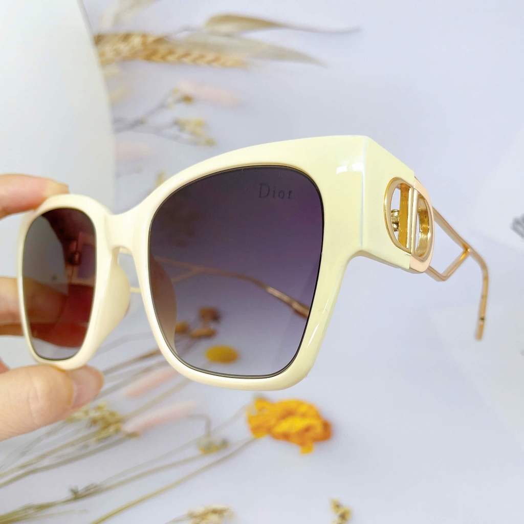 Hình ảnh Mắt Kính Thời Trang Nữ - Kính Dior Màu Trắng Kem Gọng Kim Loại Tròng Polarized Cao Cấp 6098