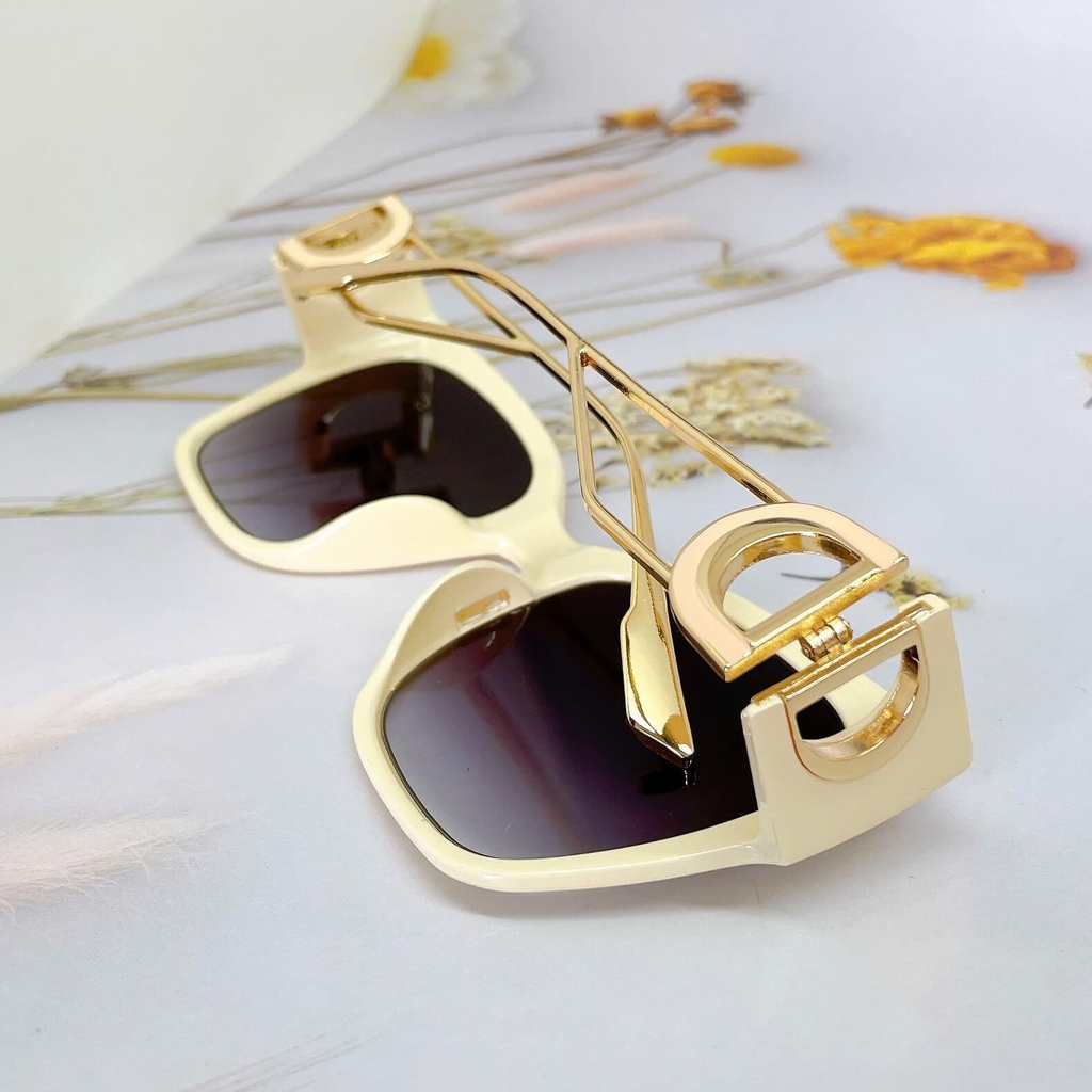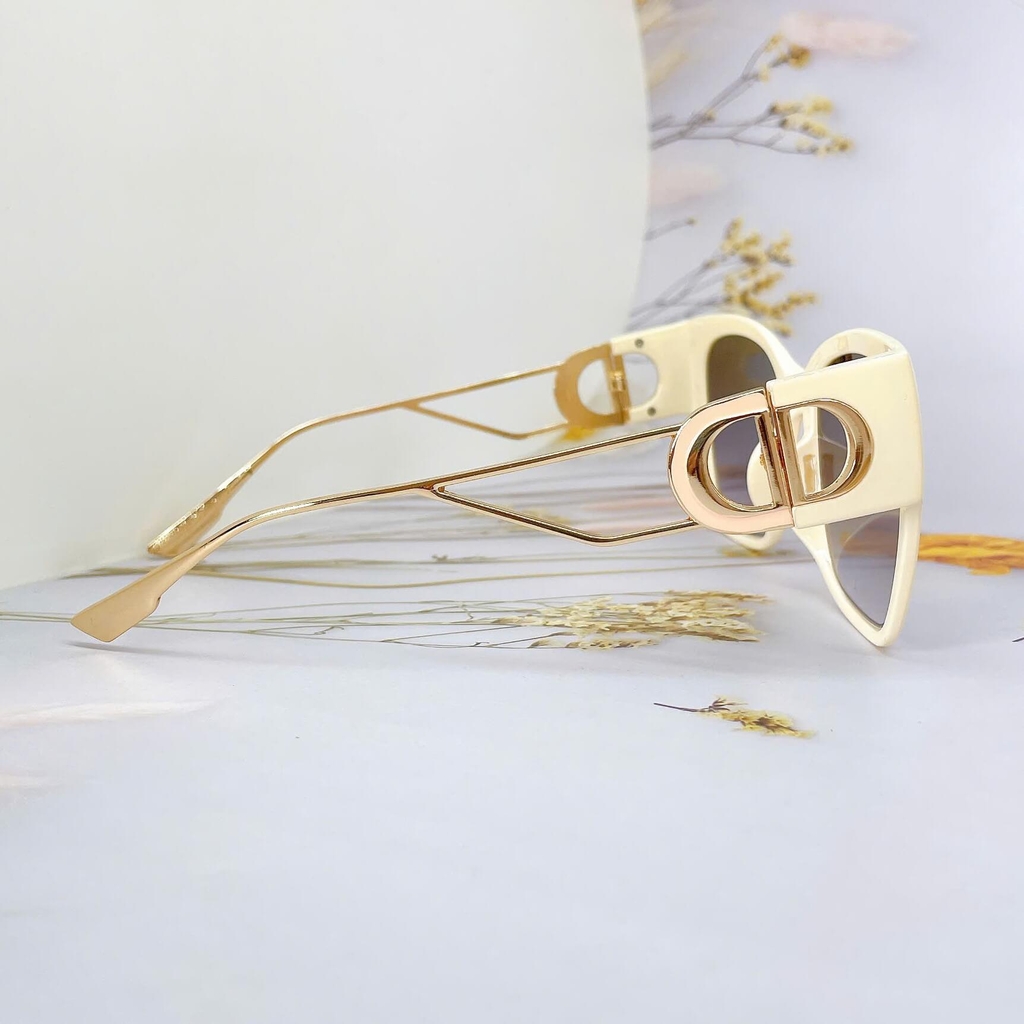 MẮT KÍNH THỜI TRANG NỮ - KÍNH DIOR MÀU TRẮNG KEM GỌNG KIM LOẠI TRÒNG POLARIZED CAO CẤP - MÃ 6098