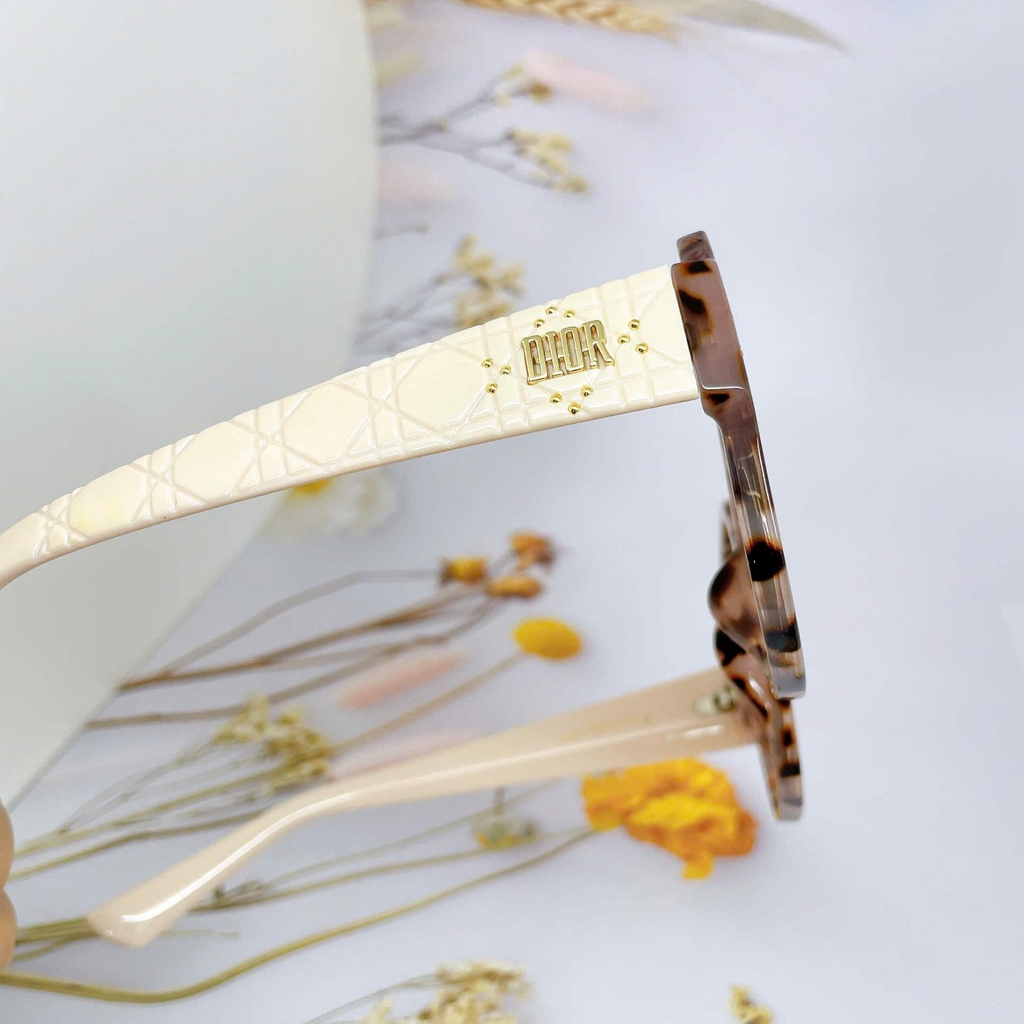 Tên sản phẩm: Mắt Kính Dior Nữ Tròng Bầu Màu Nâu – Gọng Nâu Hổ Phách Mix Trắng Sữa Cao Cấp