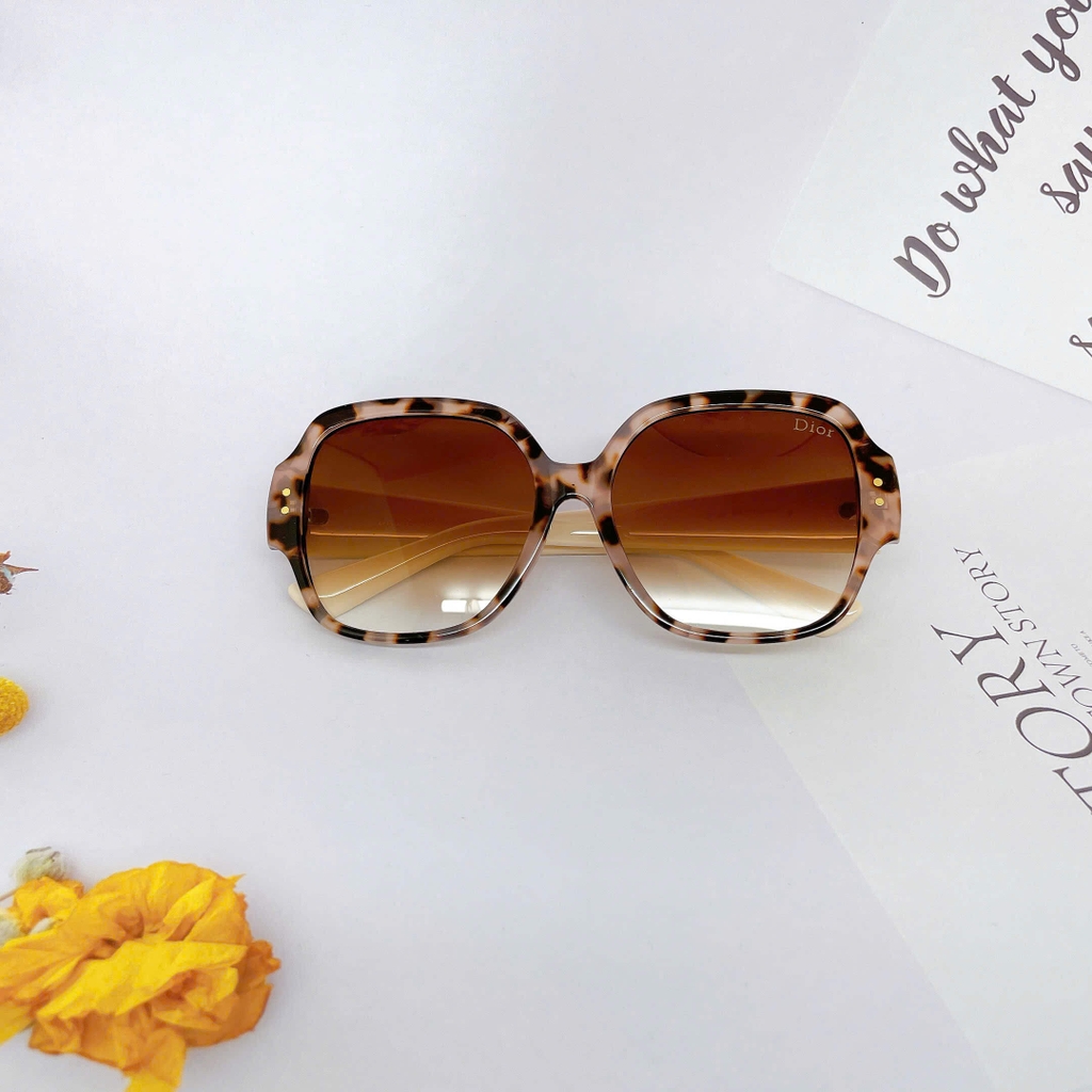 Hình ảnh Mắt Kính Thời Trang Nữ - Kính Dior Nữ Bầu Màu Nâu Gọng Hổ Phách Mix Trắng Sữa Fullbox 6160