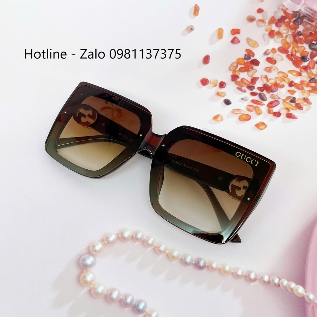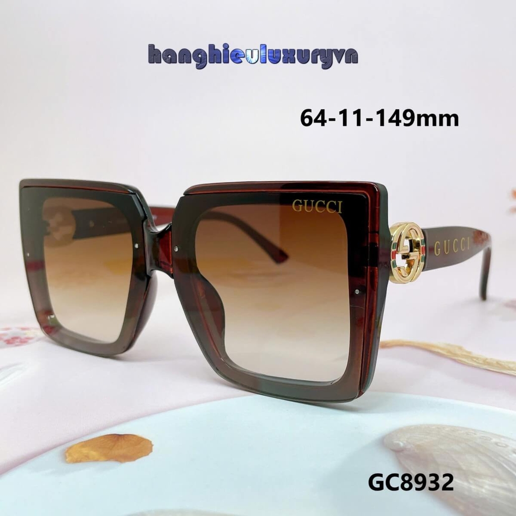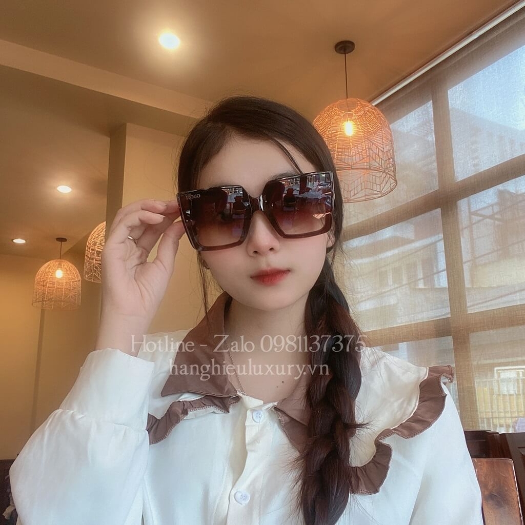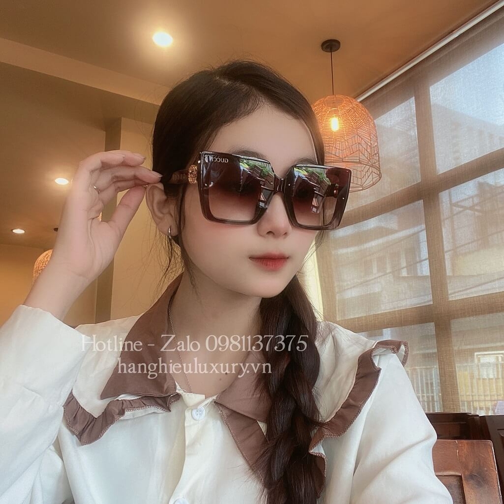 MẮT KÍNH THỜI TRANG NỮ - KÍNH GUCCI NỮ CAO CẤP TRÒNG VUÔNG MÀU NÂU FULL BOX - MÃ GC8932