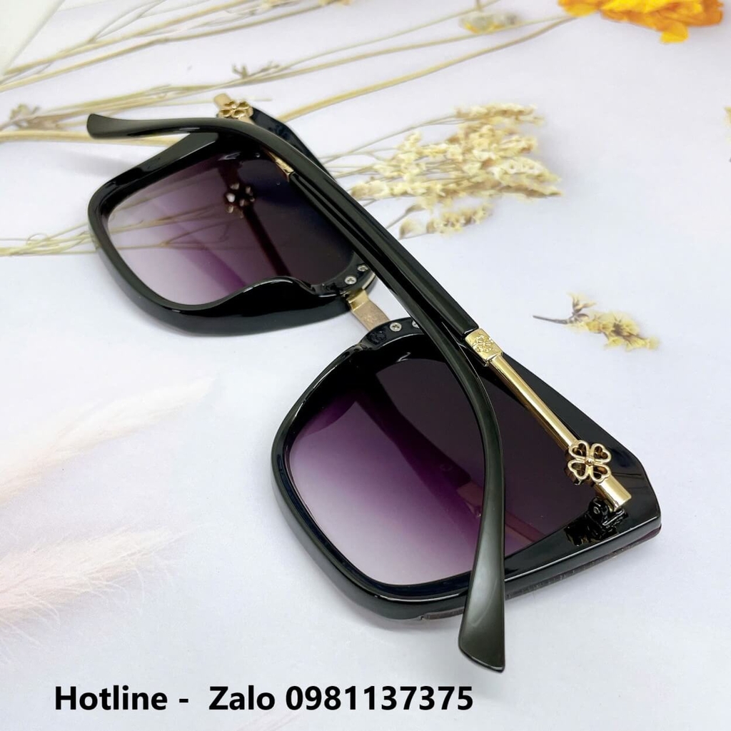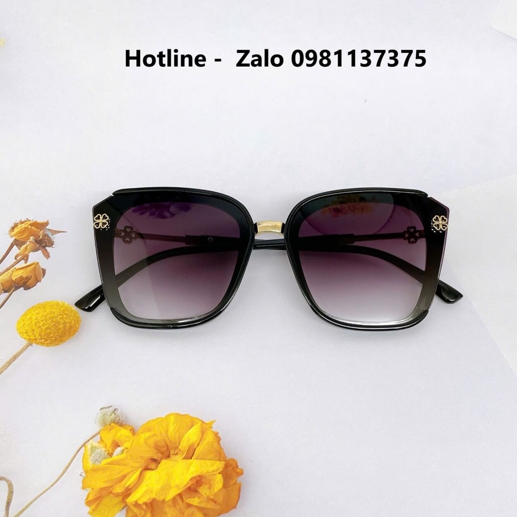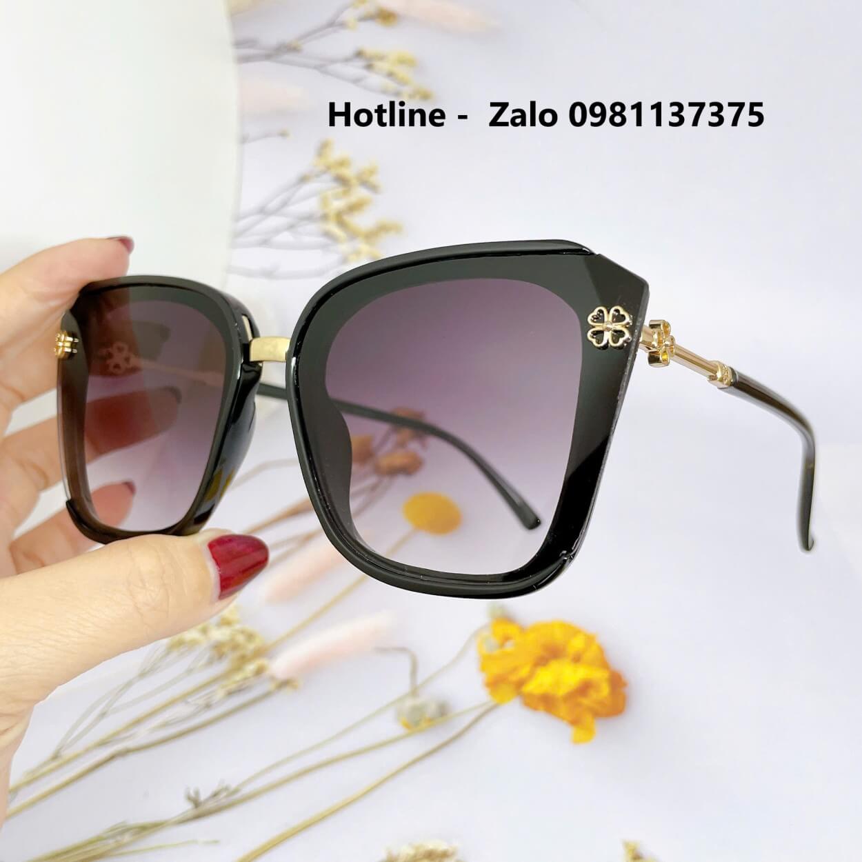 Thiết kế form kính to tràn viền màu đen huyền bí, điểm nhấn nổi bật nằm ở chi tiết cỏ 4 lá được đính tinh xảo ở phần gọng và góc tròng, mang ý nghĩa may mắn, thu hút tài lộc. Mẫu kính vừa giúp bảo vệ đôi mắt, vừa khẳng định phong cách thời trang đẳng cấp của bạn.