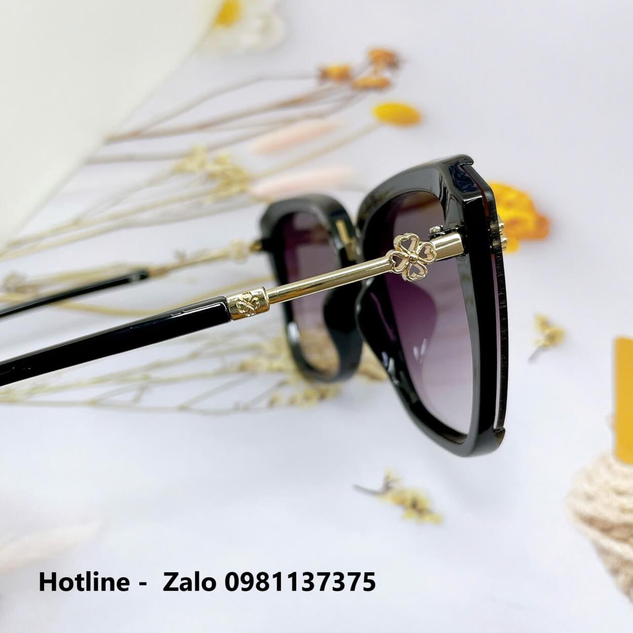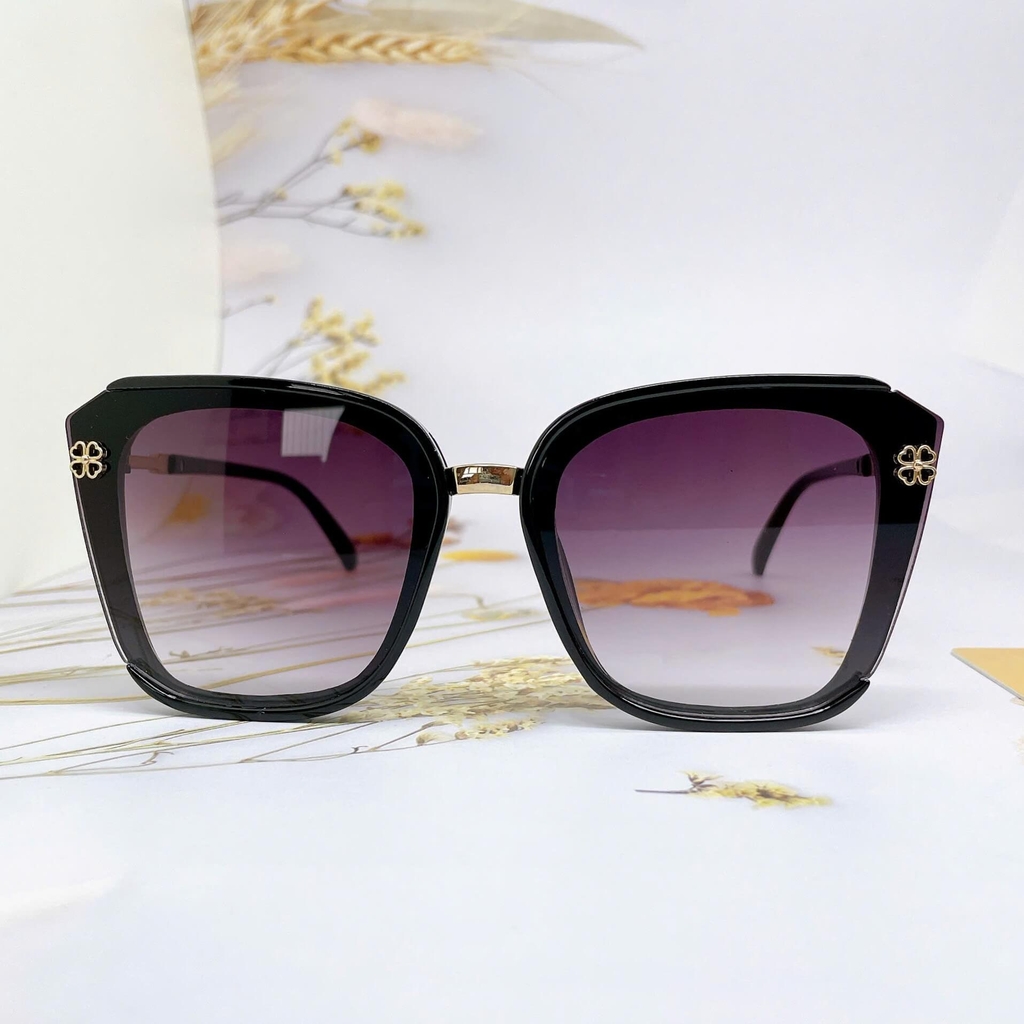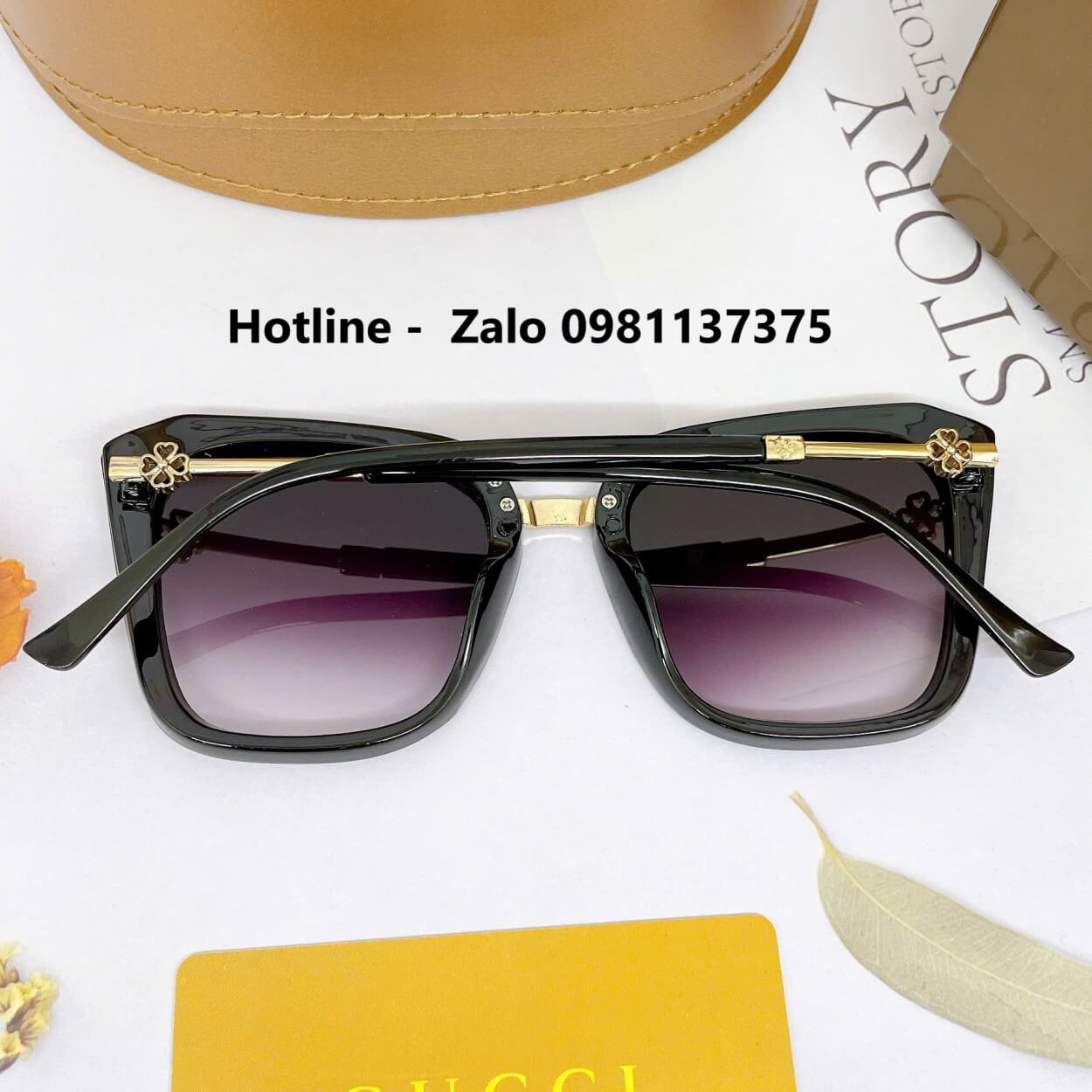 Thiết kế form kính to tràn viền màu đen huyền bí, điểm nhấn nổi bật nằm ở chi tiết cỏ 4 lá được đính tinh xảo ở phần gọng và góc tròng, mang ý nghĩa may mắn, thu hút tài lộc. Mẫu kính vừa giúp bảo vệ đôi mắt, vừa khẳng định phong cách thời trang đẳng cấp của bạn.