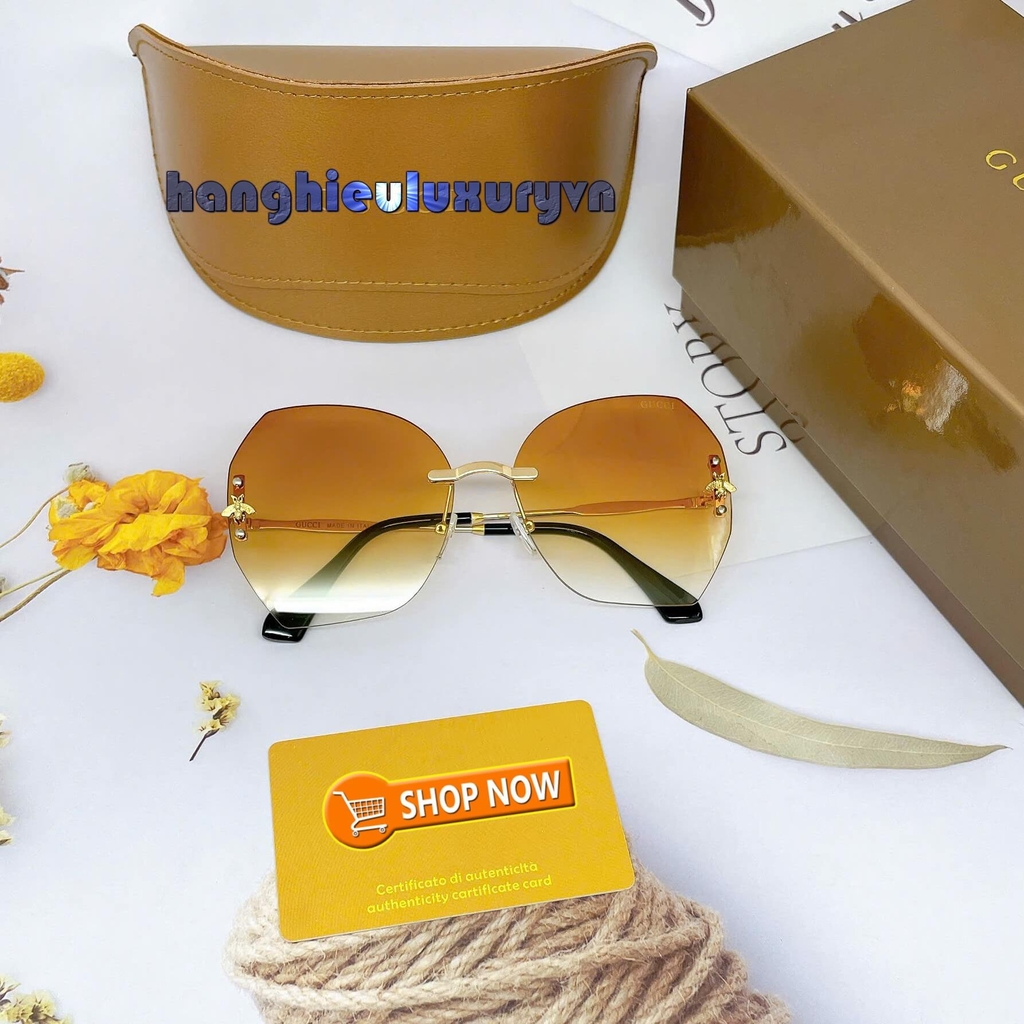 Mẫu kính Gucci nữ 2438 màu nâu trà sở hữu tròng vuông form to bản, không chỉ giúp che nắng hiệu quả mà còn mang lại vẻ đẹp thời thượng, thanh lịch và cực kỳ cuốn hút. Điểm nhấn tinh xảo ở góc tròng kính – biểu tượng ong Gucci nổi bật, kết hợp cùng gọng kim loại cao cấp, mang đến sự sang trọng và đẳng cấp cho người đeo.