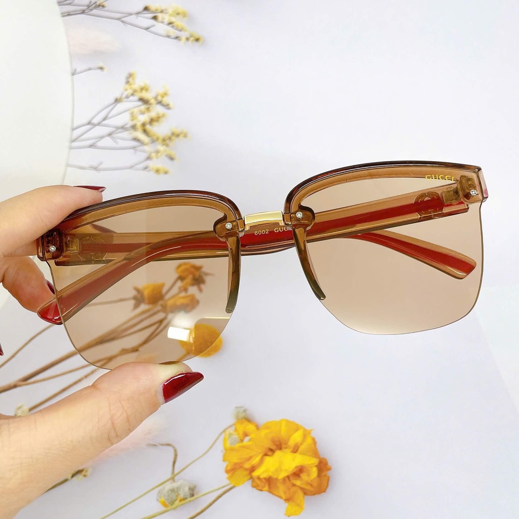 Mẫu kính Gucci nữ màu trà gọng sọc đỏ mã 6002 là lựa chọn không thể bỏ qua nếu bạn yêu thích sự thanh lịch nhưng vẫn nổi bật phong cách.