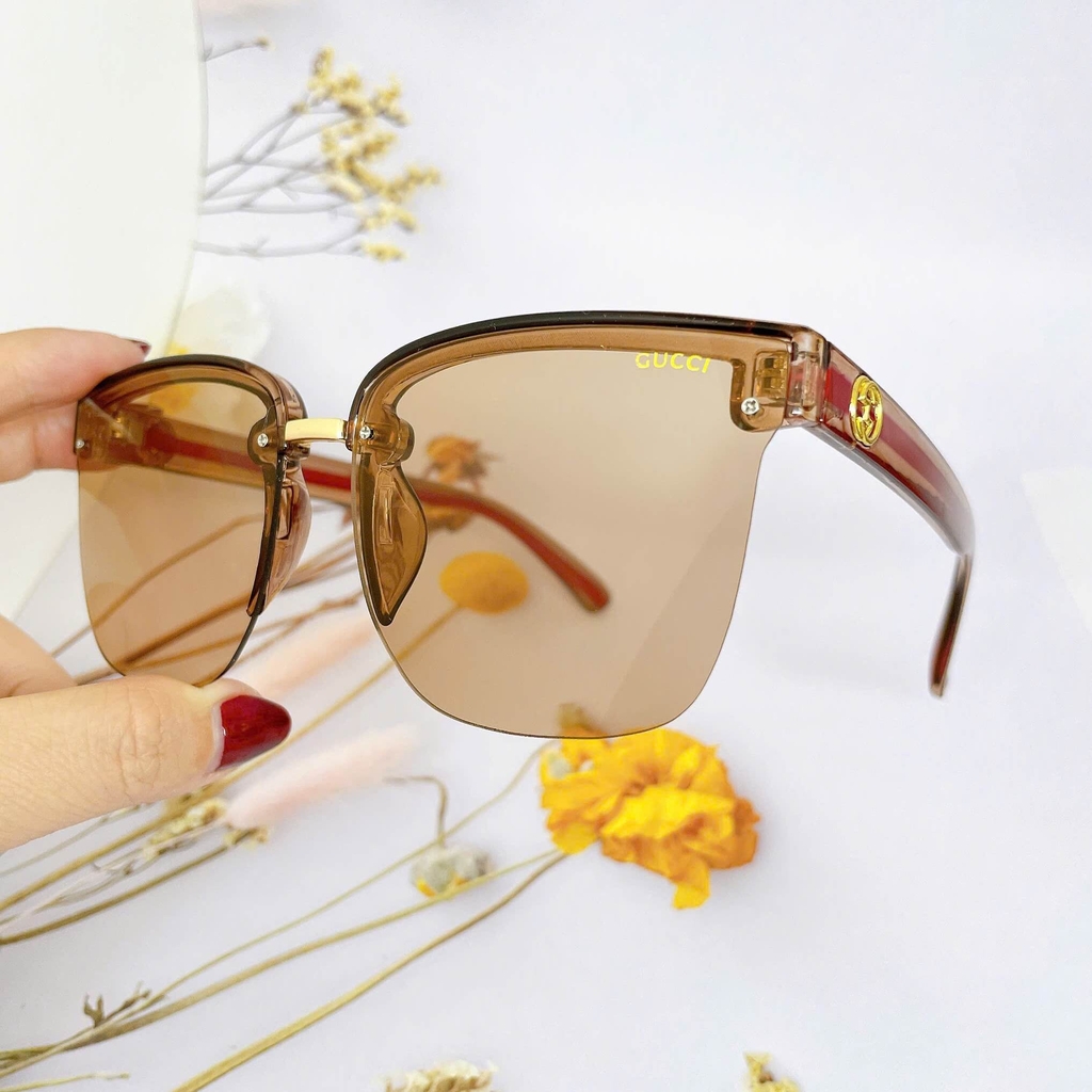 MẮT KÍNH THỜI TRANG NỮ - KÍNH GUCCI NỮ MÀU TRÀ GỌNG SỌC ĐỎ LOGO FULL BOX - MÃ 6002