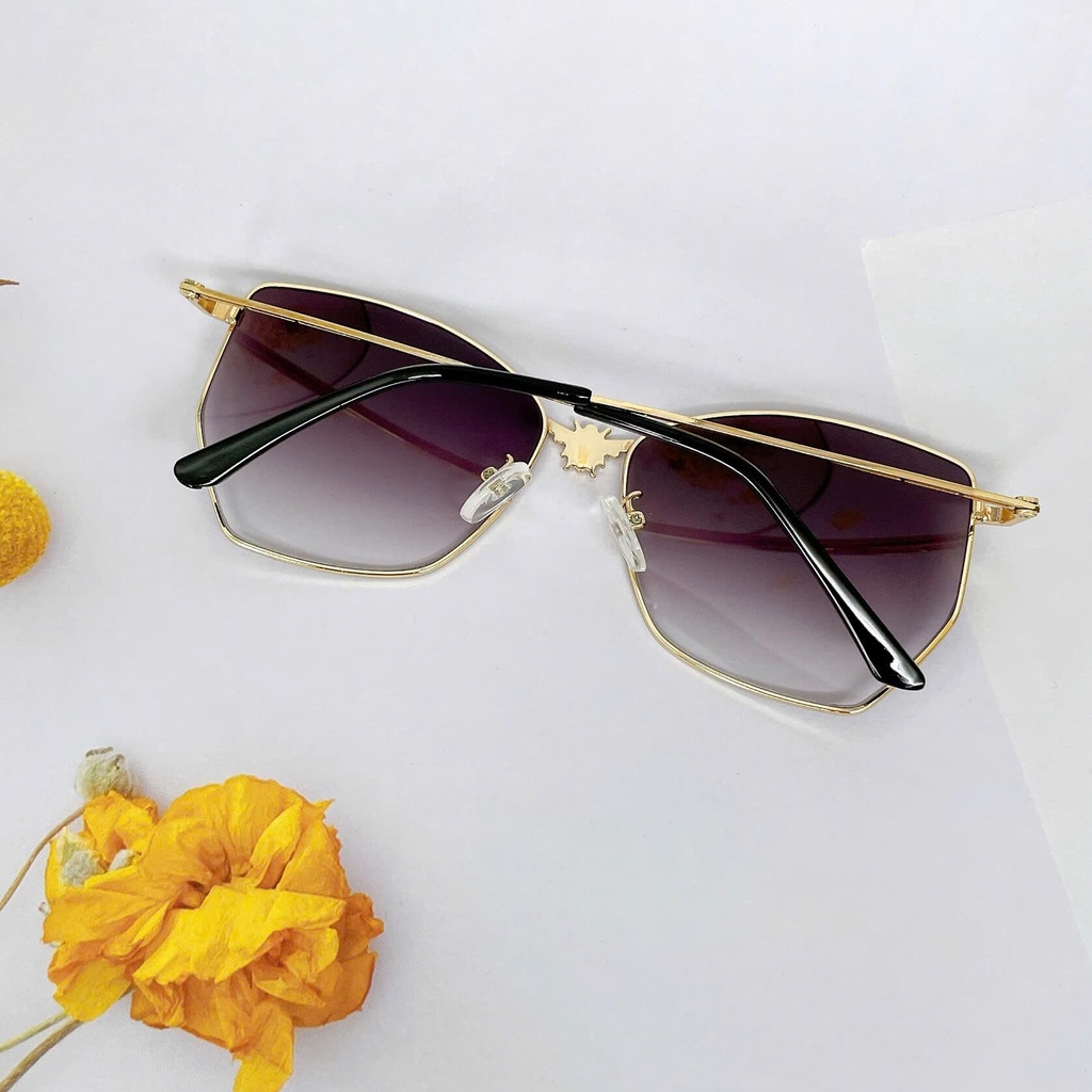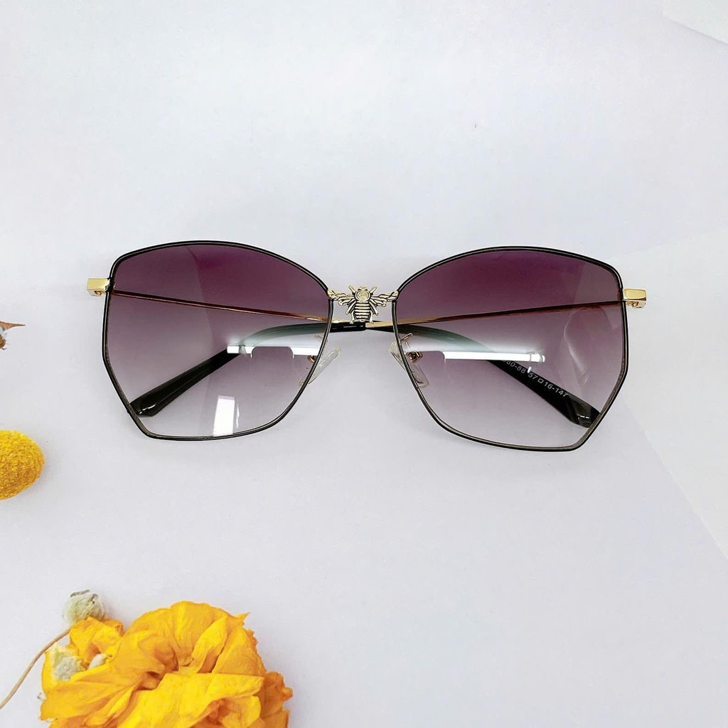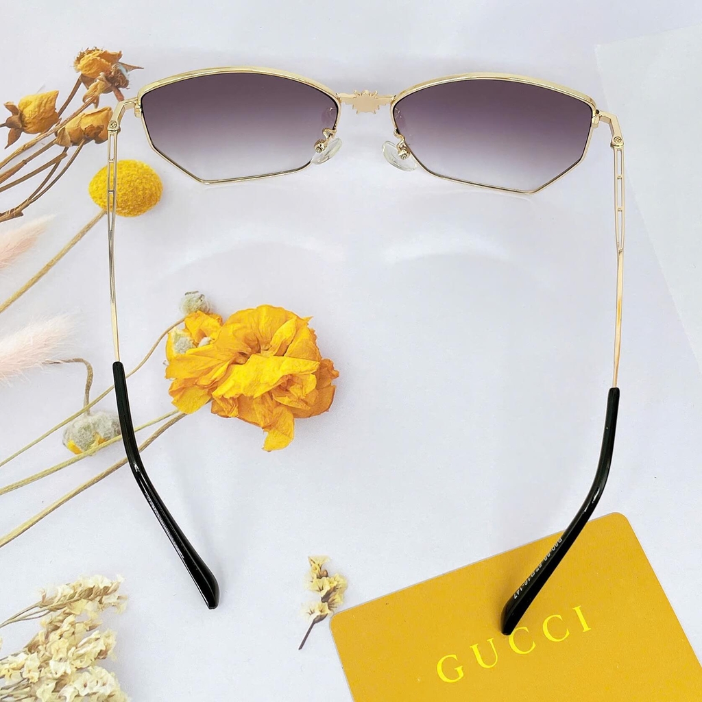 Mẫu kính Gucci nữ mã B80-88 mang phong cách thời thượng với gọng kim loại cao cấp, kết hợp chi tiết ong vàng gắn tinh xảo trên cầu kính – điểm nhấn đặc trưng nổi bật của thương hiệu.