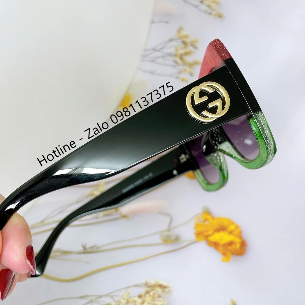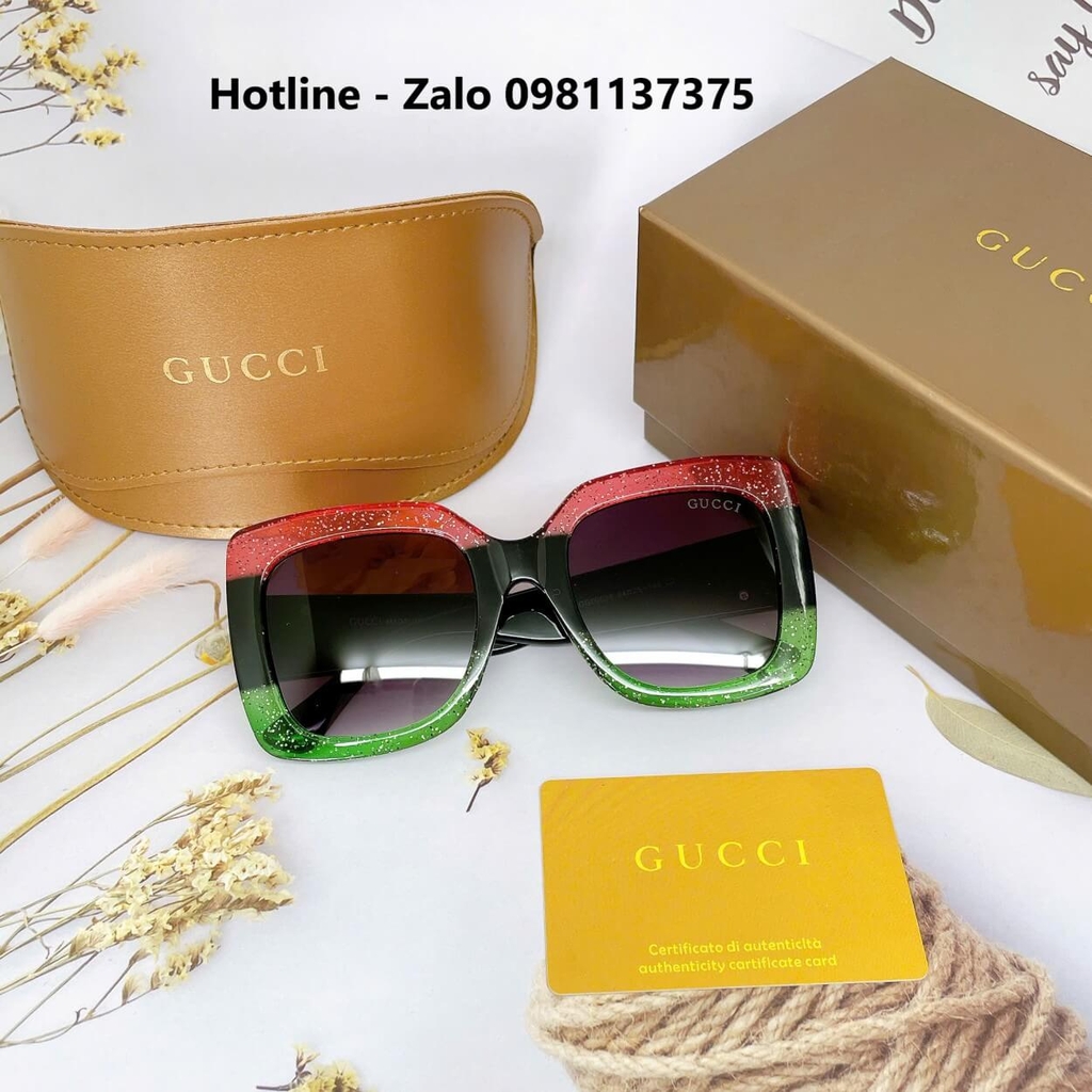 Thiết kế form kính vuông bảng to kết hợp cùng màu đen huyền bí mix viền đỏ xanh – biểu tượng đặc trưng của thương hiệu Gucci, mang đến vẻ ngoài sang trọng, cá tính nhưng vẫn đầy tinh tế.