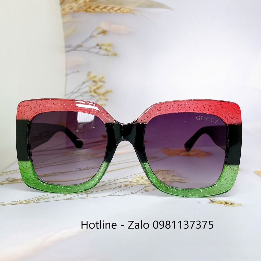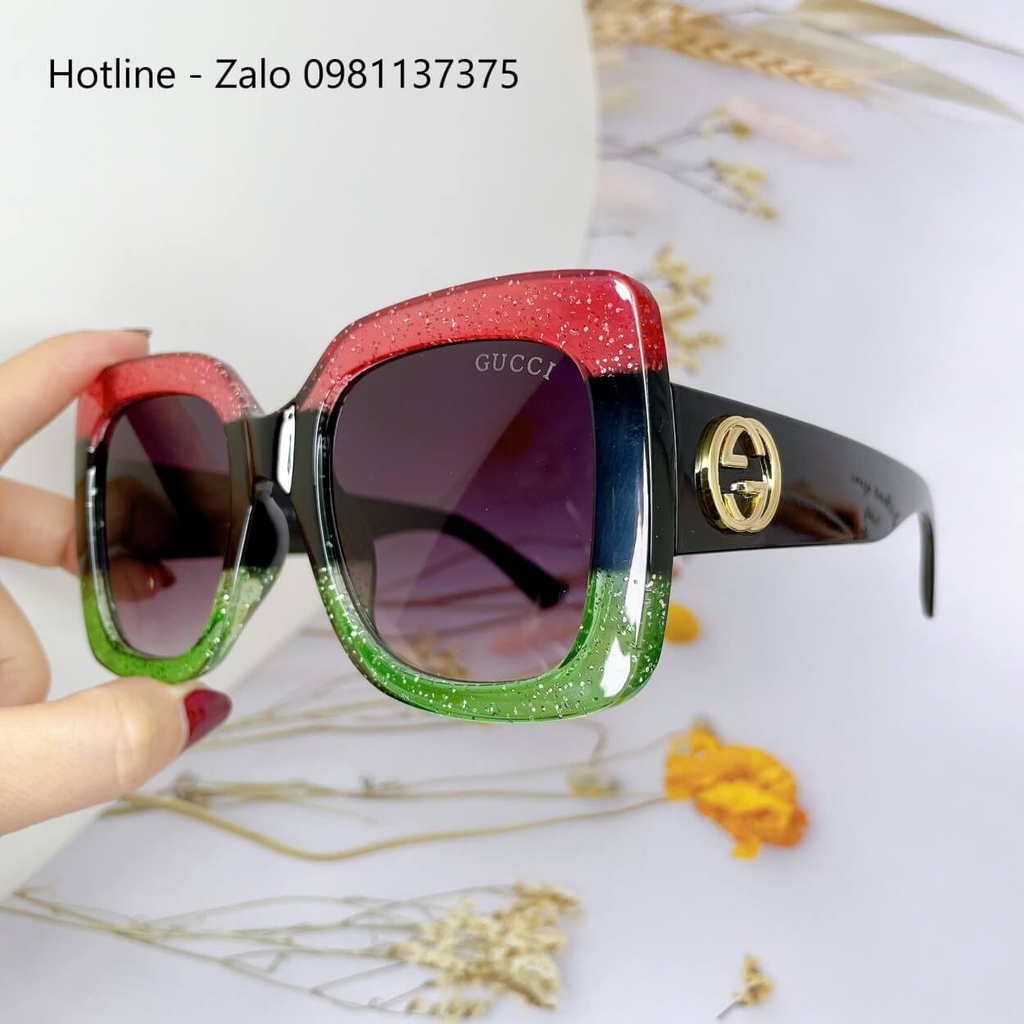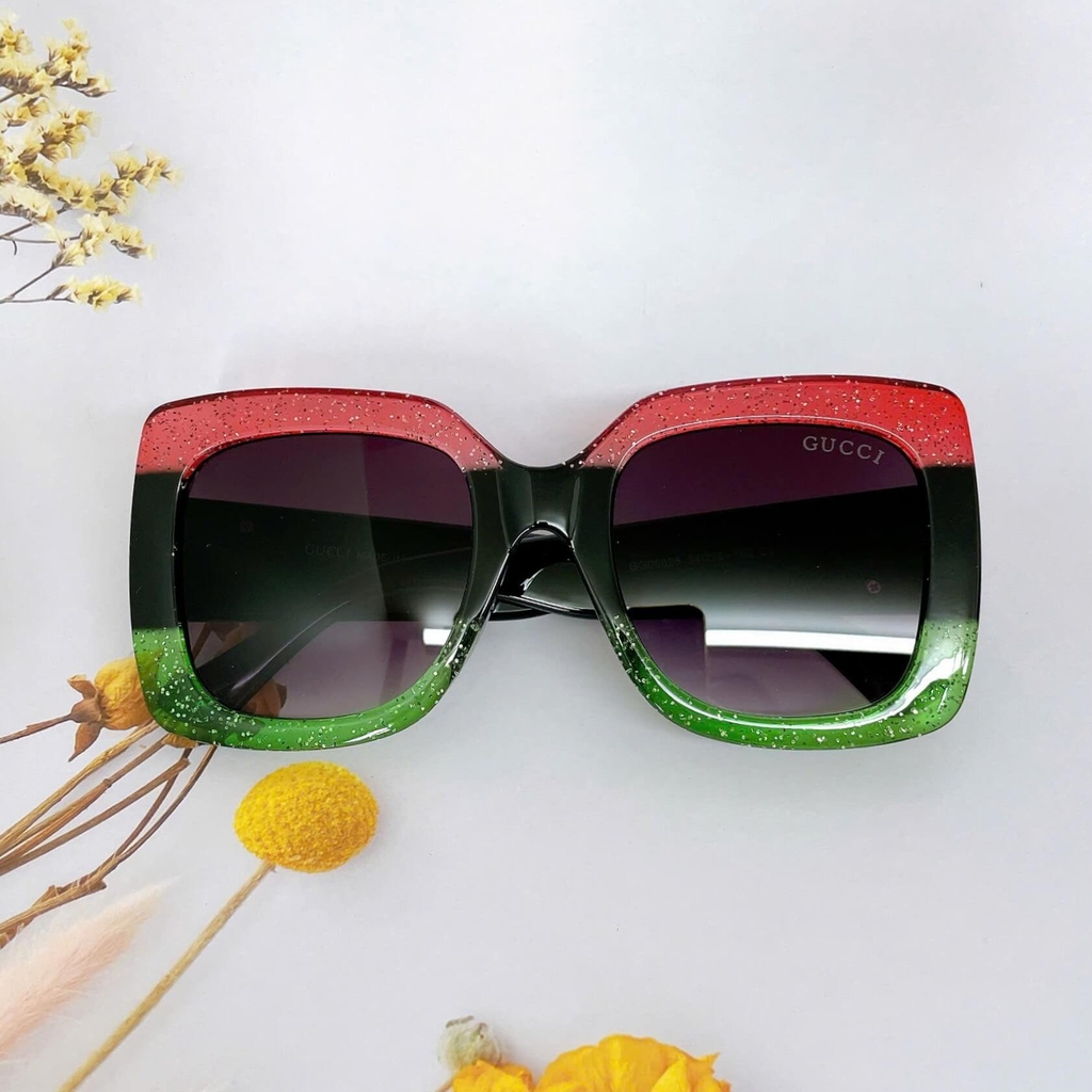 MẮT KÍNH THỜI TRANG NỮ - KÍNH GUCCI NỮ VUÔNG BẢNG TO ĐEN MIX ĐỎ XANH CAO CẤP - MÃ GC00836