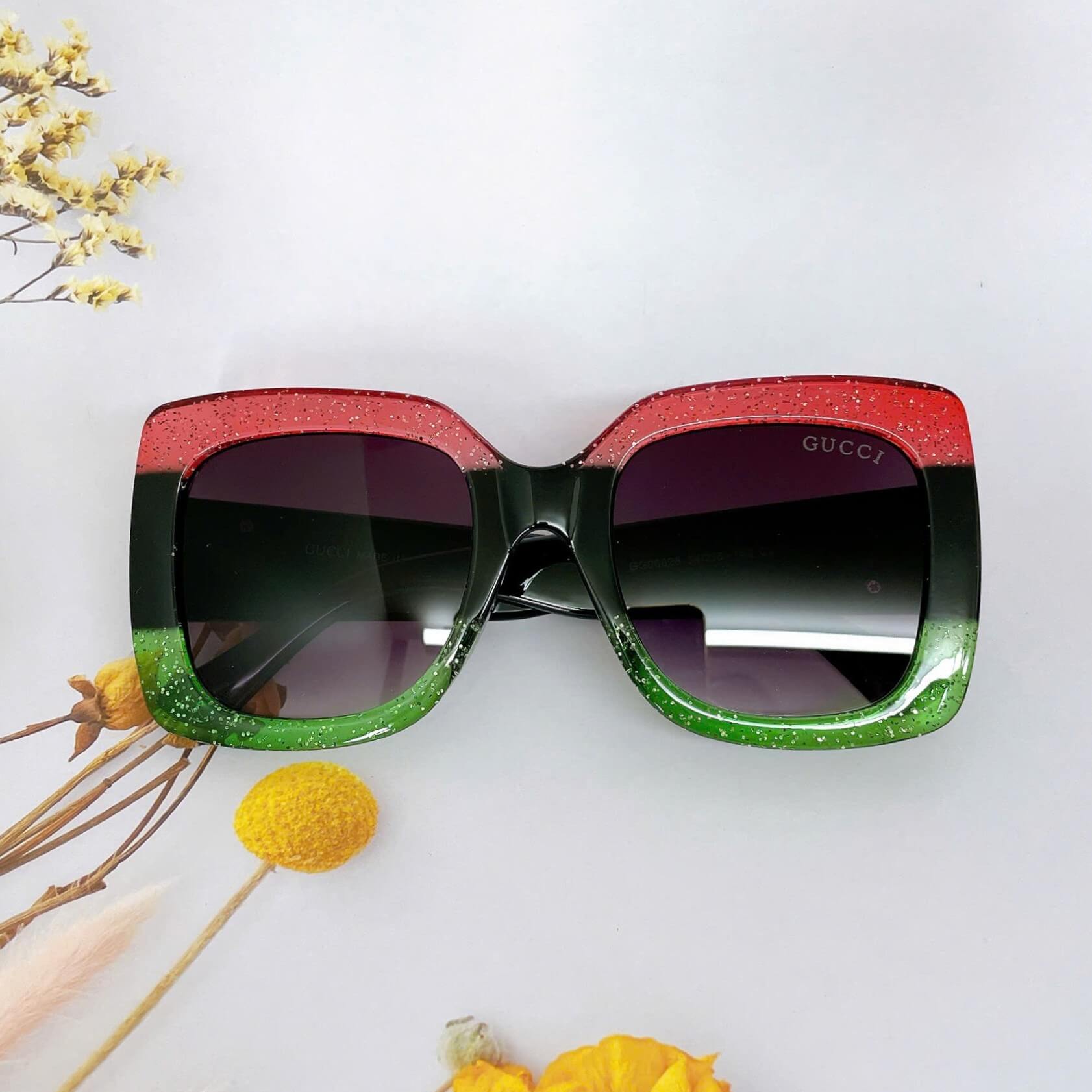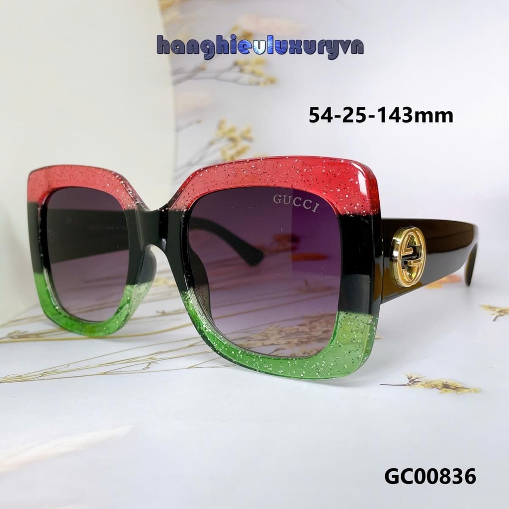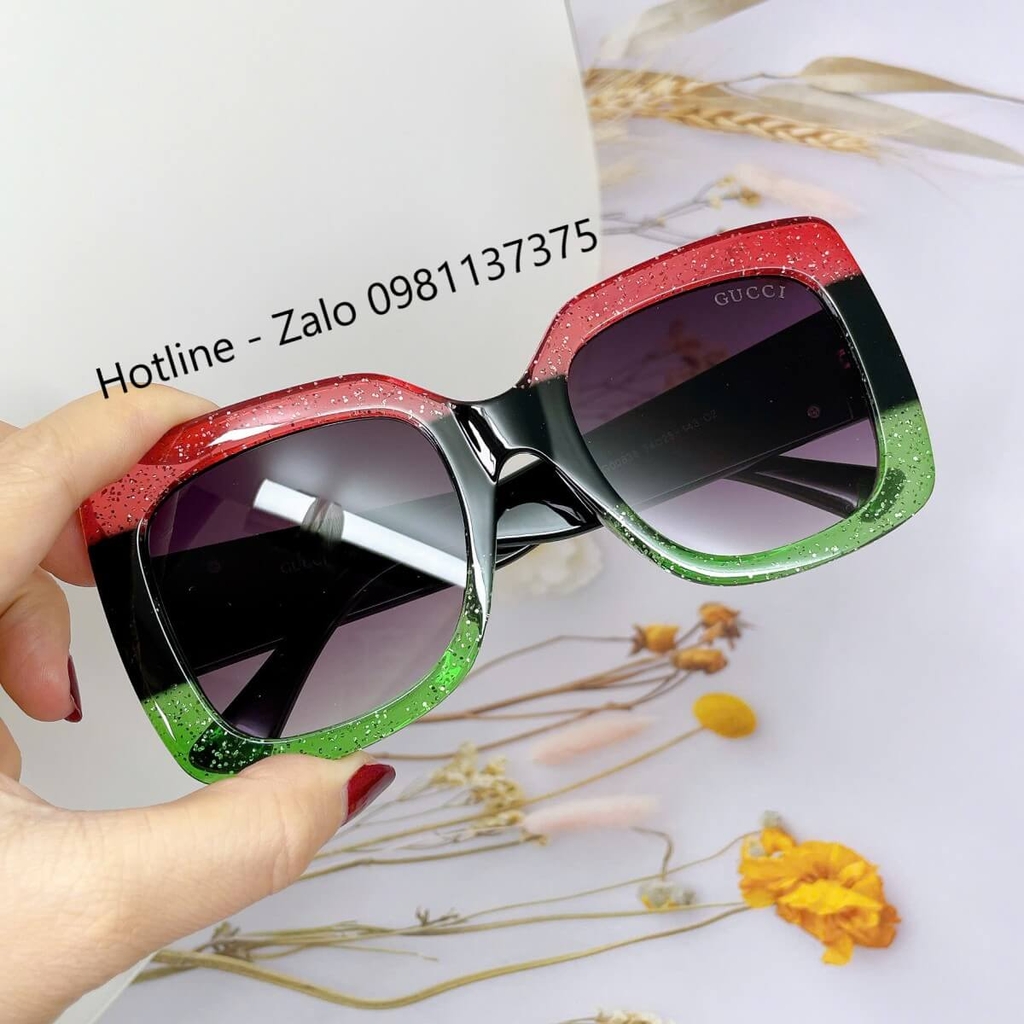 MẮT KÍNH THỜI TRANG NỮ - KÍNH GUCCI NỮ VUÔNG BẢNG TO ĐEN MIX ĐỎ XANH CAO CẤP - MÃ GC00836