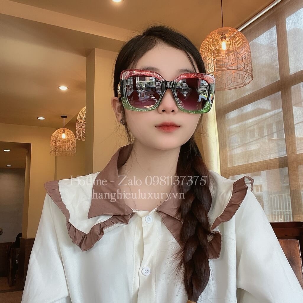 Hình ảnh Mắt Kính Thời Trang Nữ - Kính Gucci Nữ Vuông Bảng To Đen Mix Đỏ Xanh Cao Cấp GC00836
