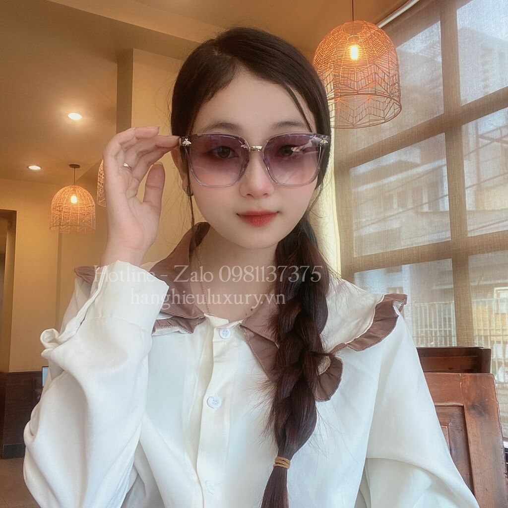 Thiết kế: Form vuông nhỏ gọn, ôm sát khuôn mặt, góc tròng kính đính ong sắc sảo đặc trưng