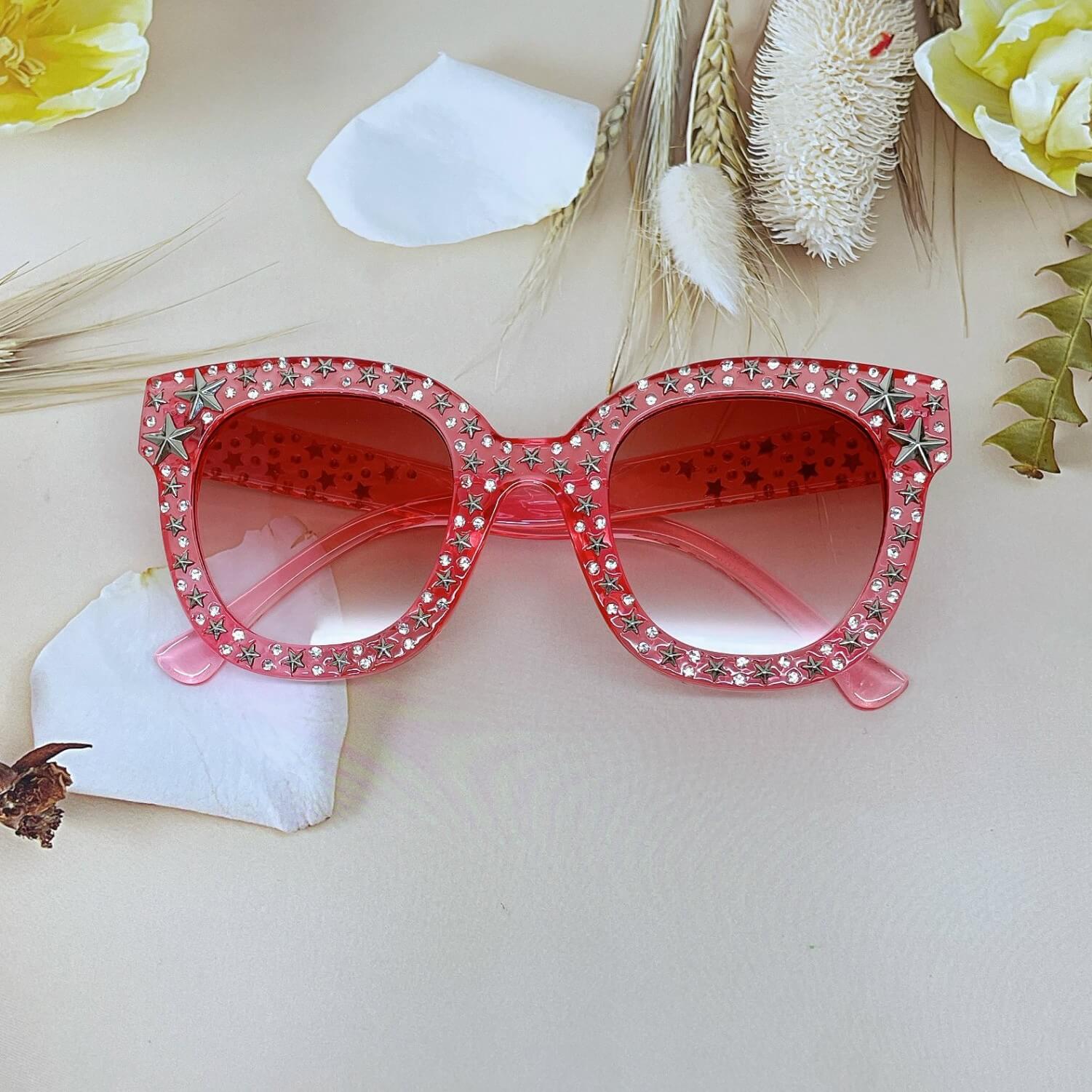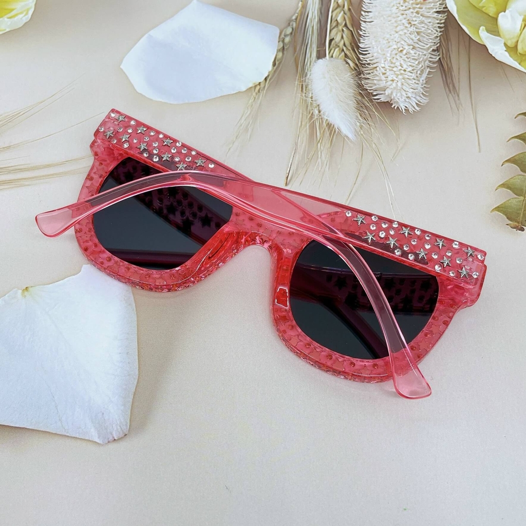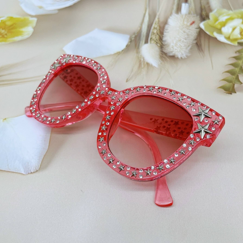 MẮT KÍNH THỜI TRANG NỮ - KÍNH RÂM NỮ MÀU HỒNG ĐÍNH NGÔI SAO CAO CẤP - MÃ 5700
