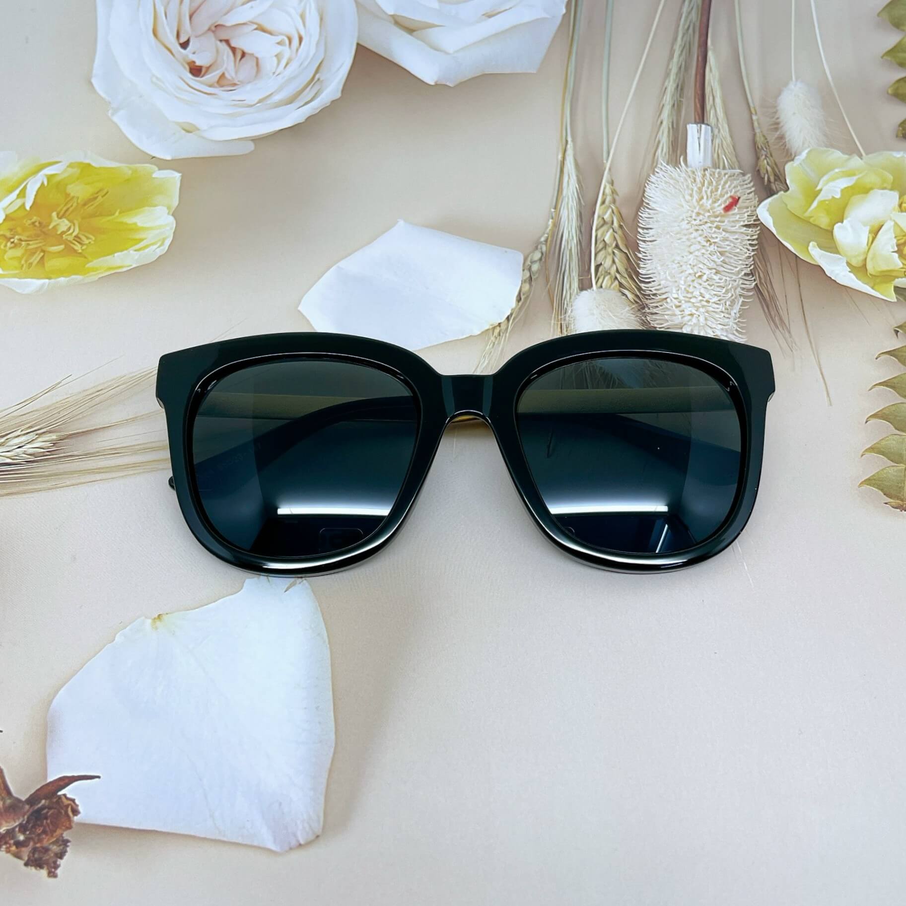 Kính đen giúp tạo chiều sâu cho gương mặt, che khuyết điểm tốt