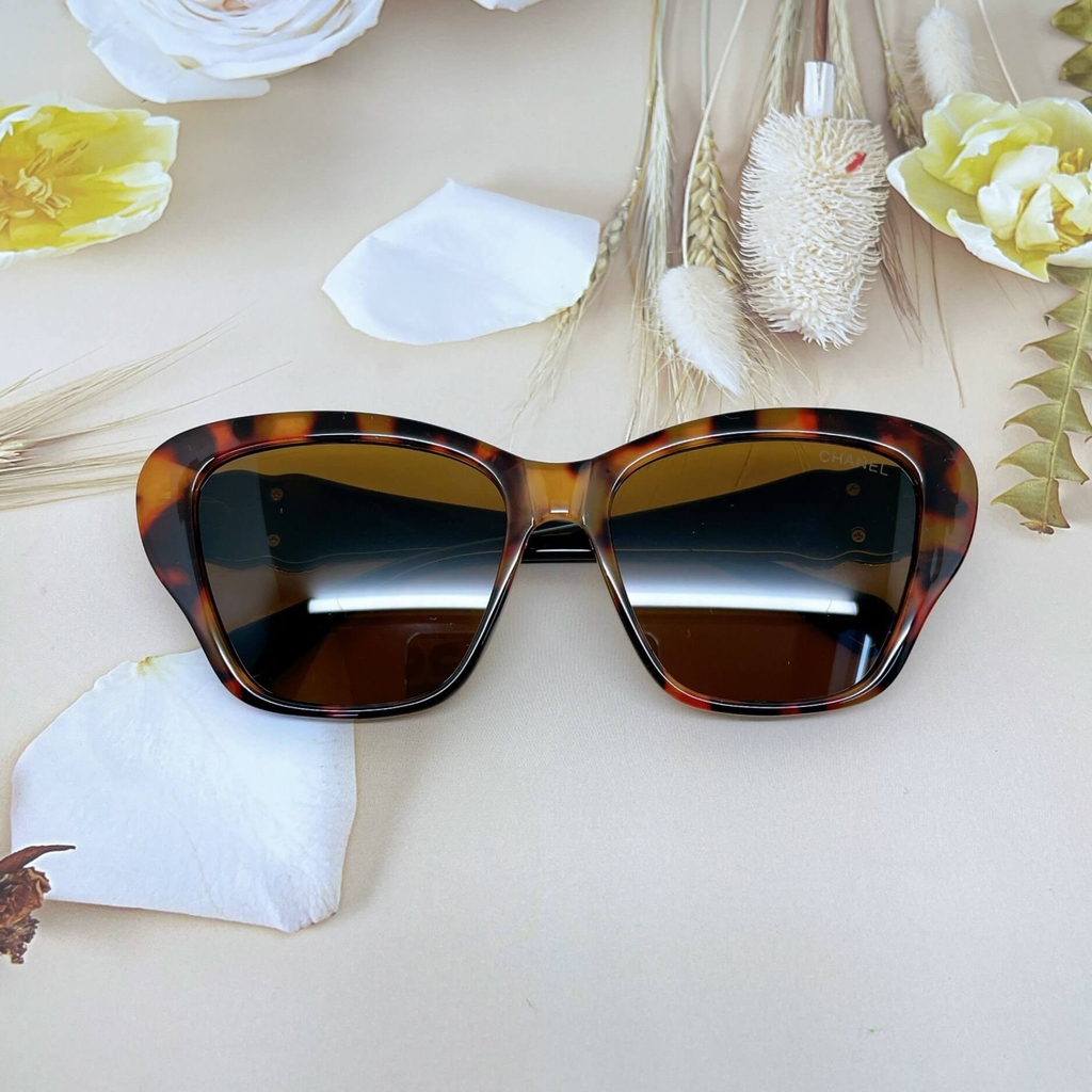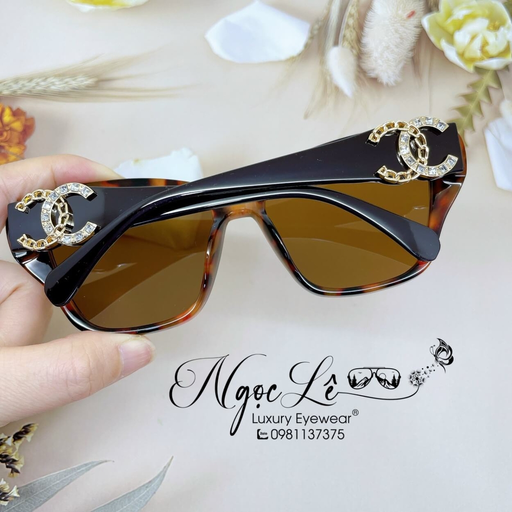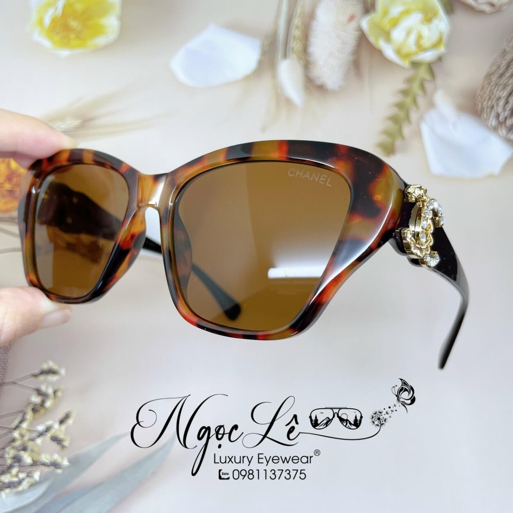 Mẫu kính Chanel dáng mắt mèo dành riêng cho các quý cô yêu thích phong cách sang trọng và sắc sảo. Tone nâu hổ phách quý phái phối cùng gọng đính logo Chanel tinh tế, mang lại vẻ đẹp cuốn hút nhưng không quá phô trương.