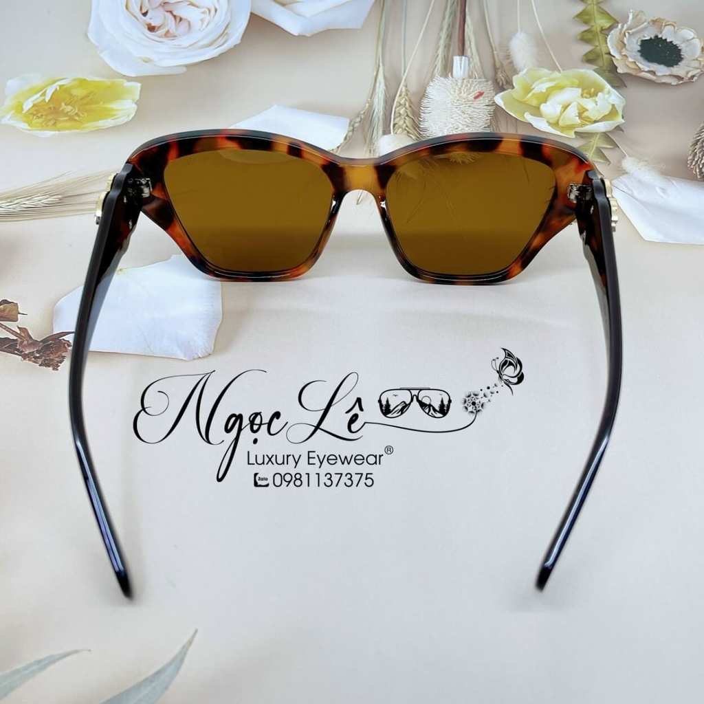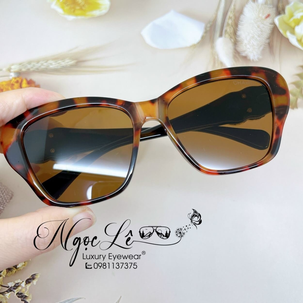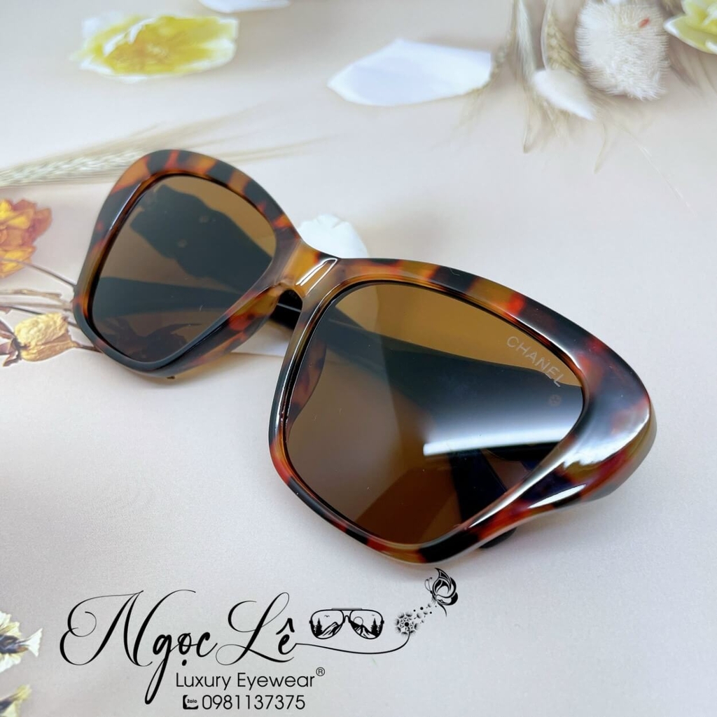 Mẫu kính Chanel dáng mắt mèo dành riêng cho các quý cô yêu thích phong cách sang trọng và sắc sảo. Tone nâu hổ phách quý phái phối cùng gọng đính logo Chanel tinh tế, mang lại vẻ đẹp cuốn hút nhưng không quá phô trương.