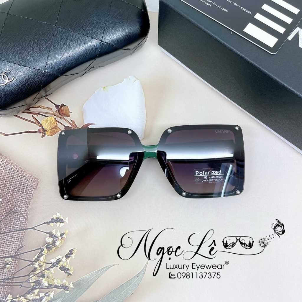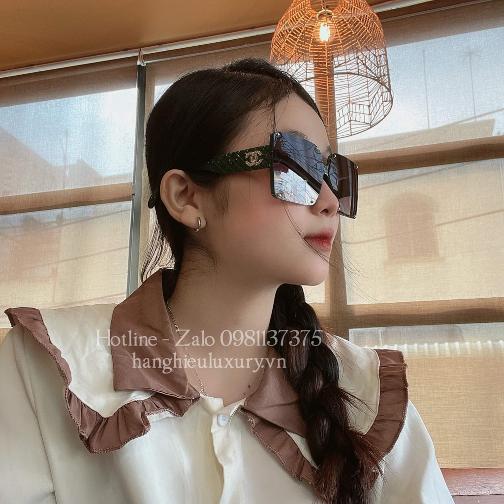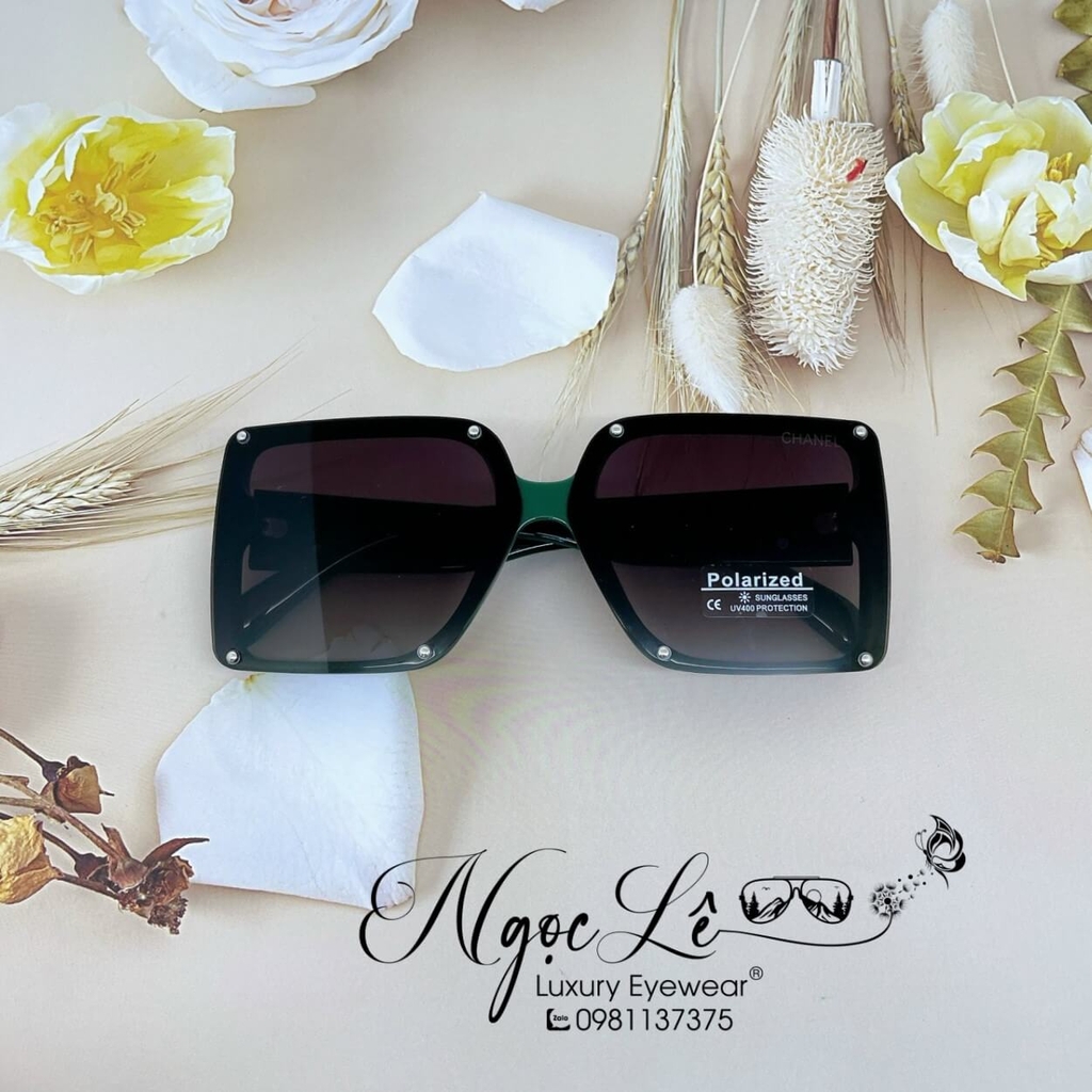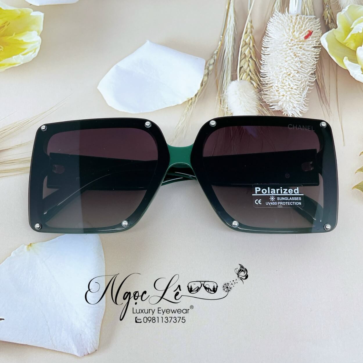 MẮT KÍNH THỜI TRANG NỮ CHANEL – TRÒNG VUÔNG MÀU ĐEN, GỌNG XANH OLIVE – TRÒNG POLARIZED CHỐNG CHÓI