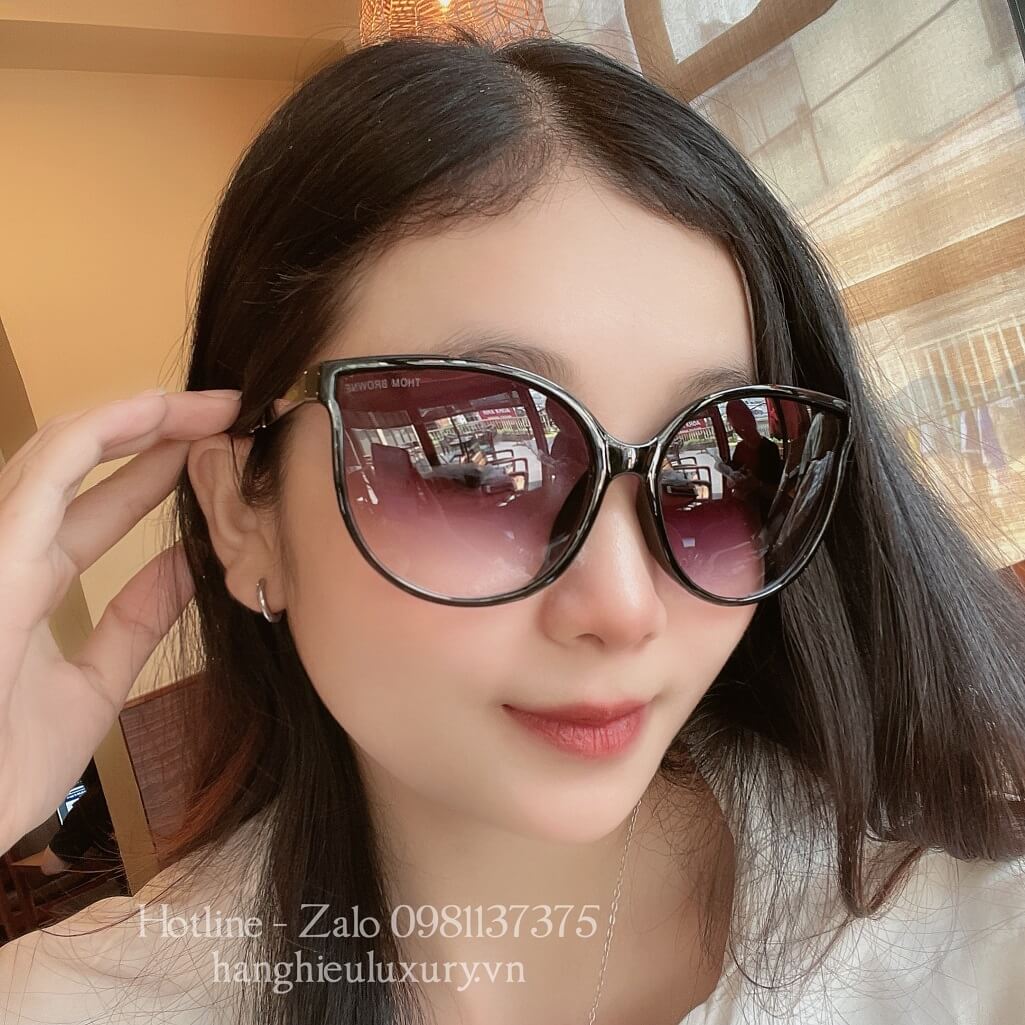 - Mắt Kính Thom Browne Nữ Đen Tròng To Chân Kim Loại
