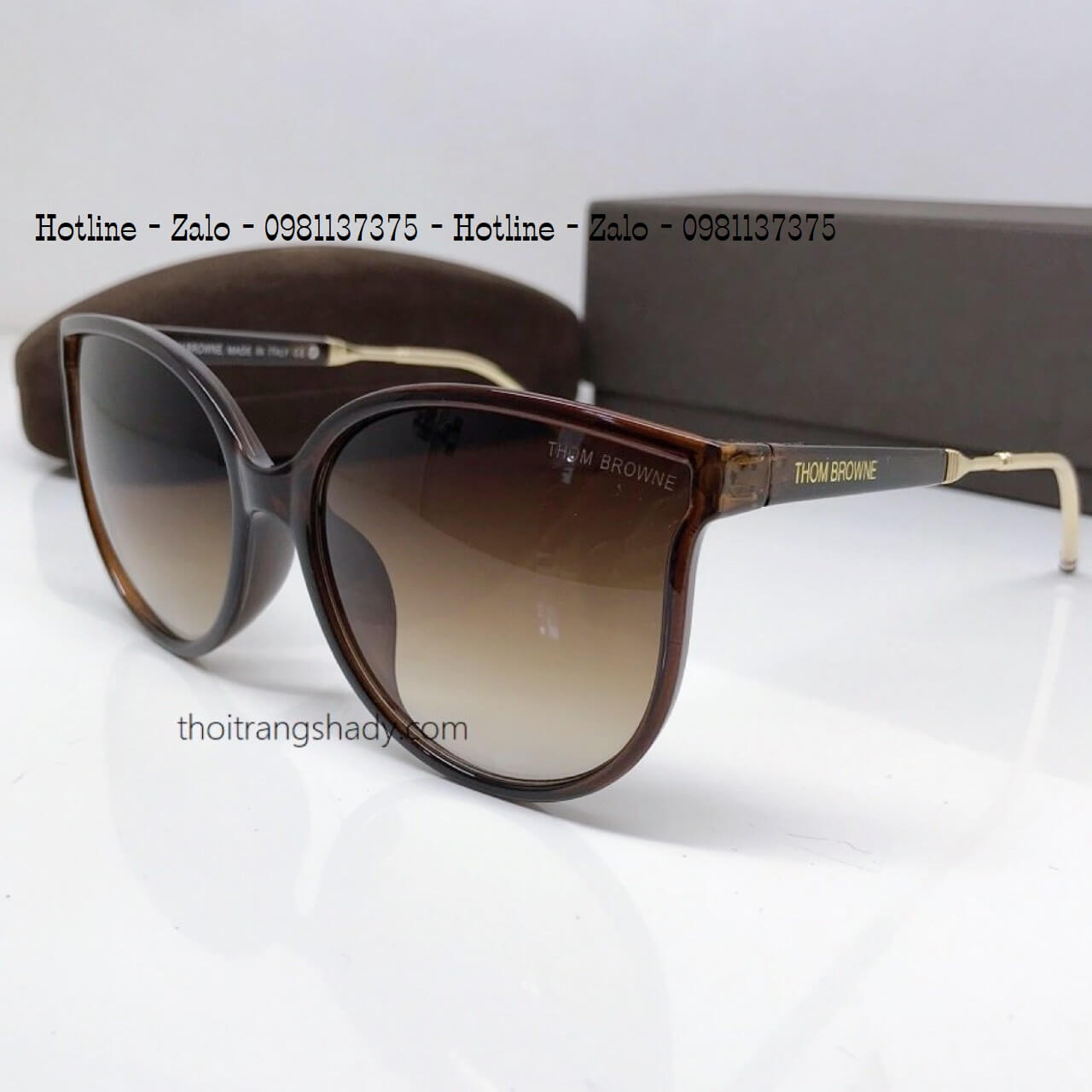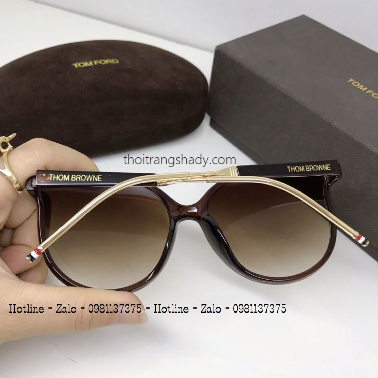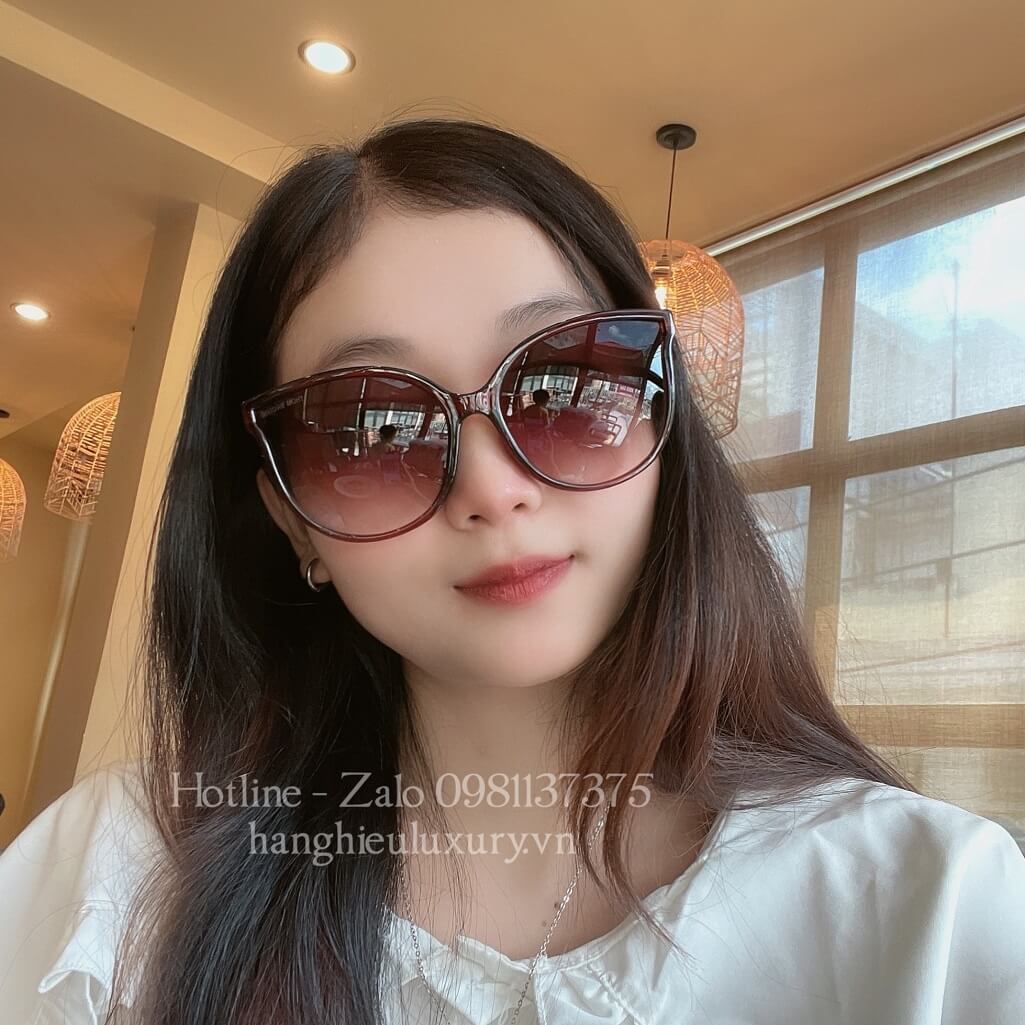 - Mắt Kính Thom Browne Nữ Nâu Tròng To Chân Kim Loại