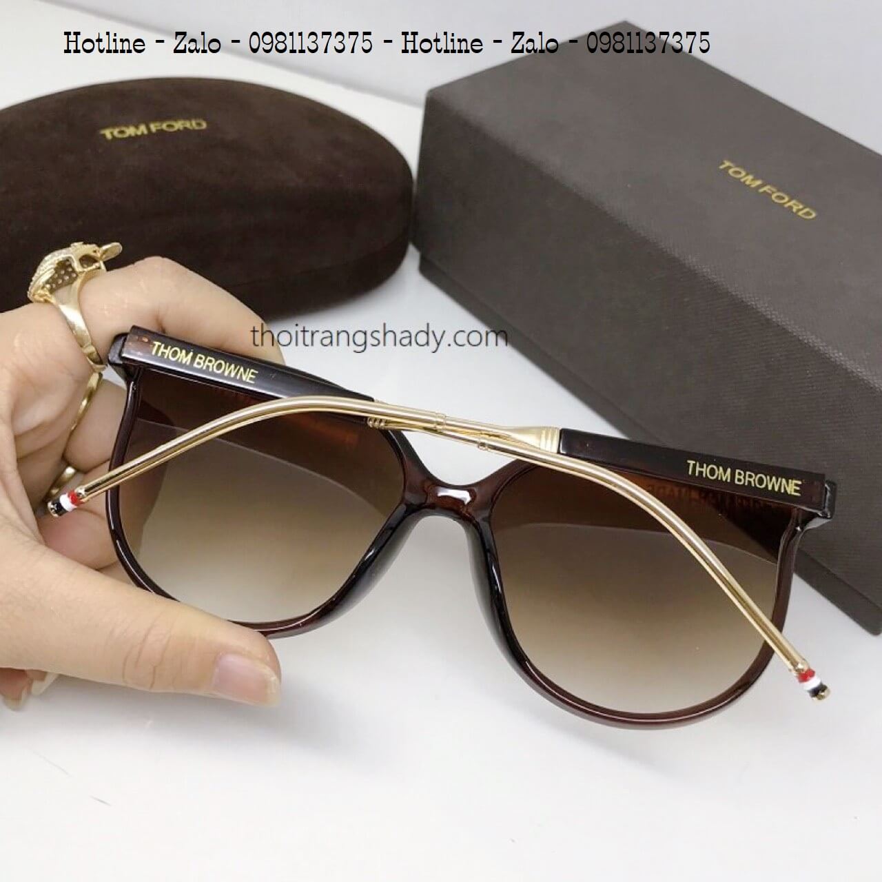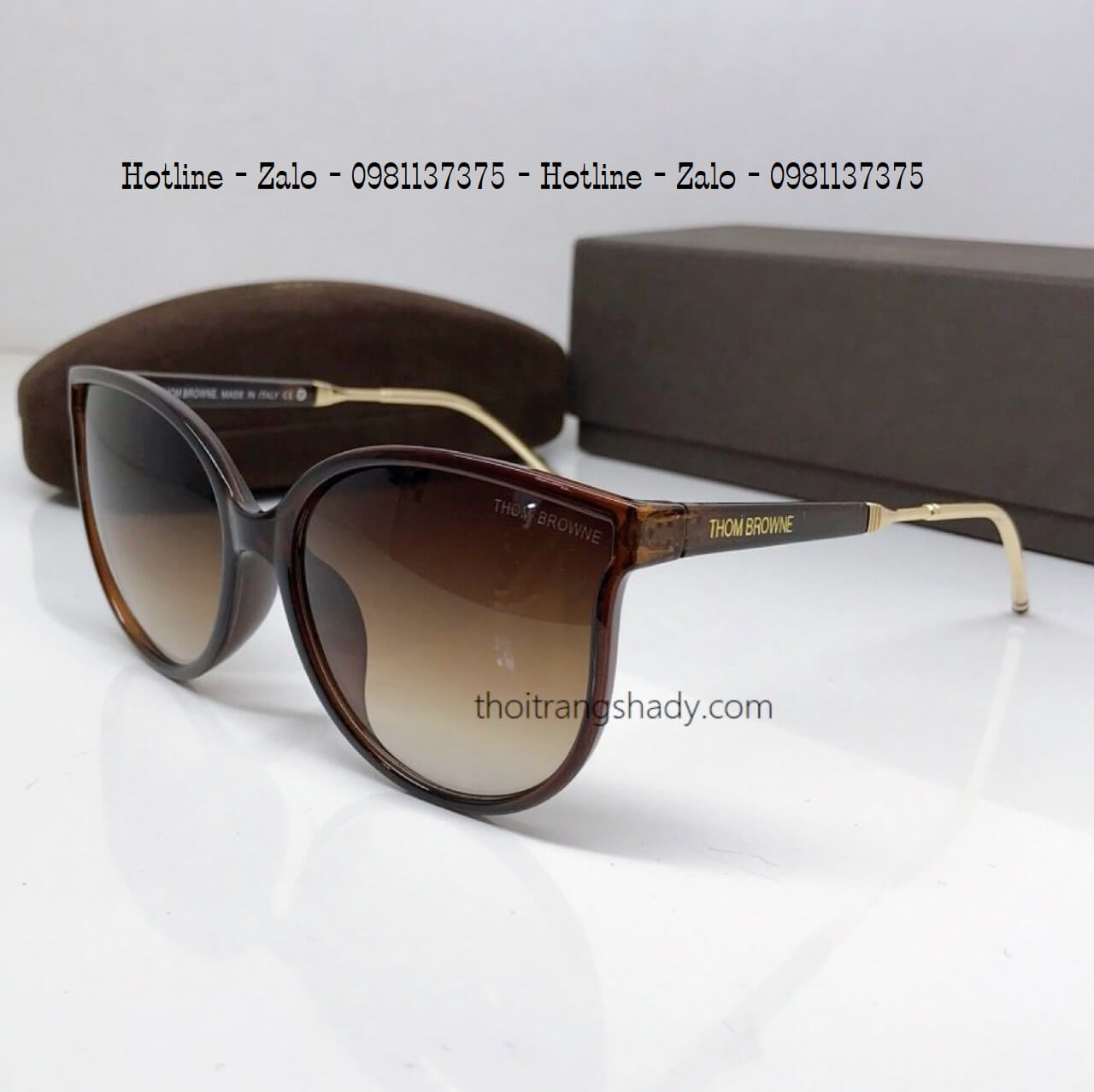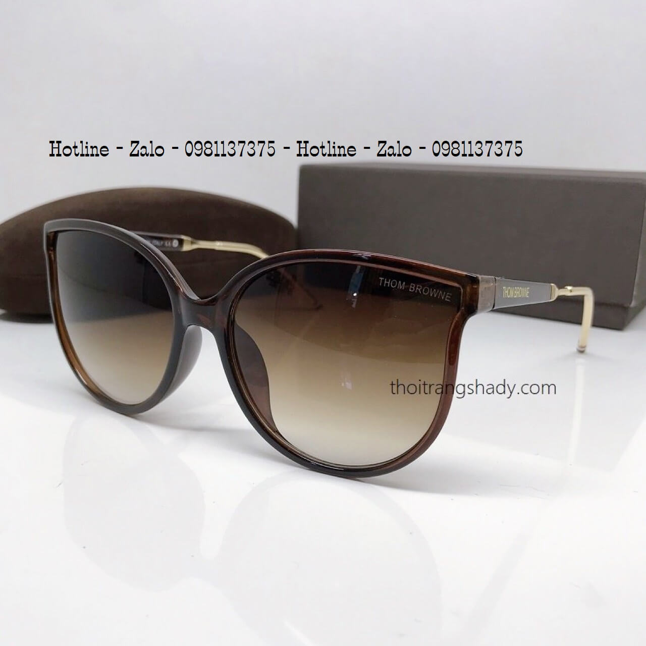 - Mắt Kính Thom Browne Nữ Nâu Tròng To Chân Kim Loại